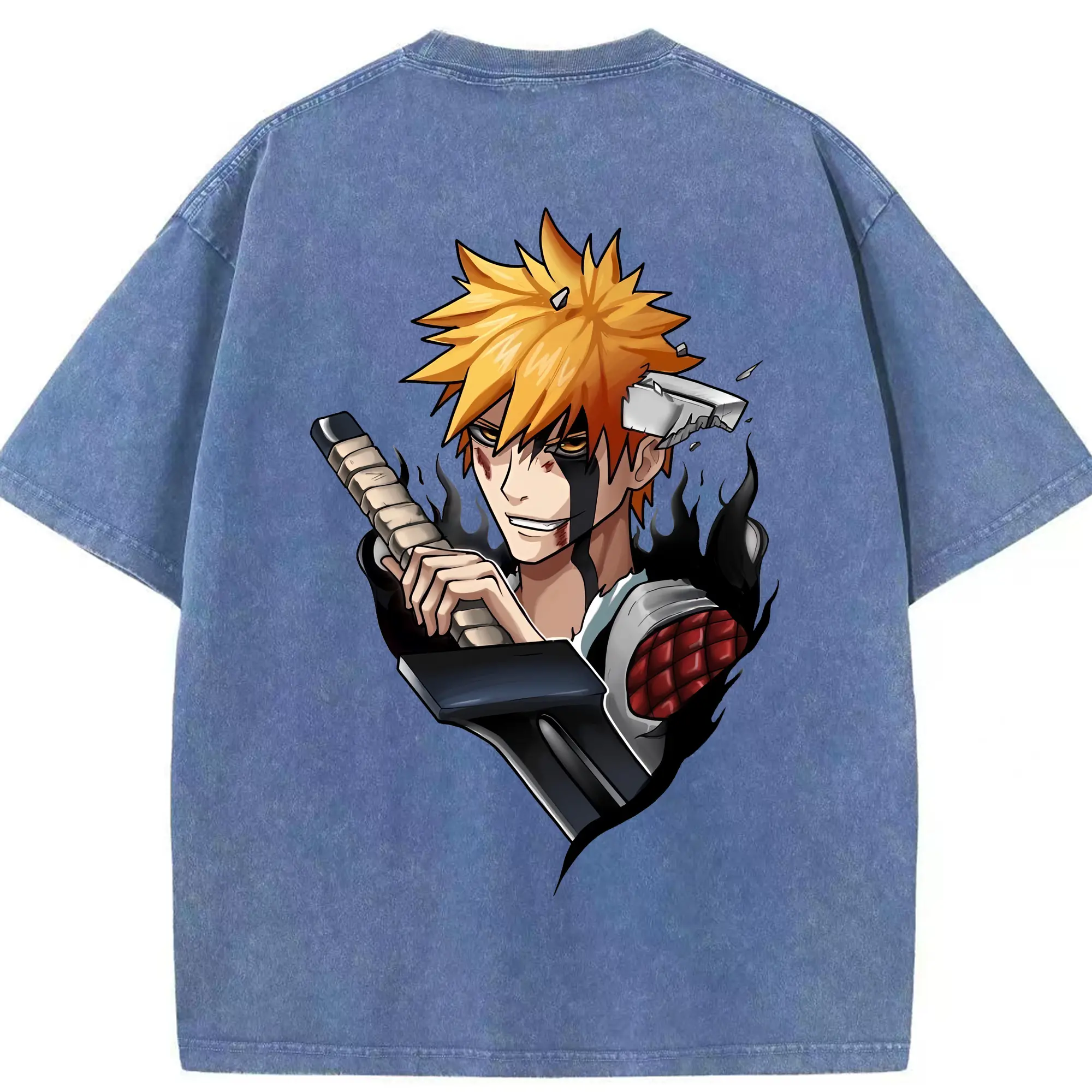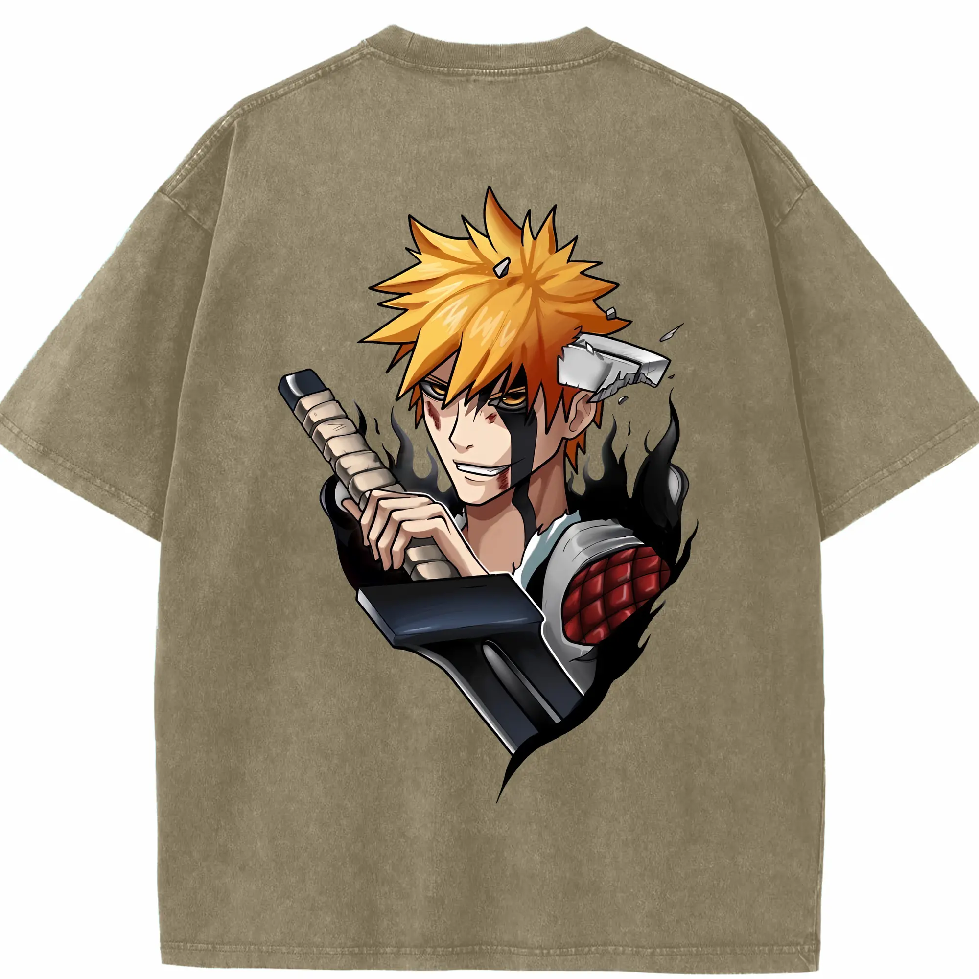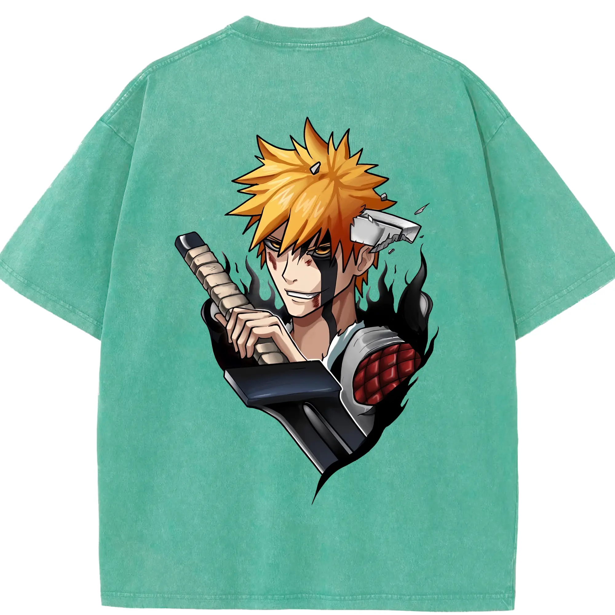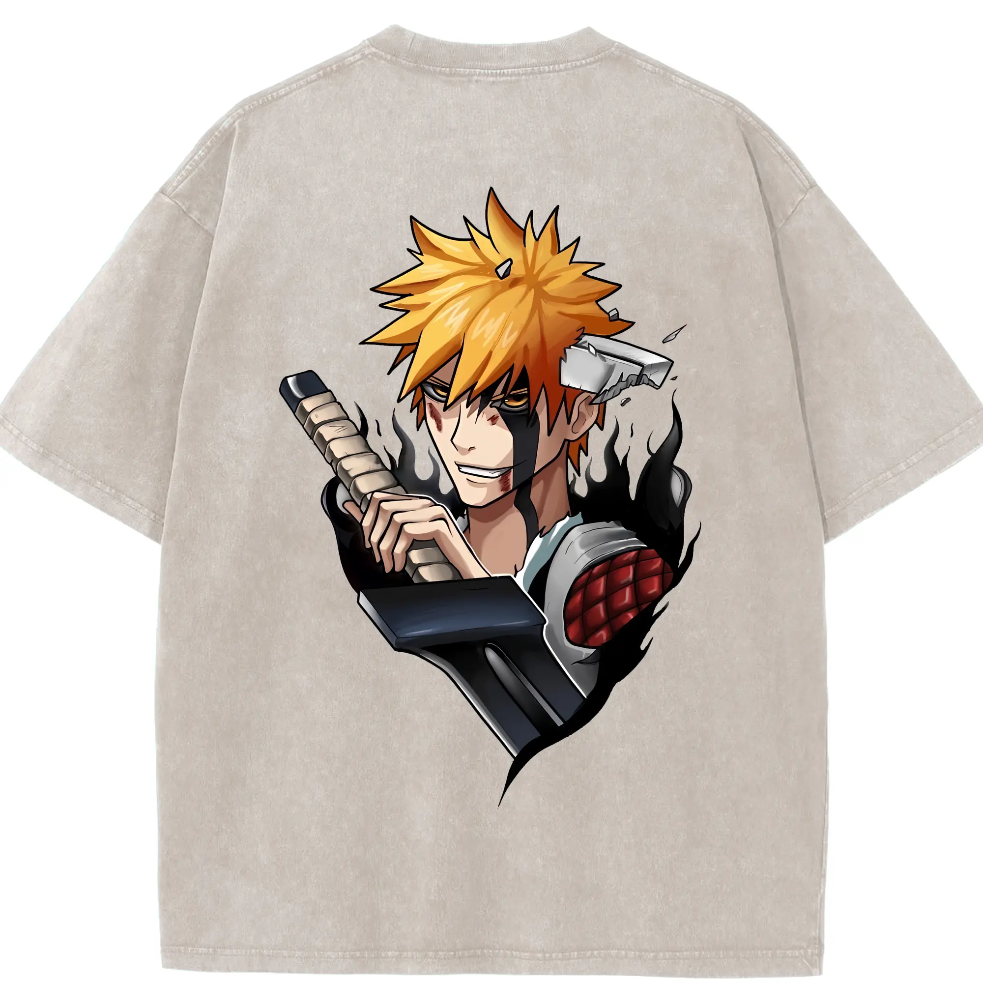 ブリーチ グッズ 黒崎 一護 - 綿100% ヴィンテージ風 半袖Tシャツ ・ フロントプリント ・ 柔らか肌触り ・ 通気性 快適 ・ スポーツ カジュアル 外出用