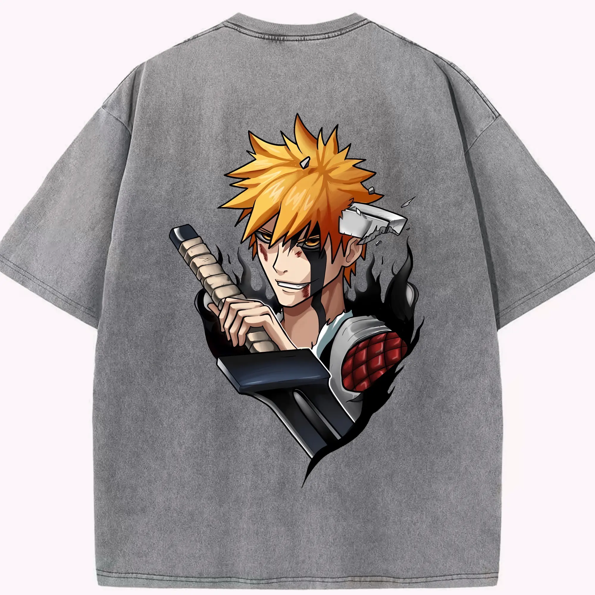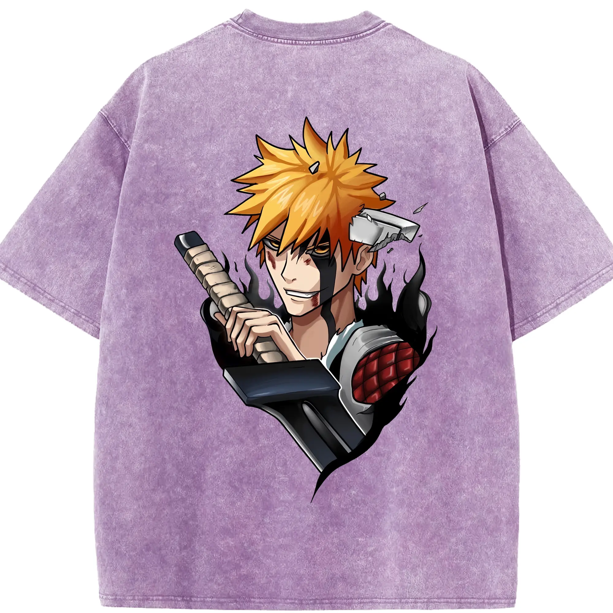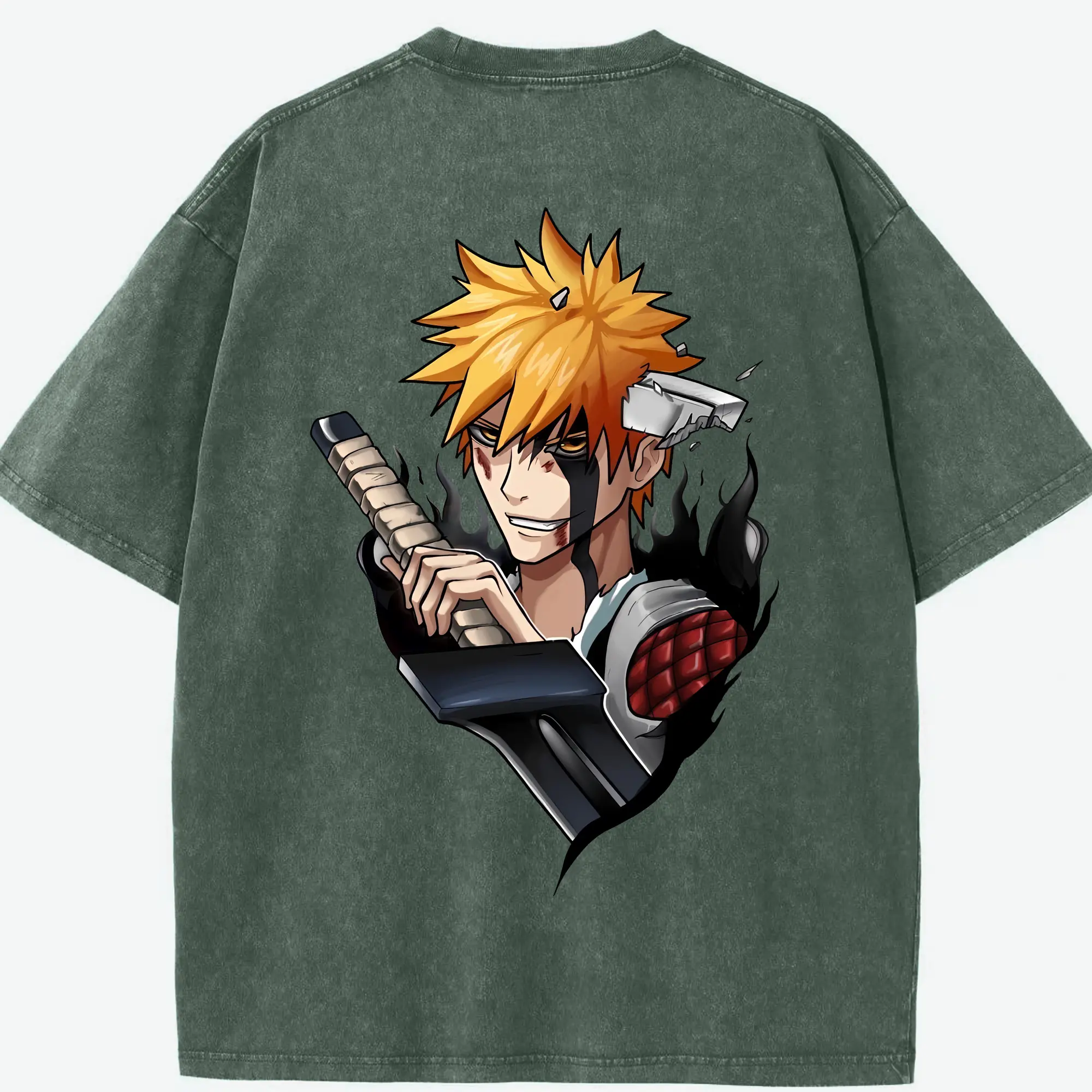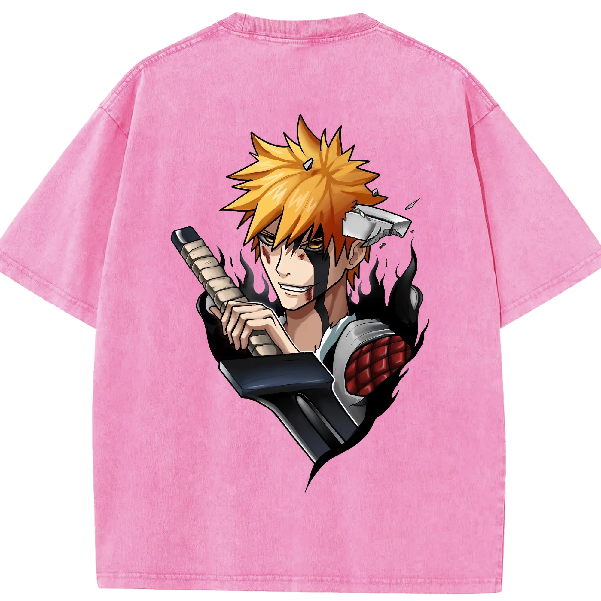 ブリーチ グッズ 黒崎 一護 - 綿100% ヴィンテージ風 半袖Tシャツ ・ フロントプリント ・ 柔らか肌触り ・ 通気性 快適 ・ スポーツ カジュアル 外出用