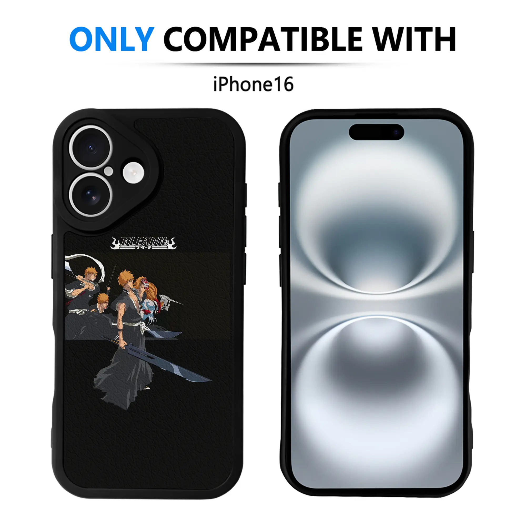 ブリーチ グッズ 黒崎 一護 - IPhone 16シリーズ対応 ・ シリコンスマホケース ・ レザー調 ・ 高精度フィット ・ 耐衝撃 ・ ワイヤレス充電対応 ・ 精密カット