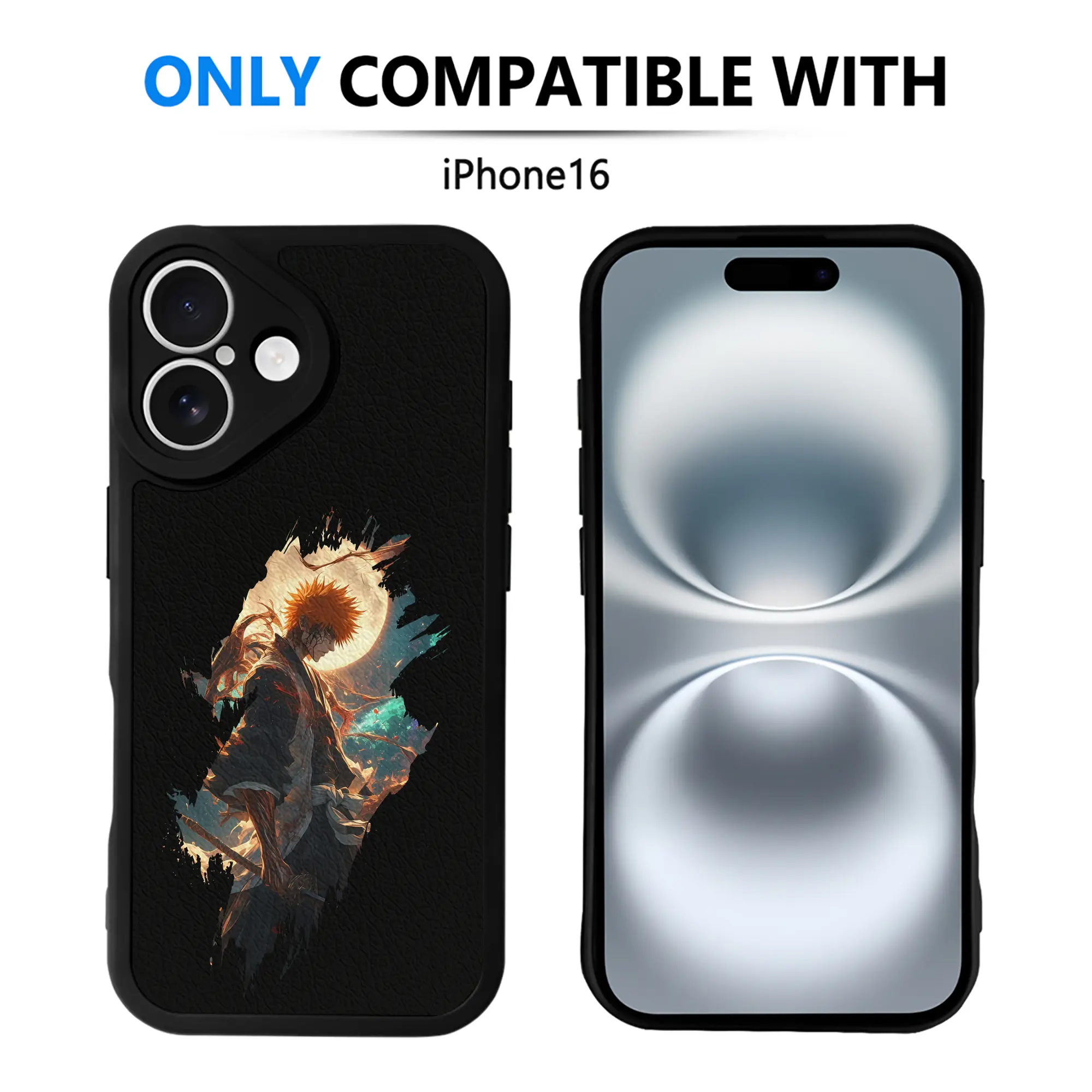 ブリーチ グッズ 黒崎 一護 - IPhone 16シリーズ対応 ・ シリコンスマホケース ・ レザー調 ・ 高精度フィット ・ 耐衝撃 ・ ワイヤレス充電対応 ・ 精密カット