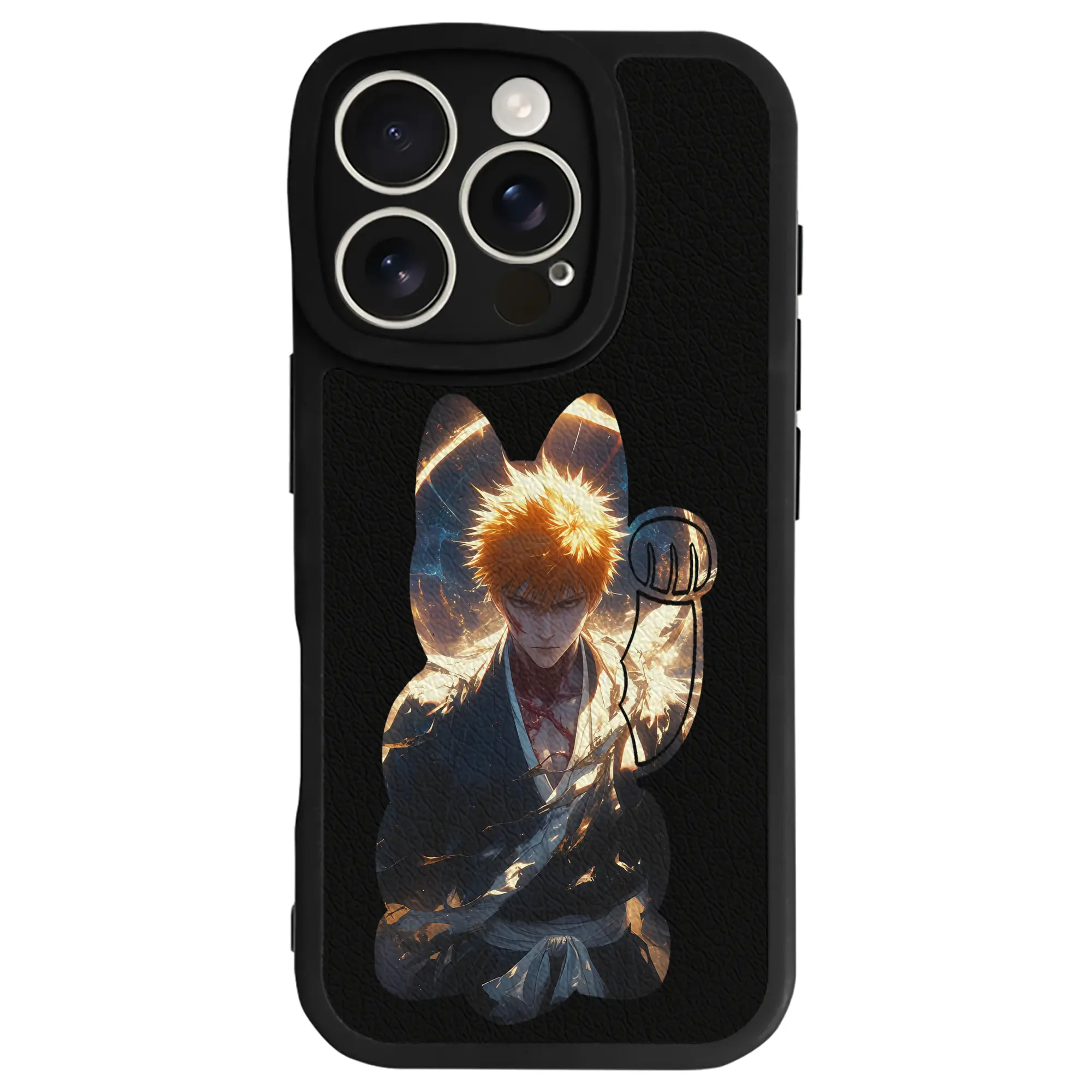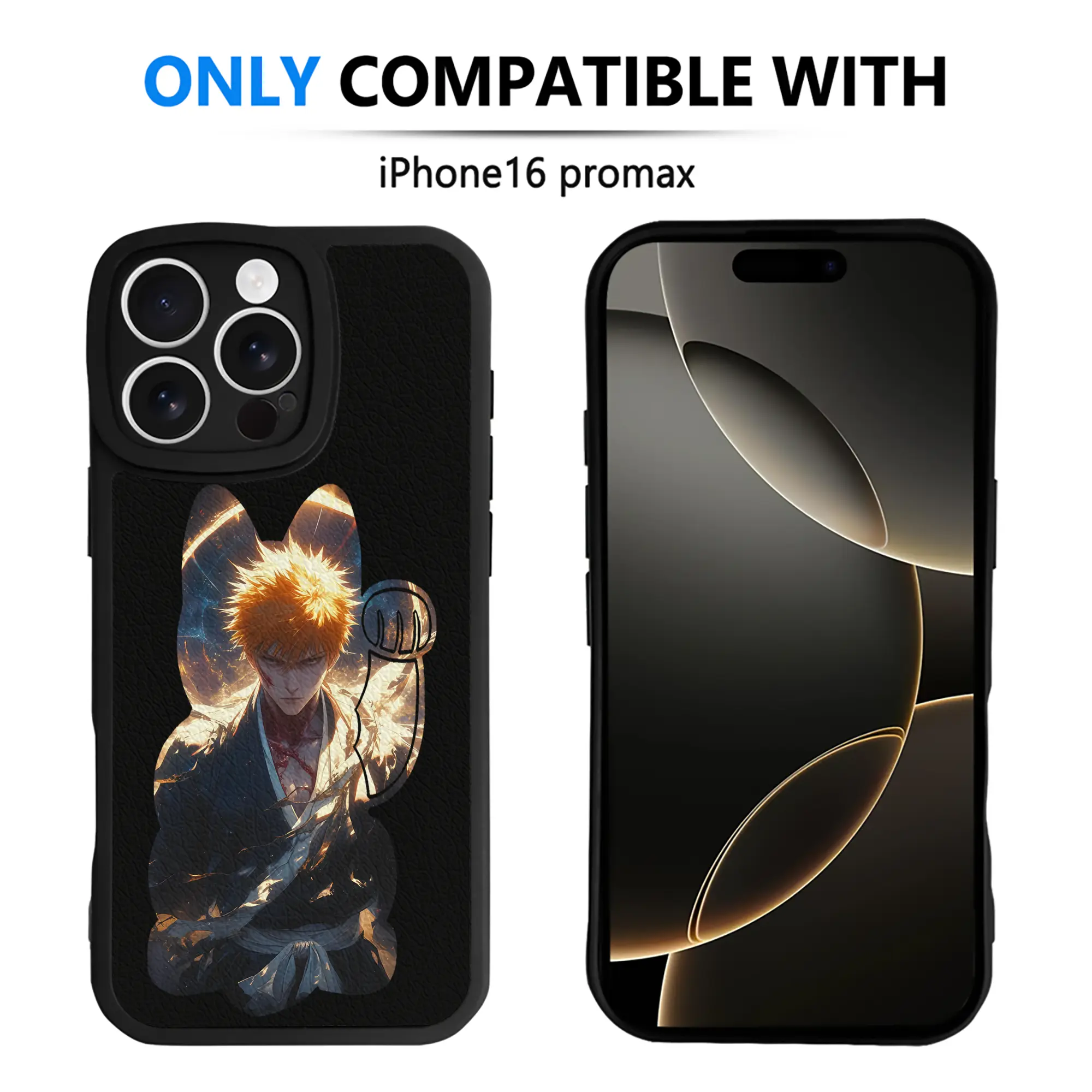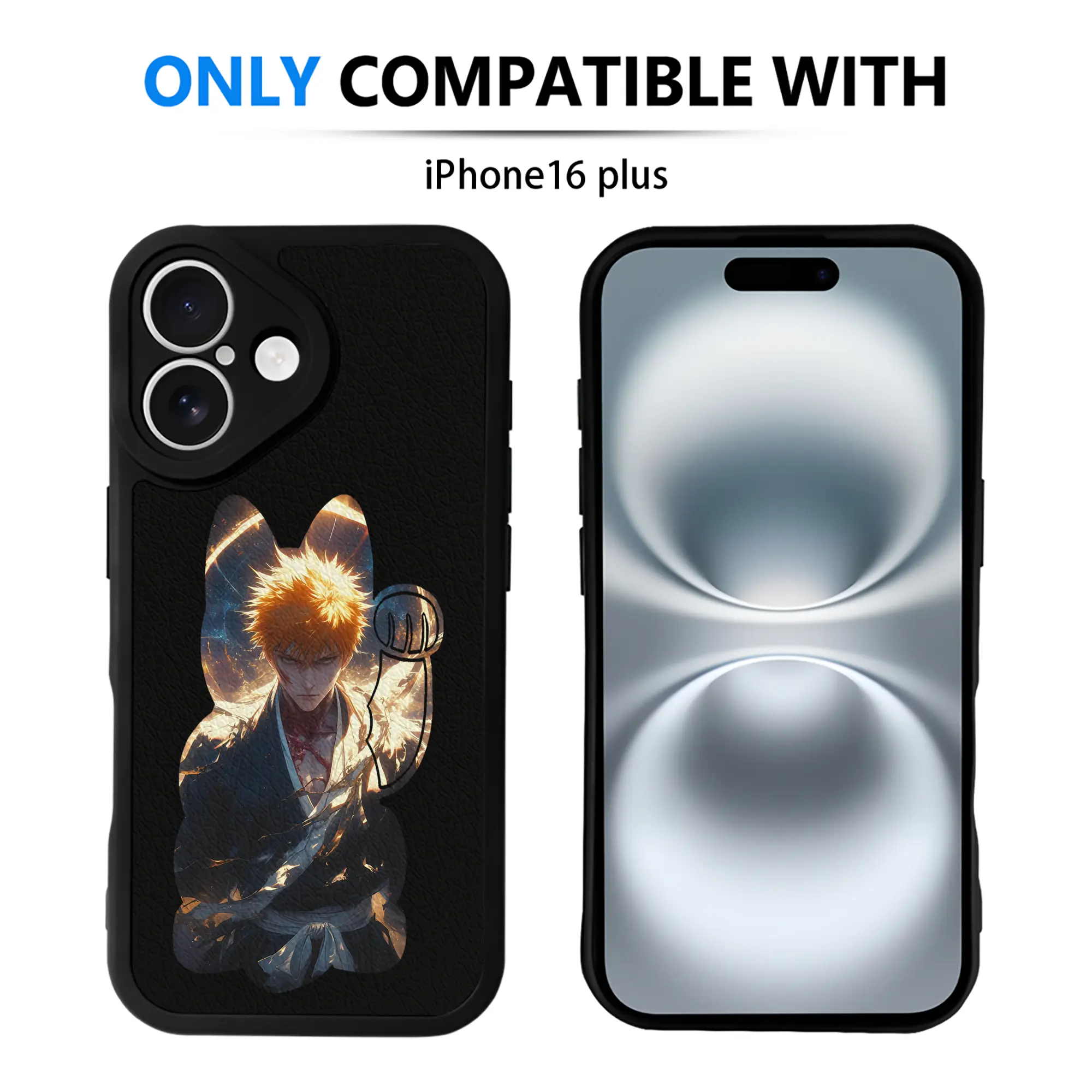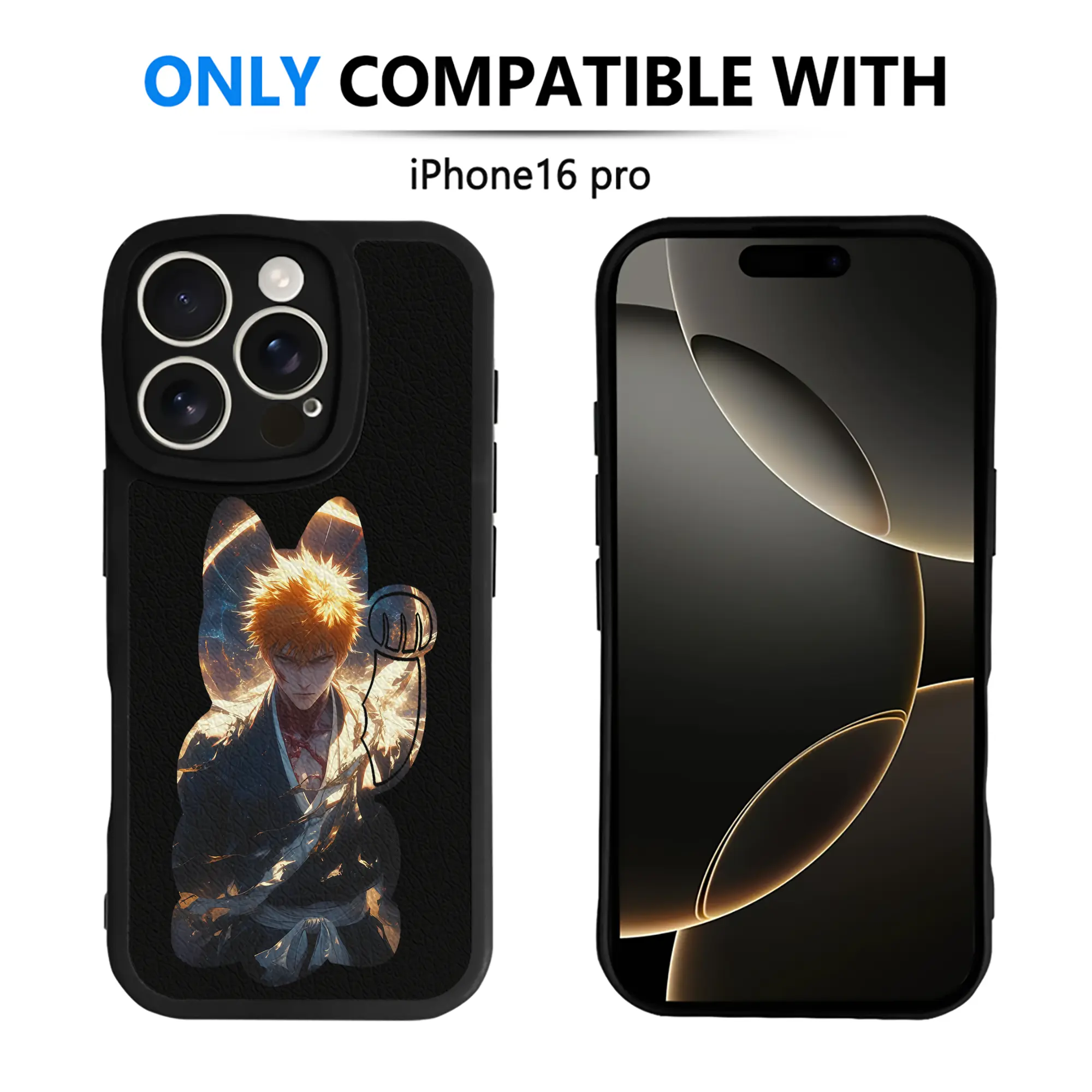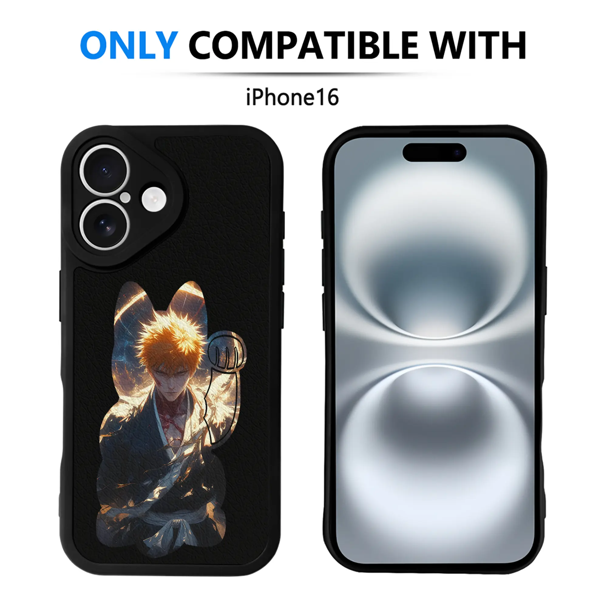 ブリーチ グッズ 黒崎 一護 - IPhone 16シリーズ対応 ・ シリコンスマホケース ・ レザー調 ・ 高精度フィット ・ 耐衝撃 ・ ワイヤレス充電対応 ・ 精密カット