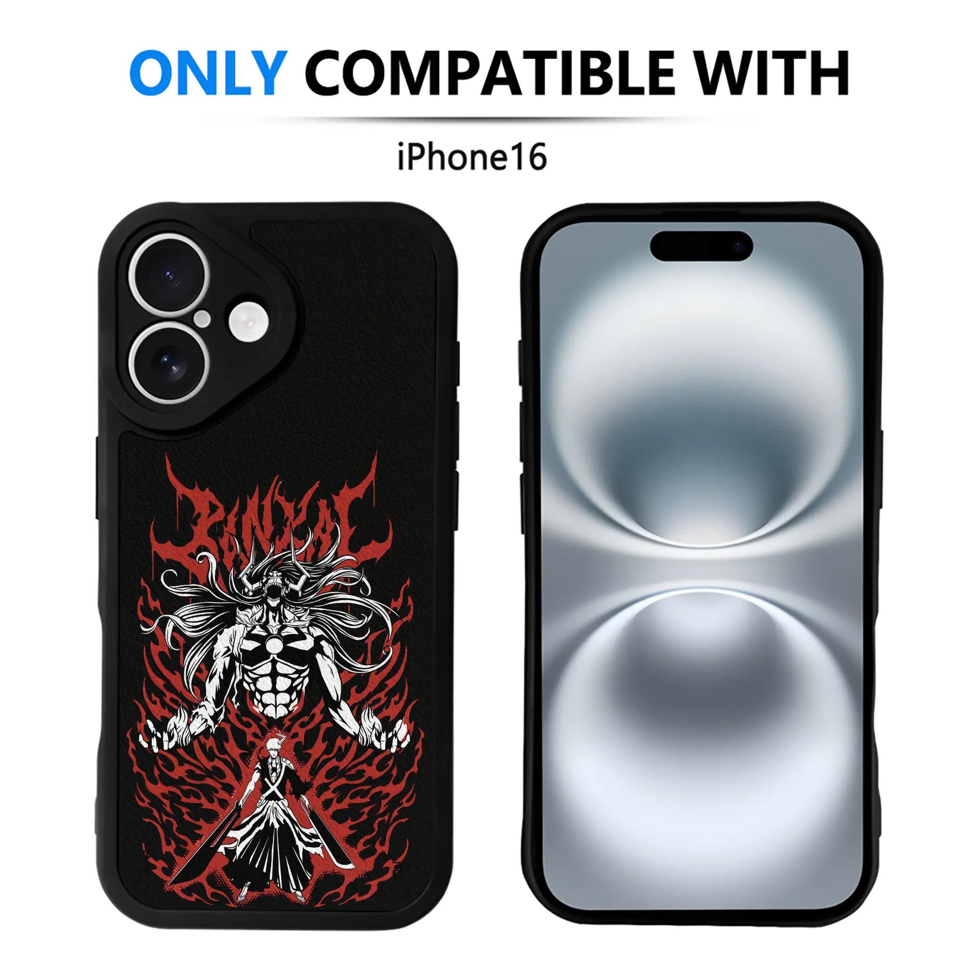 ブリーチ グッズ 黒崎 一護 - IPhone 16シリーズ対応 ・ シリコンスマホケース ・ レザー調 ・ 高精度フィット ・ 耐衝撃 ・ ワイヤレス充電対応 ・ 精密カット