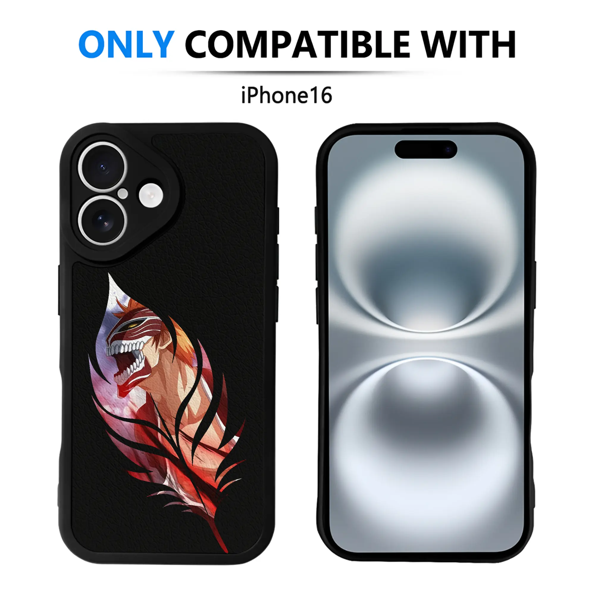 ブリーチ グッズ 黒崎 一護 - IPhone 16シリーズ対応 ・ シリコンスマホケース ・ レザー調 ・ 高精度フィット ・ 耐衝撃 ・ ワイヤレス充電対応 ・ 精密カット