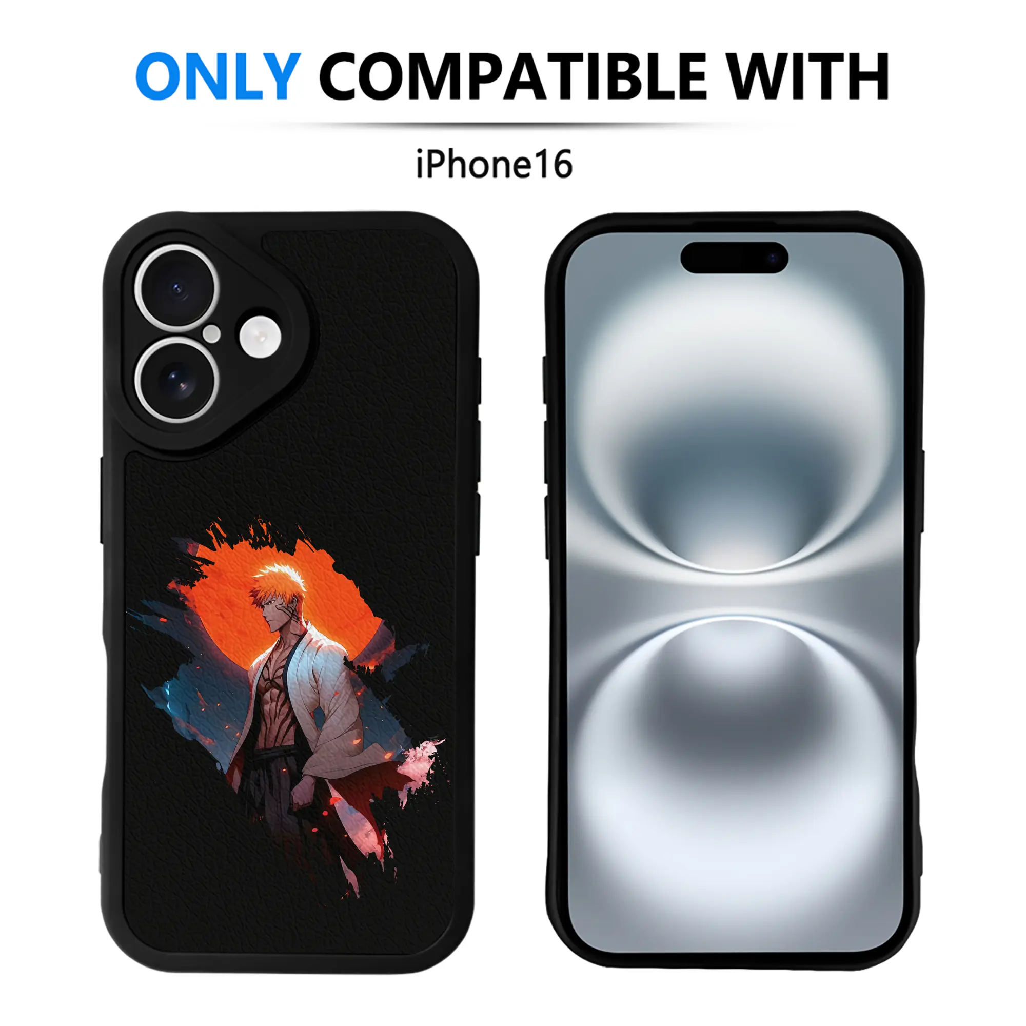 ブリーチ グッズ 黒崎 一護 - IPhone 16シリーズ対応 ・ シリコンスマホケース ・ レザー調 ・ 高精度フィット ・ 耐衝撃 ・ ワイヤレス充電対応 ・ 精密カット