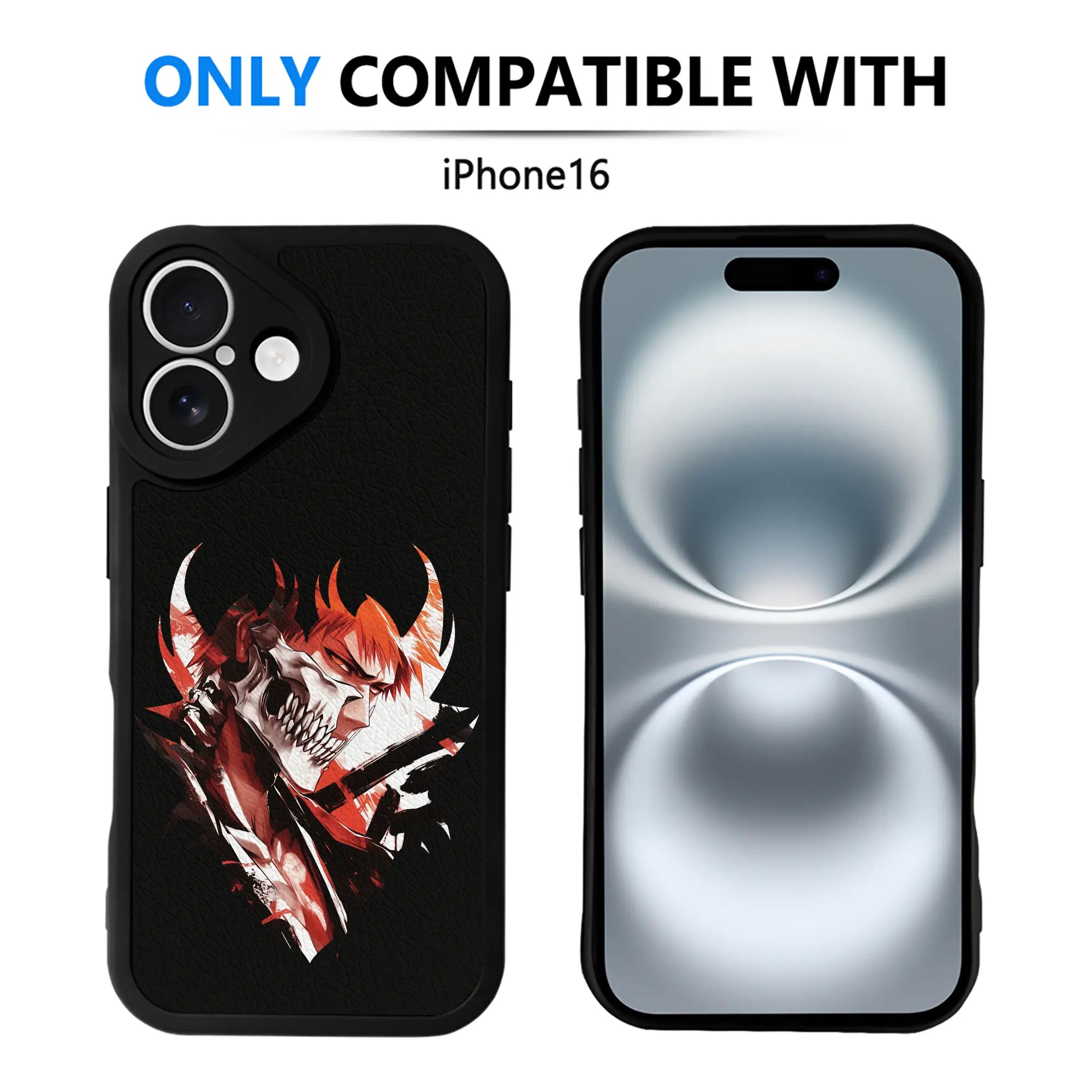 ブリーチ グッズ 黒崎 一護 - IPhone 16シリーズ対応 ・ シリコンスマホケース ・ レザー調 ・ 高精度フィット ・ 耐衝撃 ・ ワイヤレス充電対応 ・ 精密カット