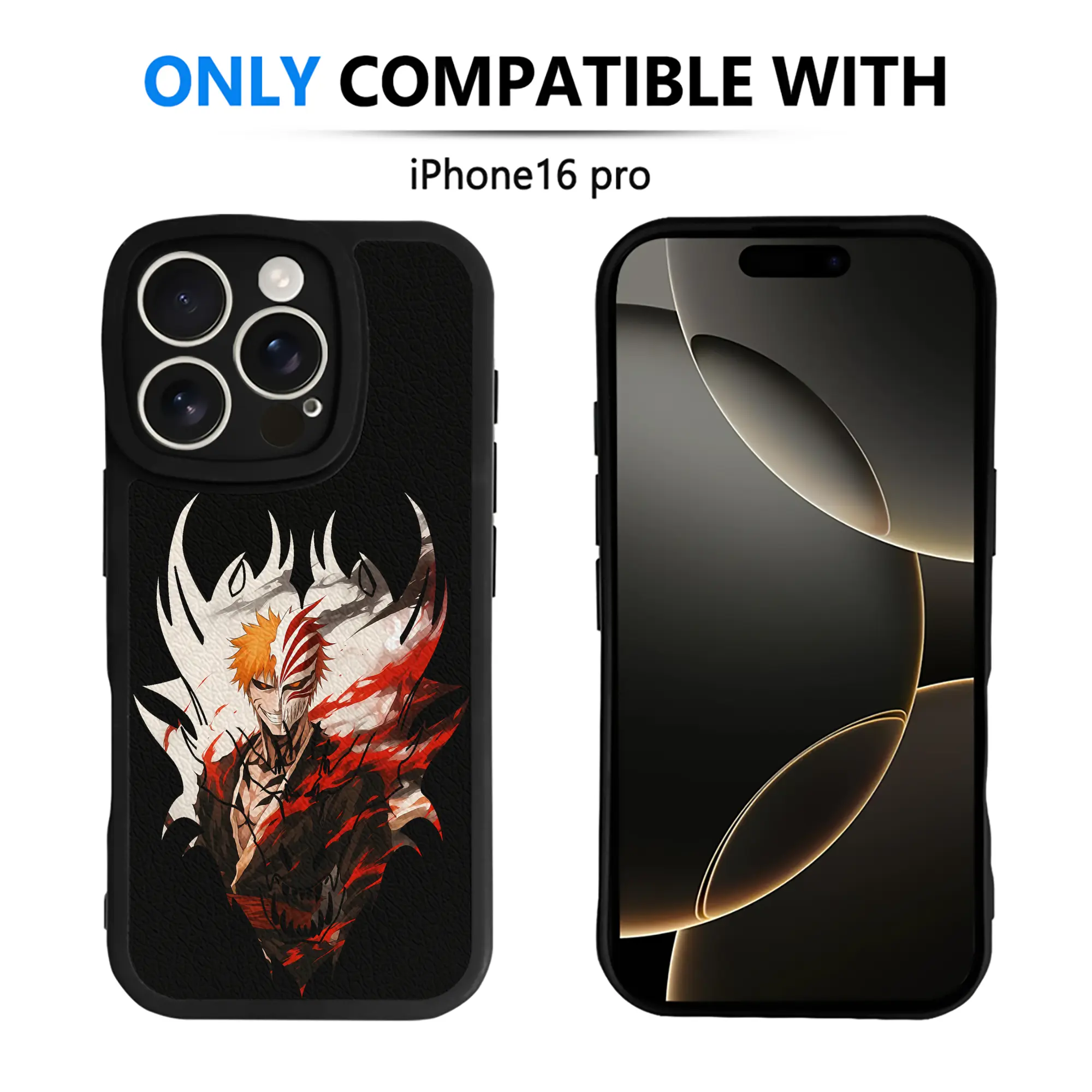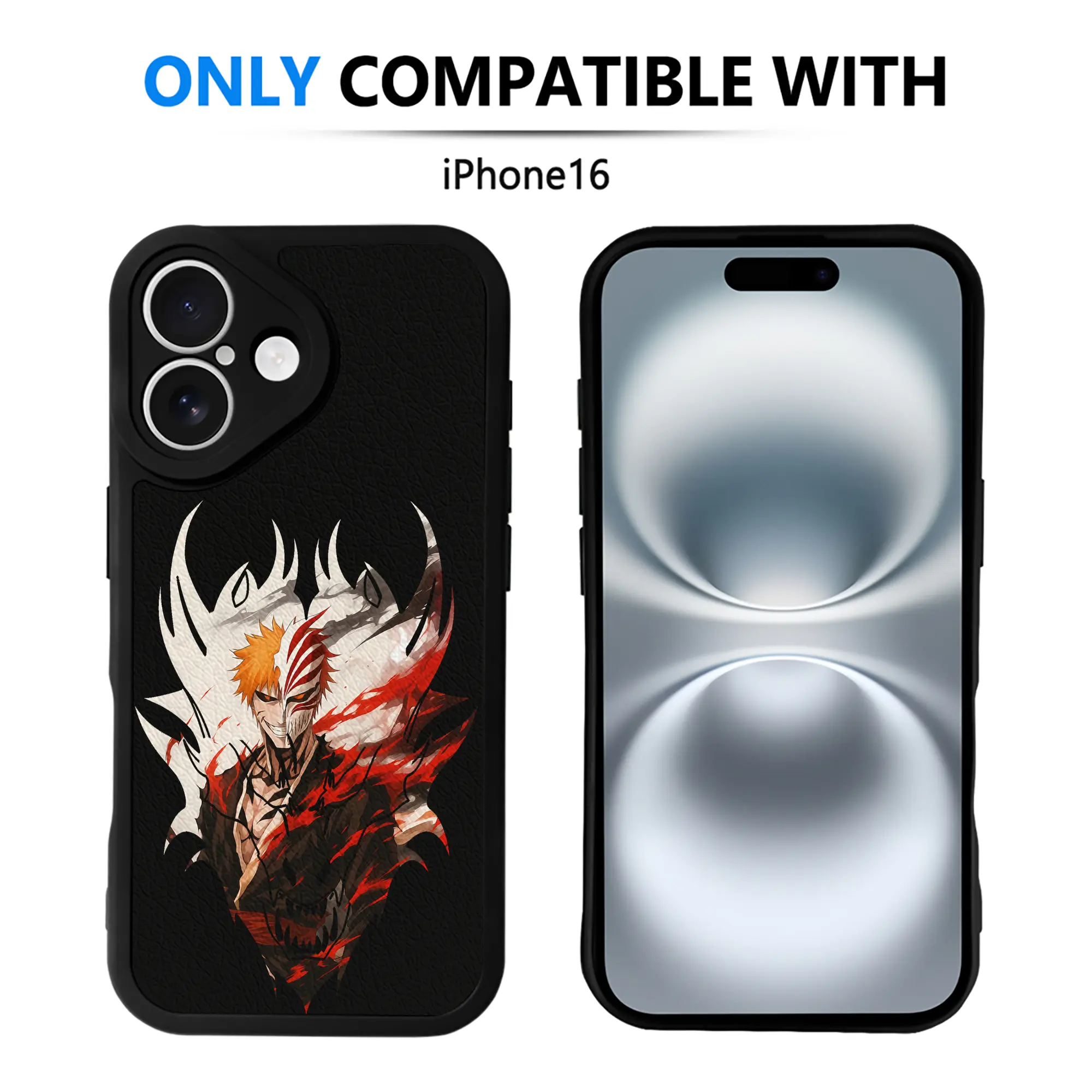ブリーチ グッズ 黒崎 一護 - IPhone 16シリーズ対応 ・ シリコンスマホケース ・ レザー調 ・ 高精度フィット ・ 耐衝撃 ・ ワイヤレス充電対応 ・ 精密カット