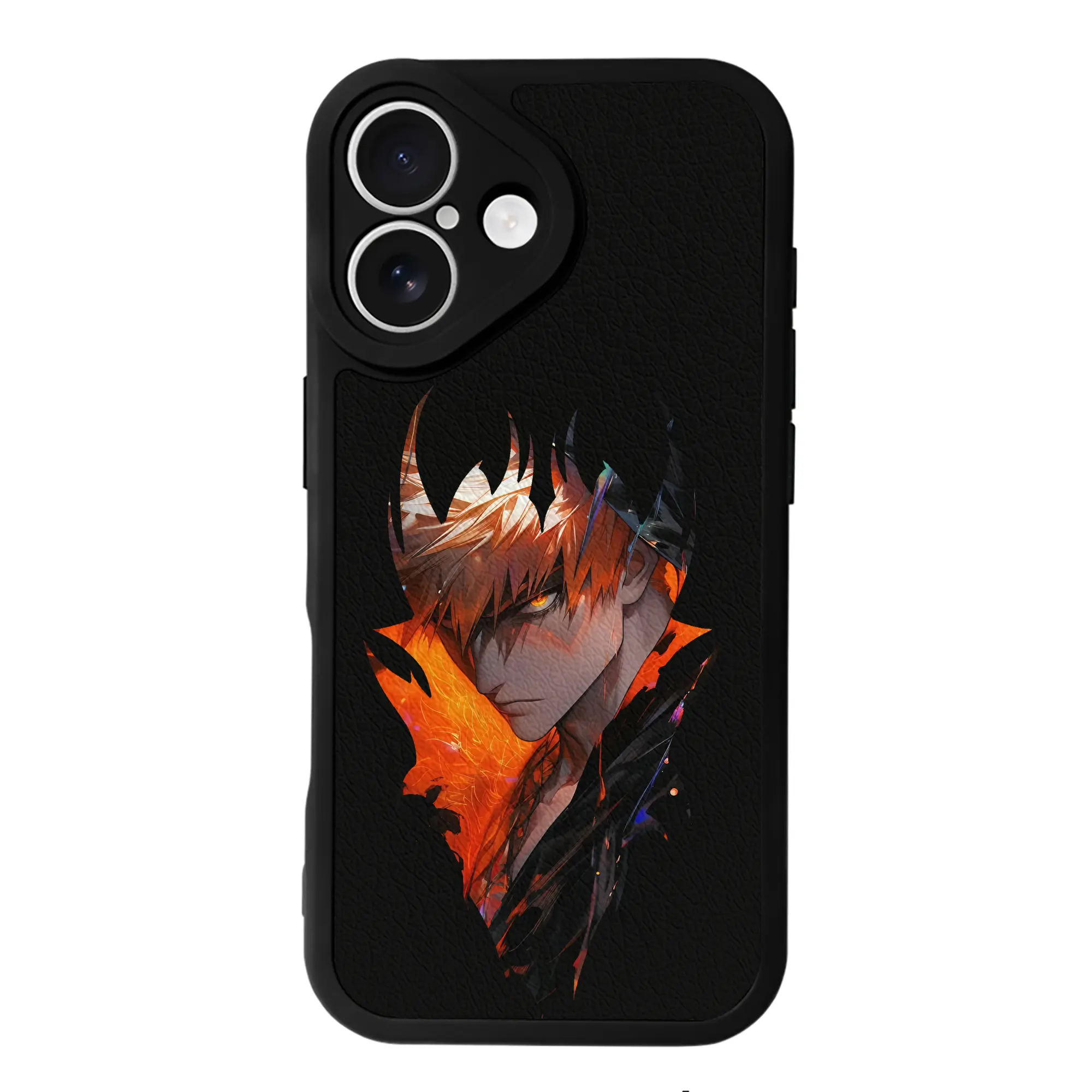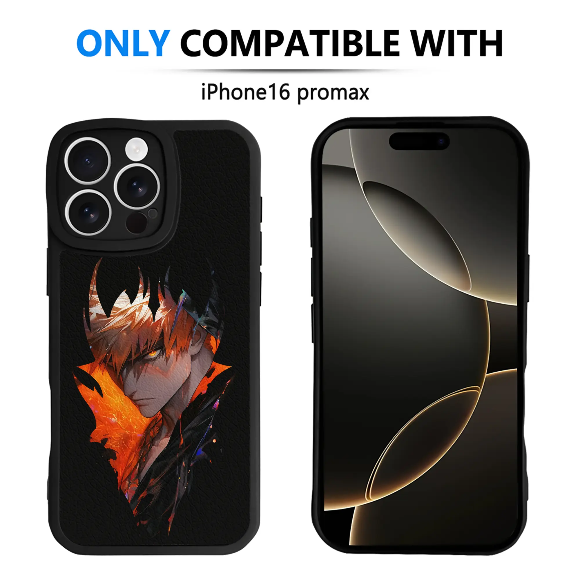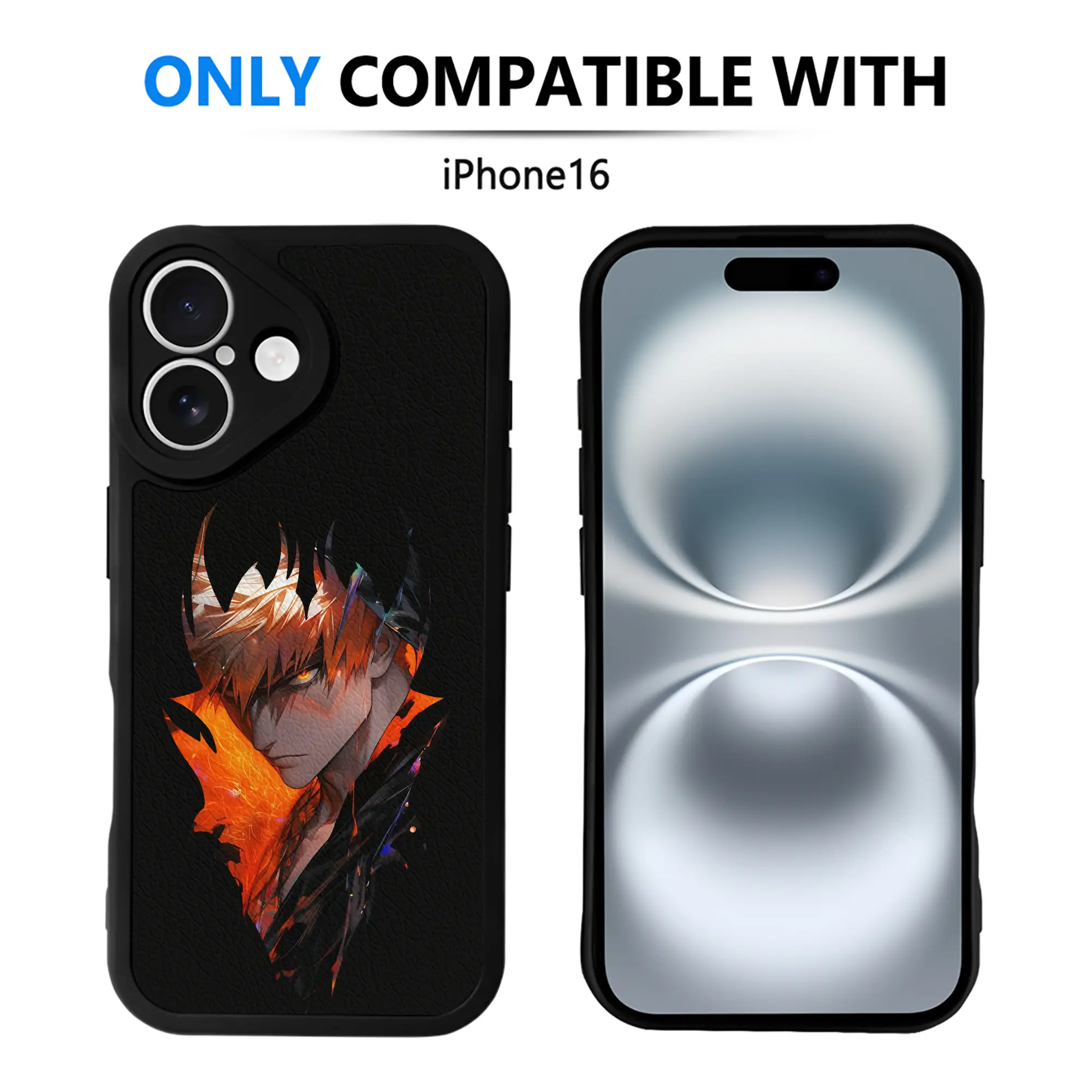 ブリーチ グッズ 黒崎 一護 - IPhone 16シリーズ対応 ・ シリコンスマホケース ・ レザー調 ・ 高精度フィット ・ 耐衝撃 ・ ワイヤレス充電対応 ・ 精密カット