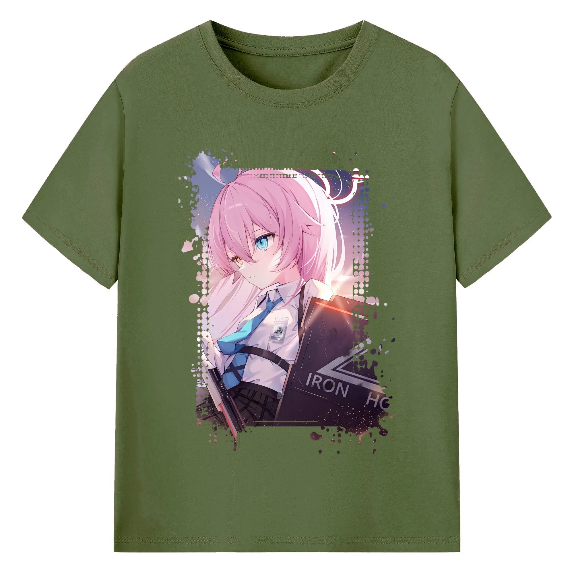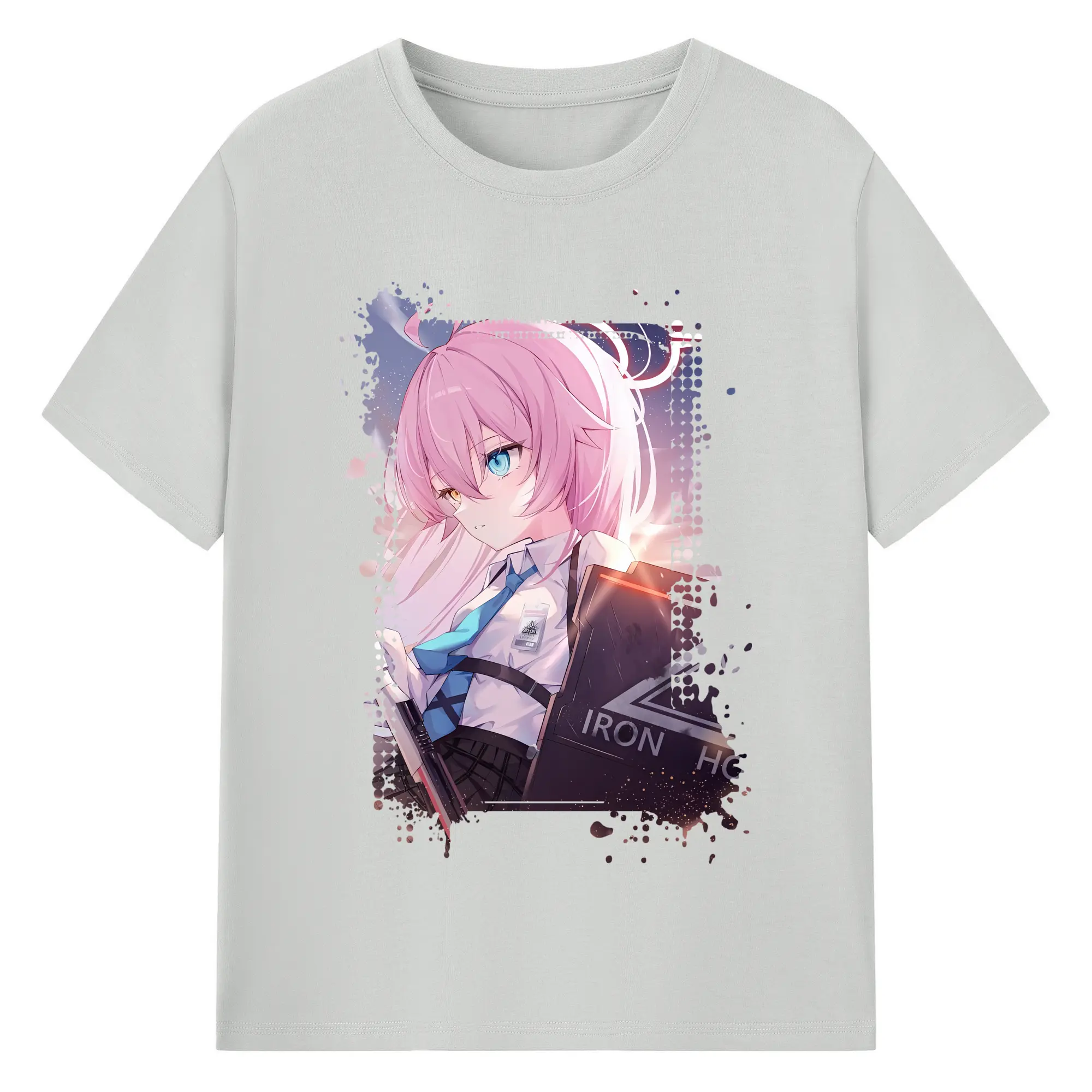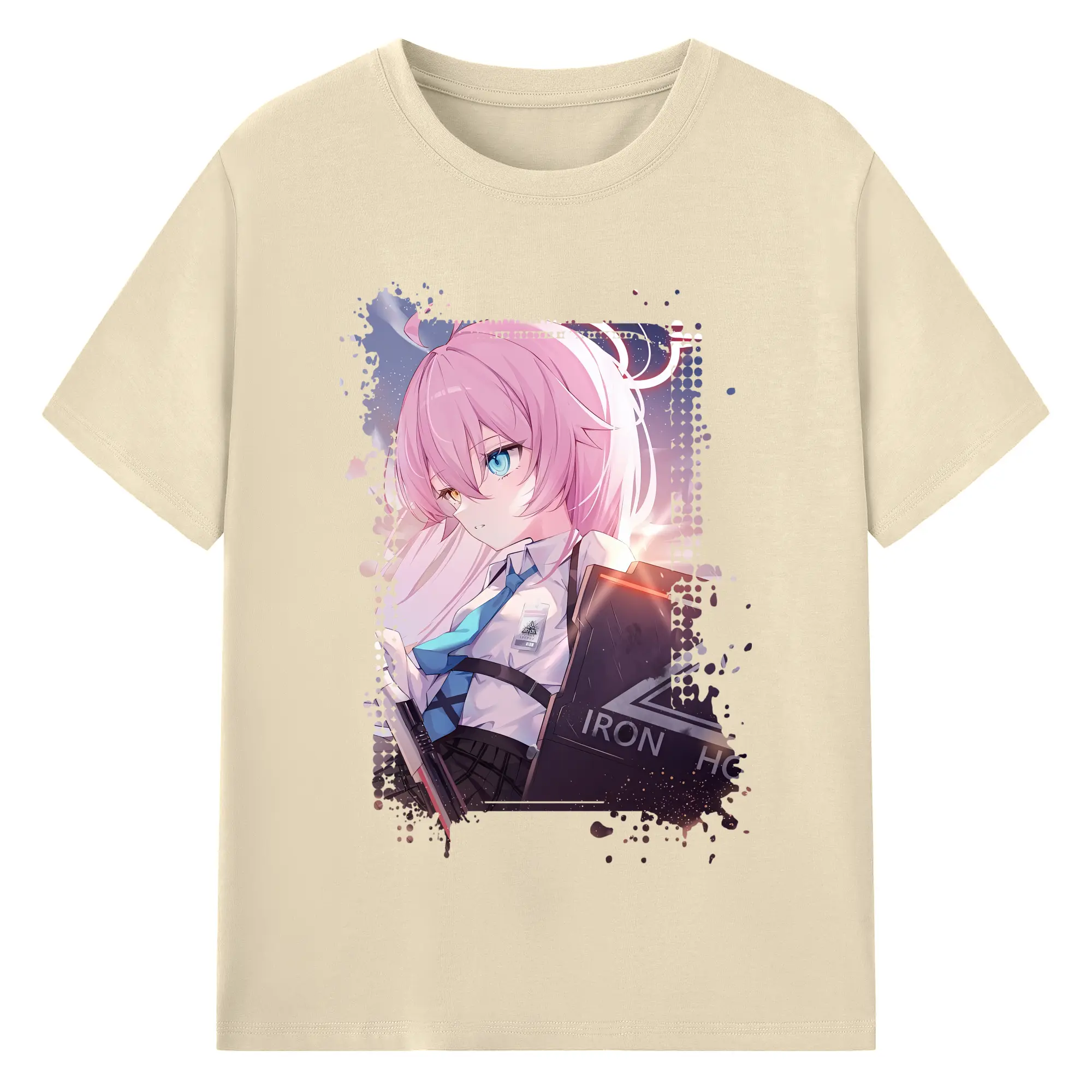 ブルーアーカイブ グッズ 小鳥遊ホシノ - 綿100% ヴィンテージ風 半袖Tシャツ ・ フロントプリント ・ 柔らか肌触り ・ 通気性 快適 ・ スポーツ カジュアル 外出用