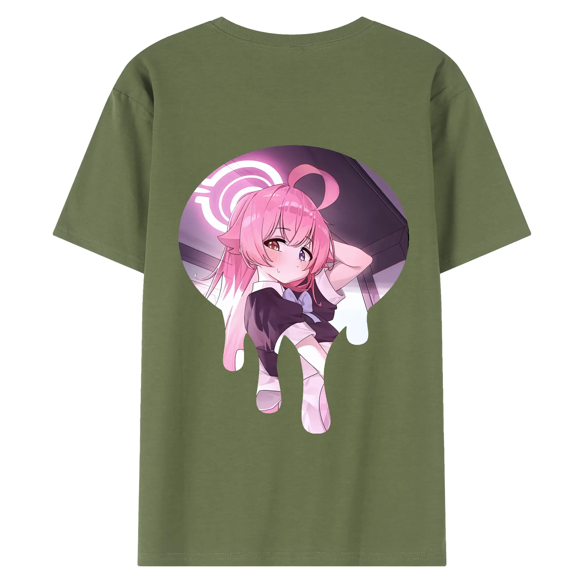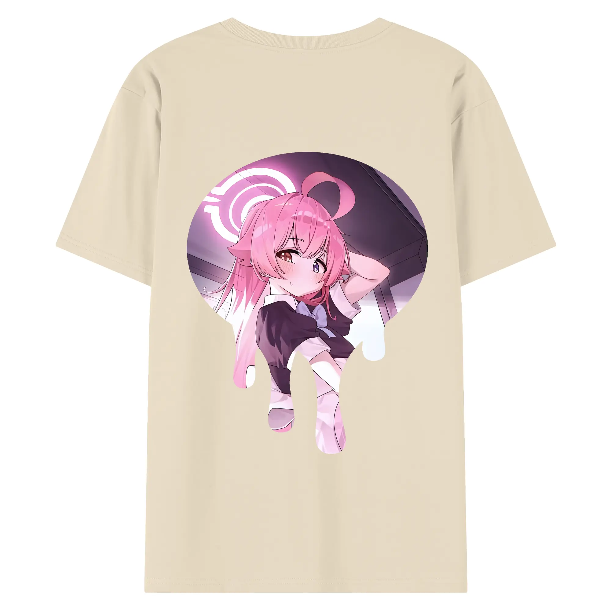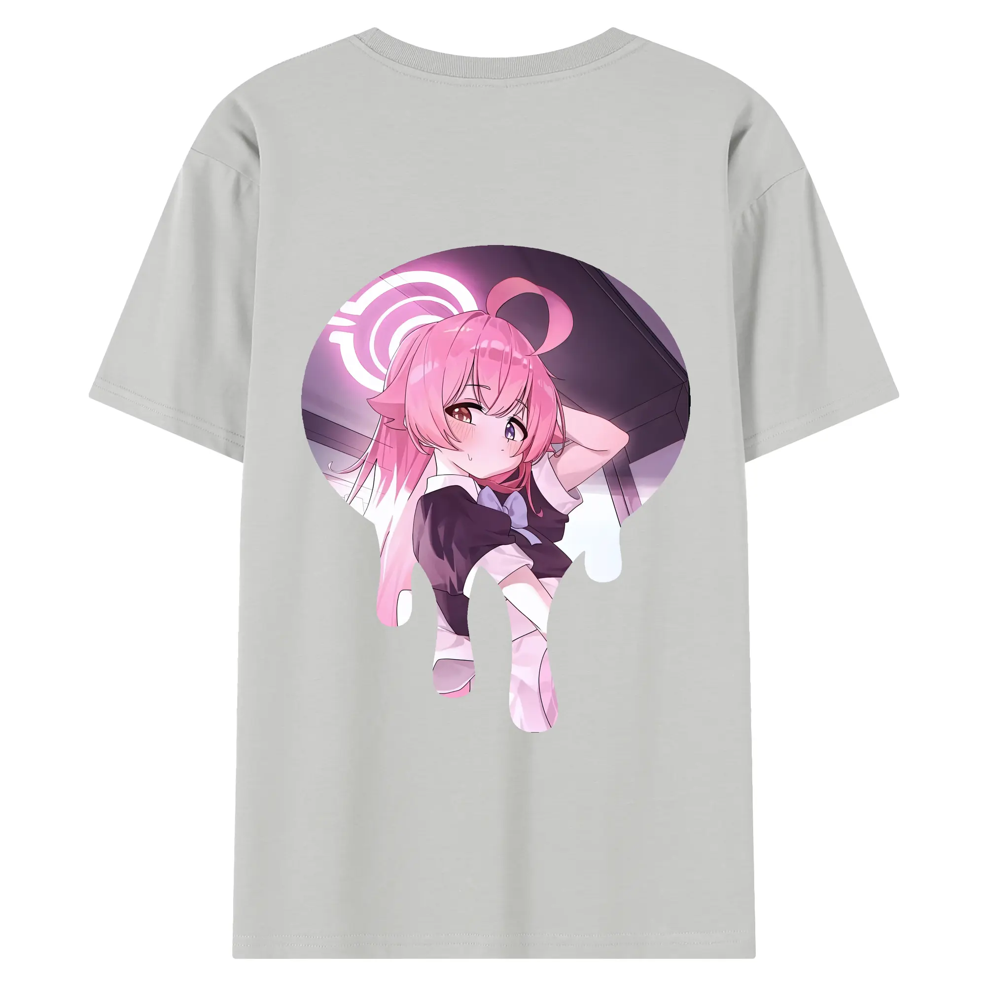 ブルーアーカイブ グッズ 小鳥遊ホシノ - 綿100% ヴィンテージ風 半袖Tシャツ ・ 背面プリント ・ 柔らか肌触り ・ 通気性 快適 ・ スポーツ カジュアル 外出用