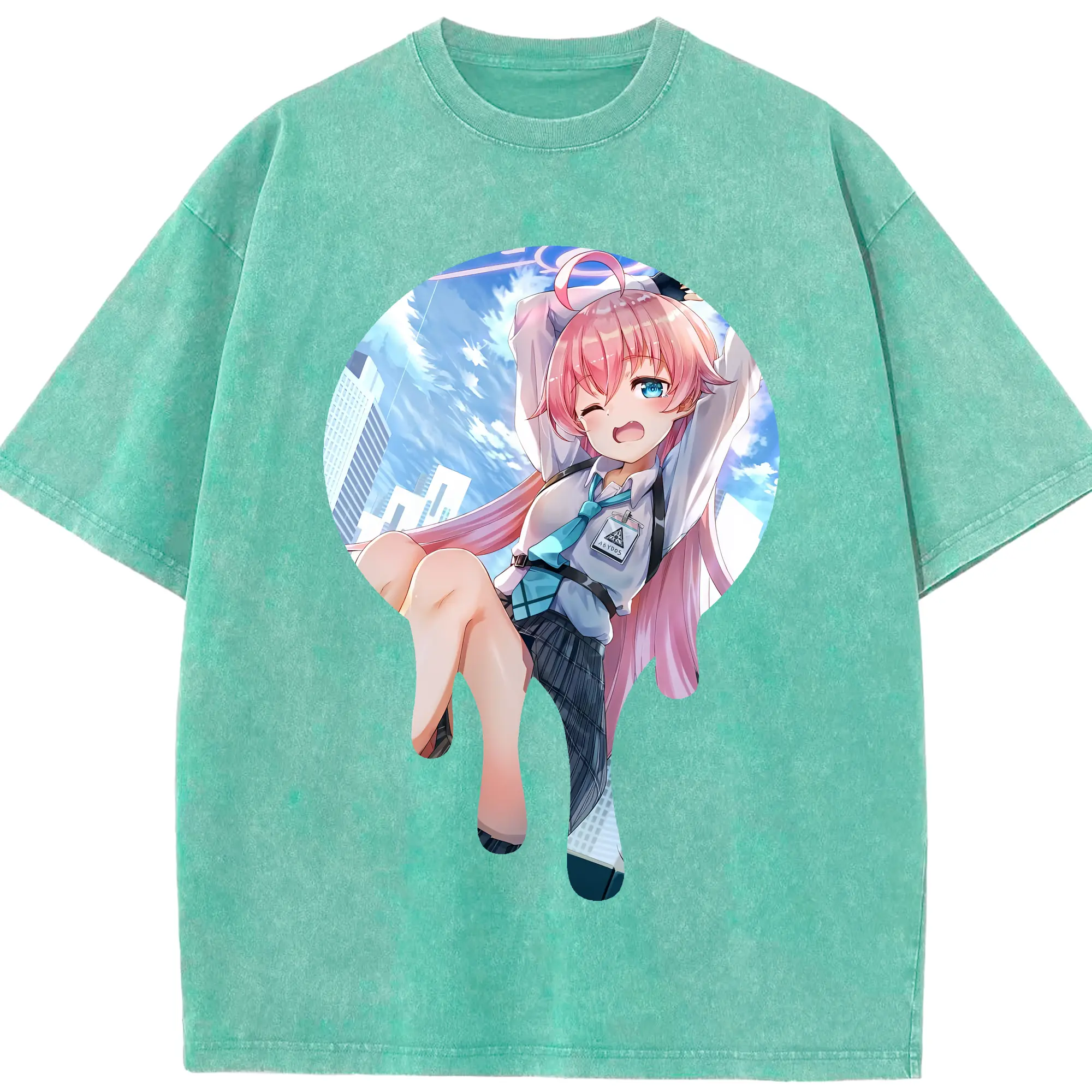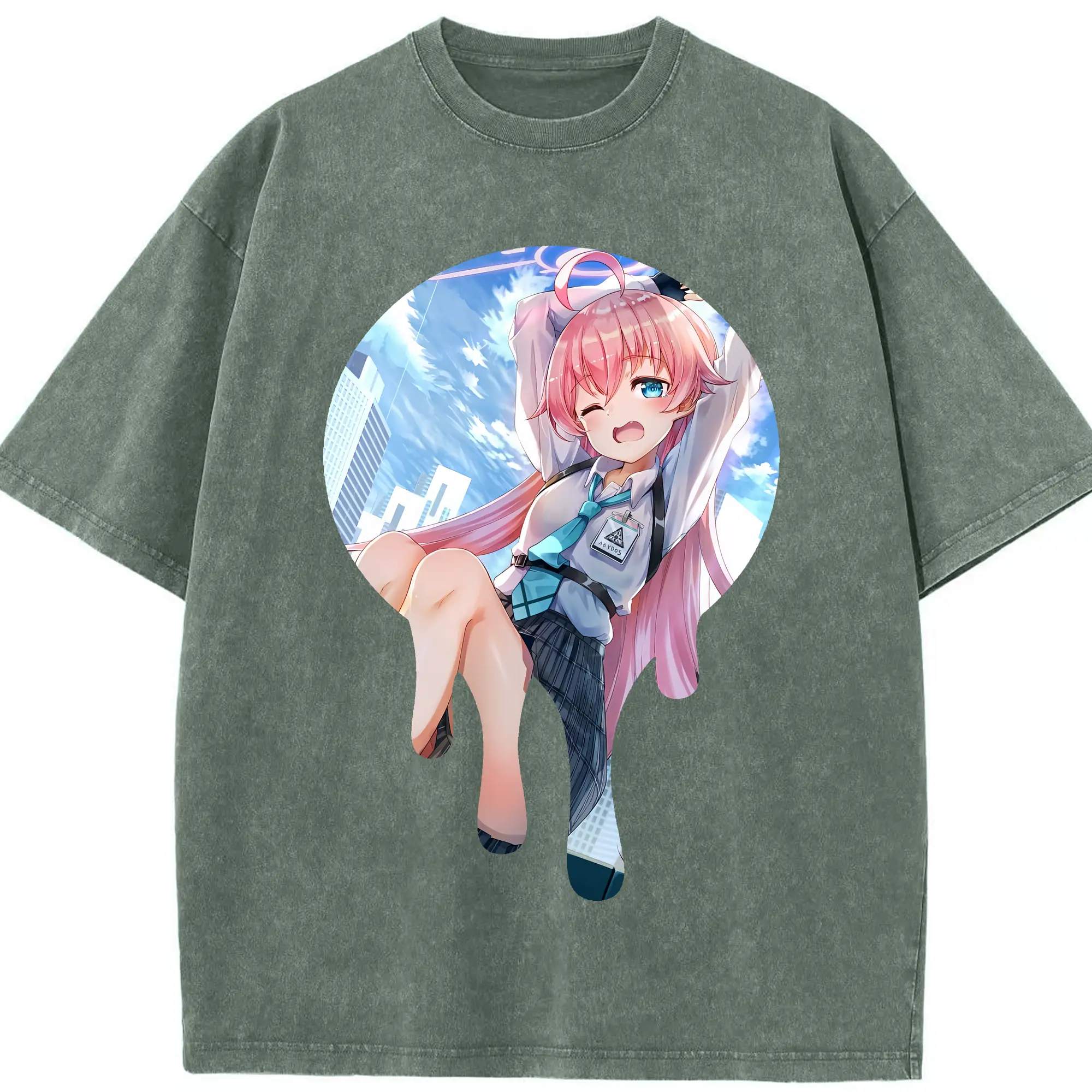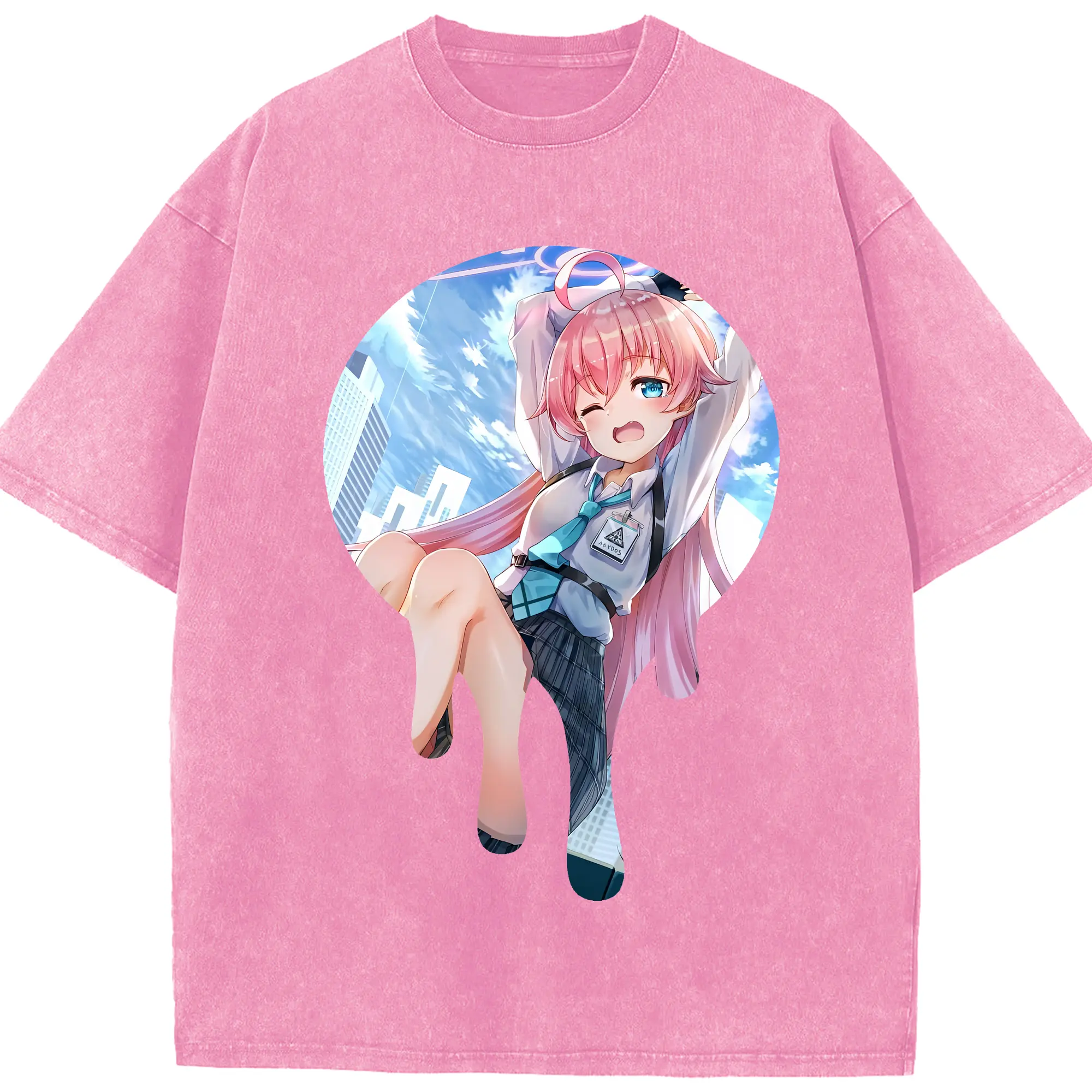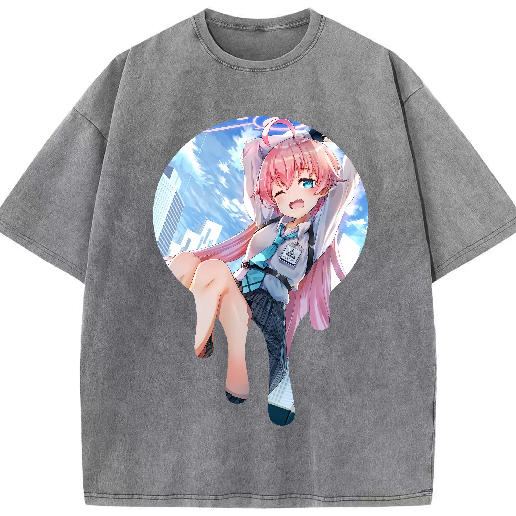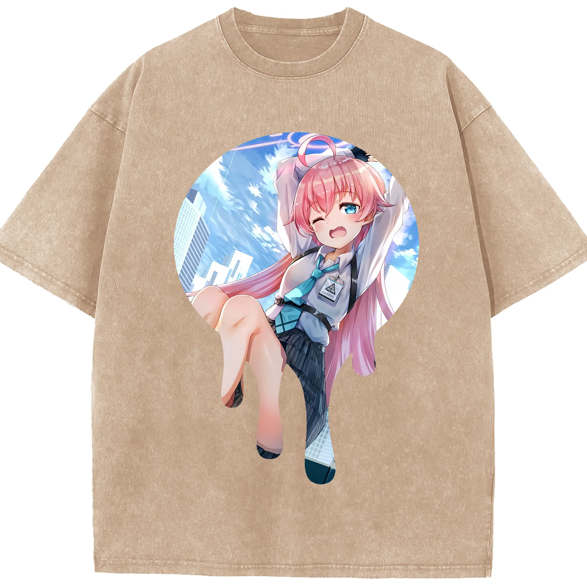 ブルーアーカイブ グッズ 小鳥遊ホシノ - 綿100% ヴィンテージ風 半袖Tシャツ ・ 背面プリント ・ 柔らか肌触り ・ 通気性 快適 ・ スポーツ カジュアル 外出用