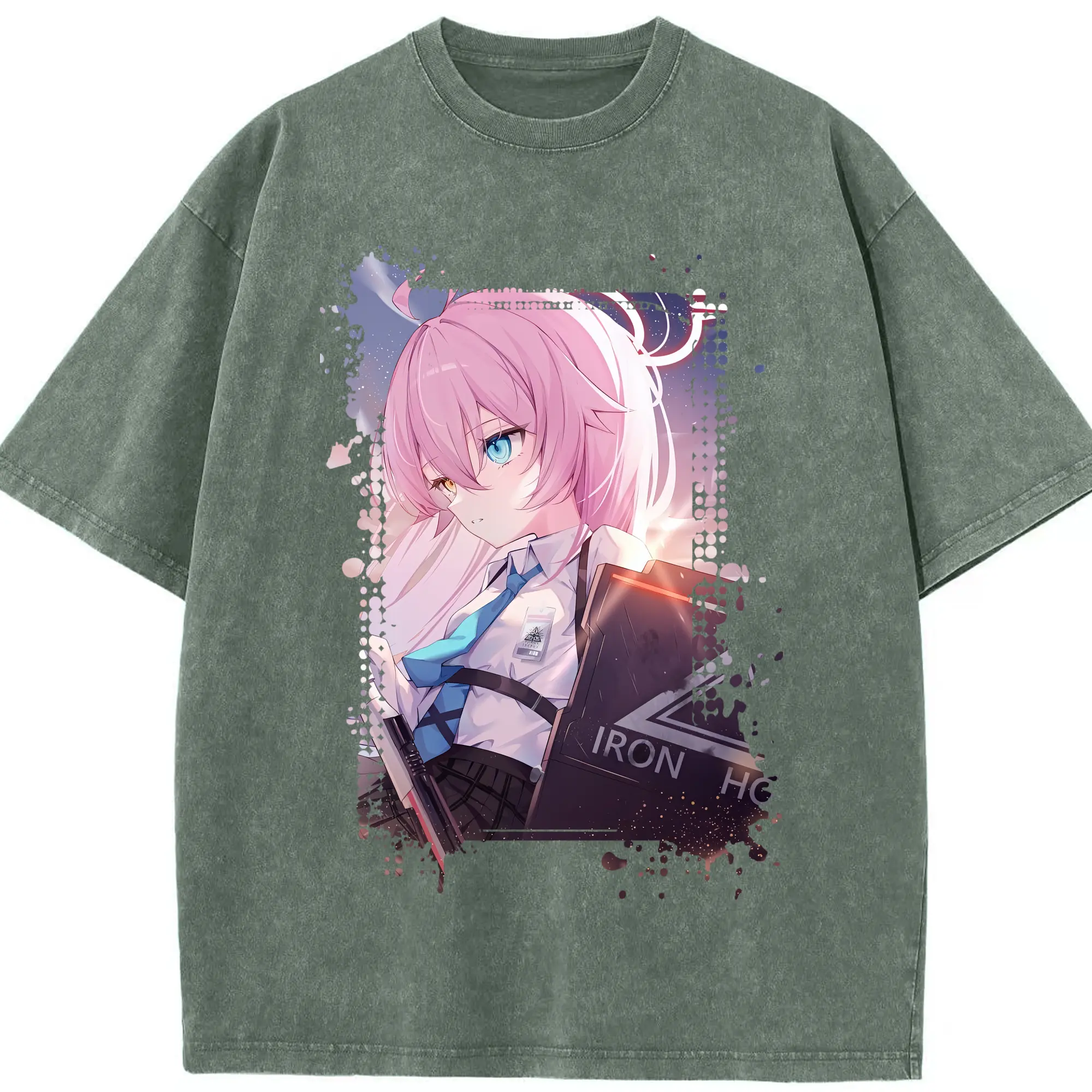 鳴潮 グッズ フィービー - 綿100% ヴィンテージ風 半袖Tシャツ ・ フロントプリント ・ 柔らか肌触り ・ 通気性 快適 ・ スポーツ カジュアル 外出用