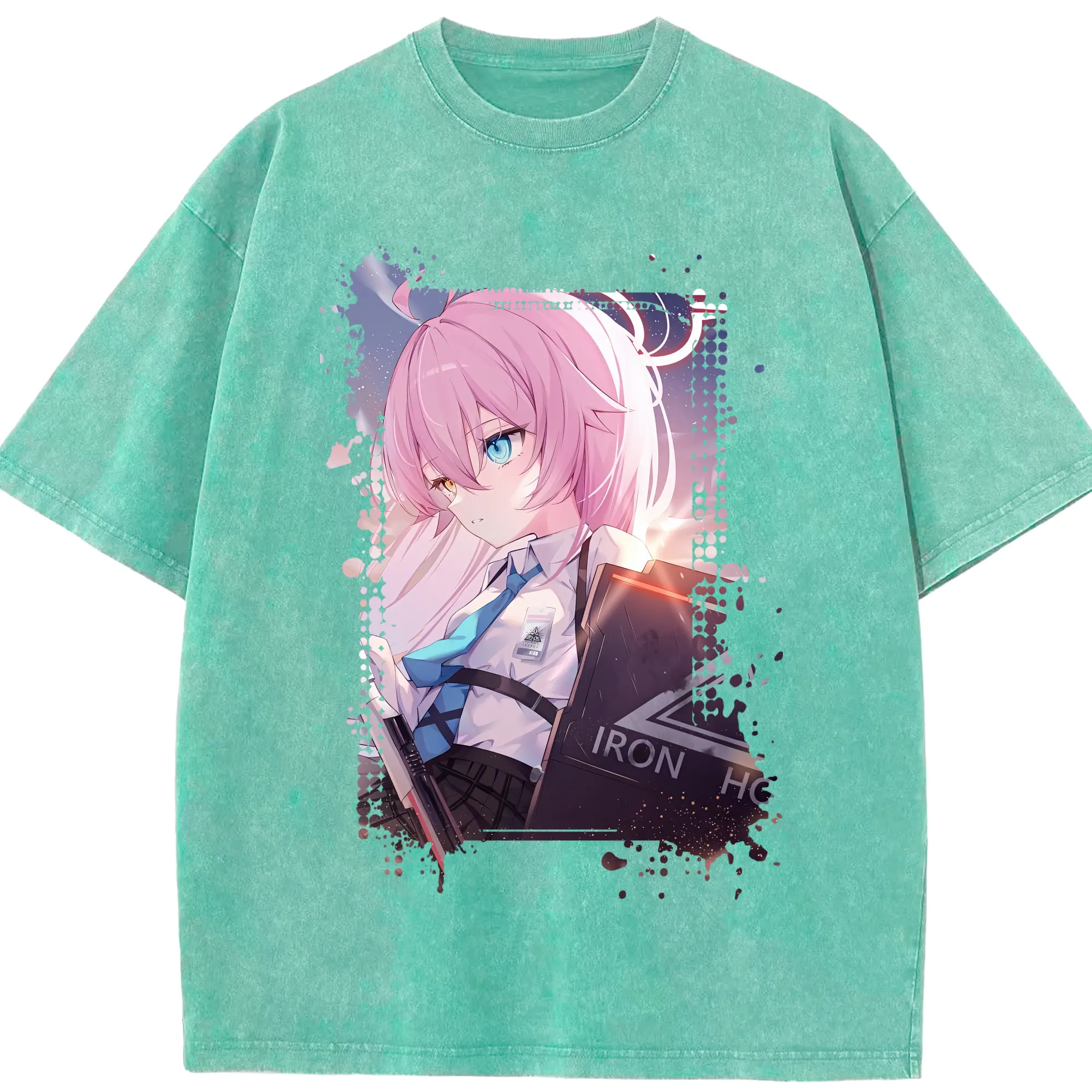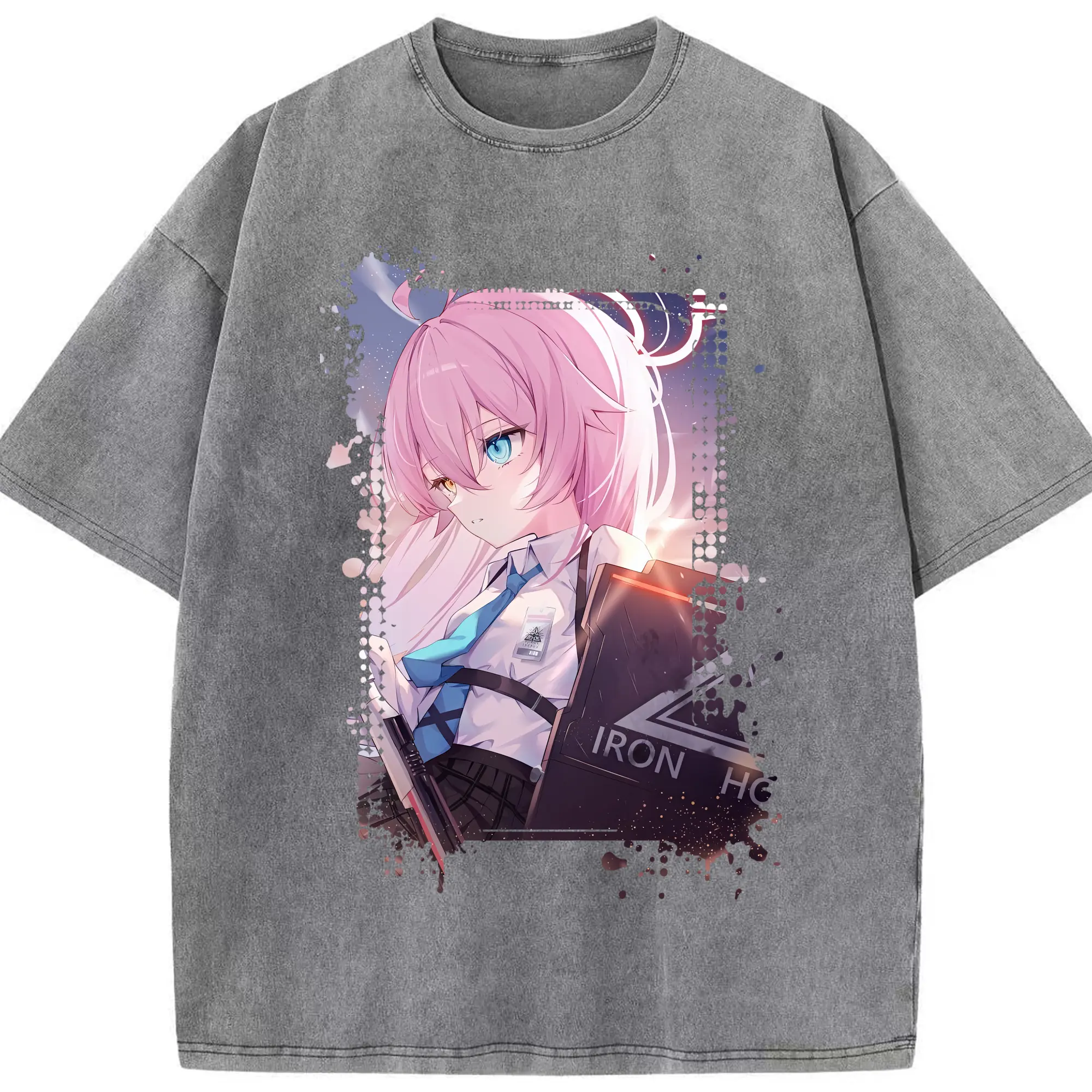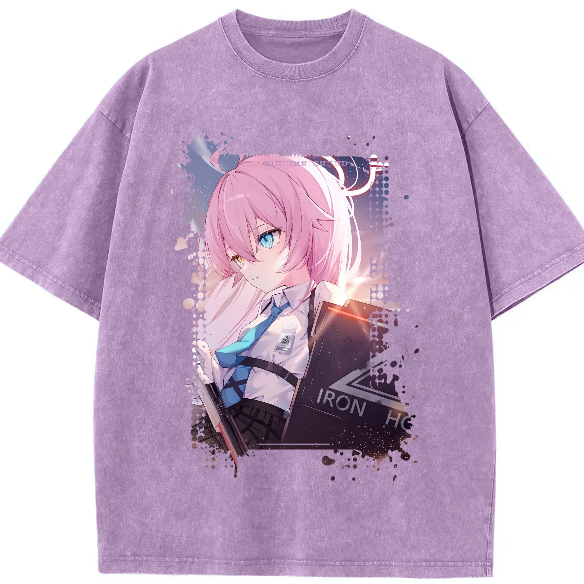ブルーアーカイブ グッズ 聖園ミカ - 綿100% ヴィンテージ風 半袖Tシャツ ・ フロントプリント ・ 柔らか肌触り ・ 通気性 快適 ・ スポーツ カジュアル 外出用