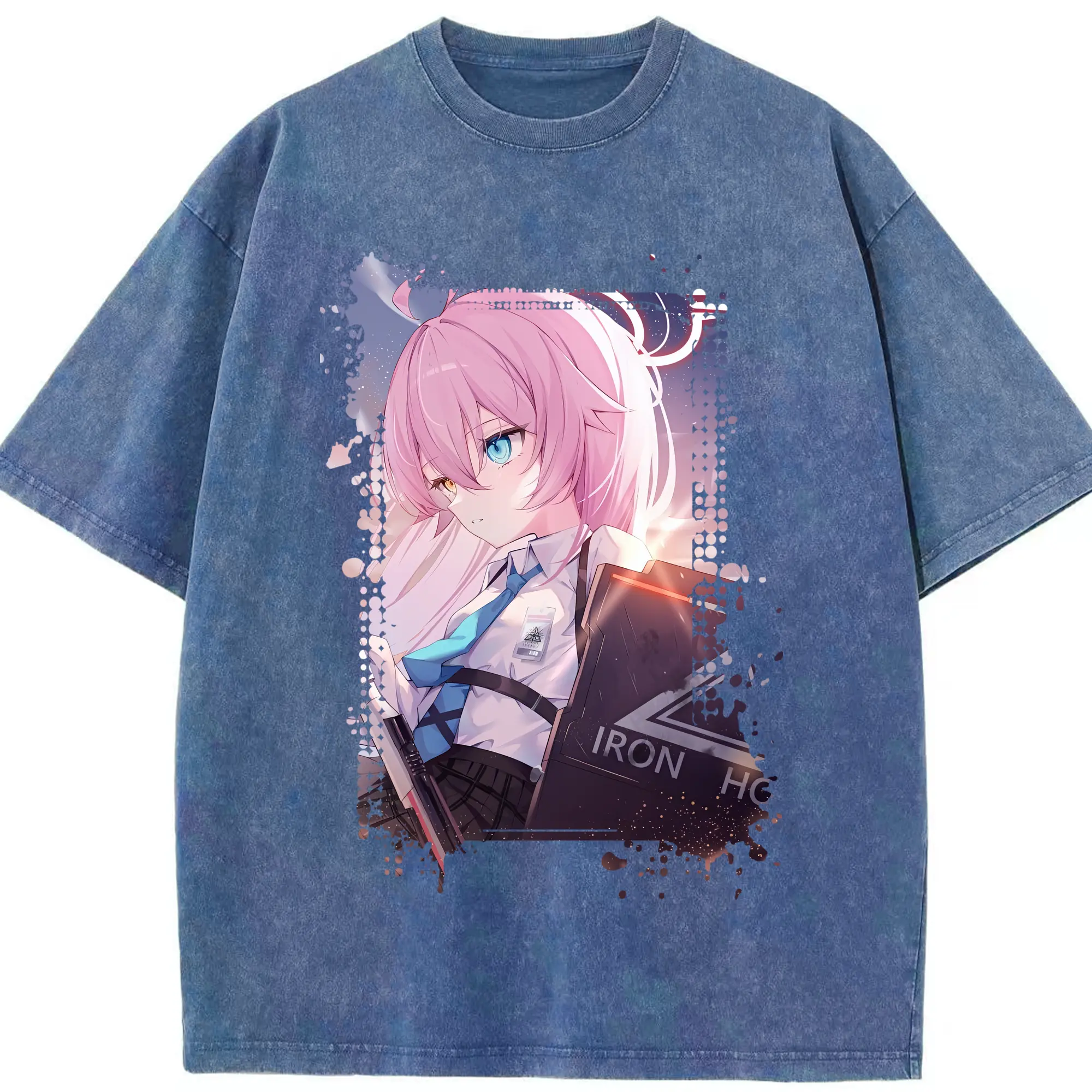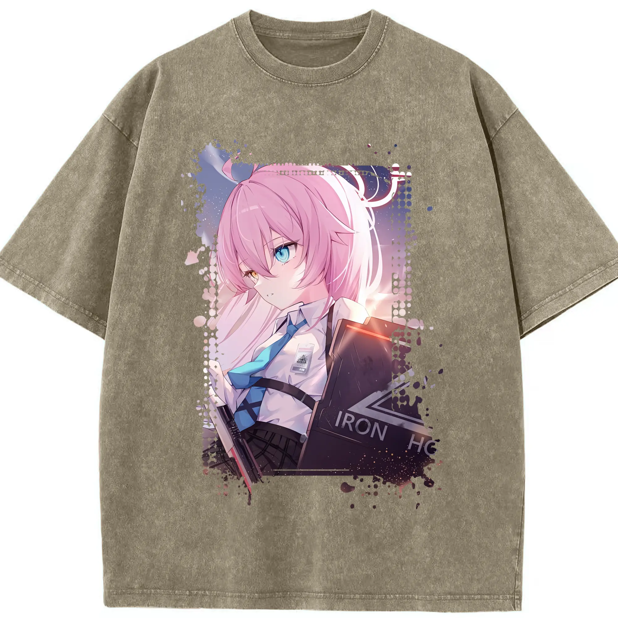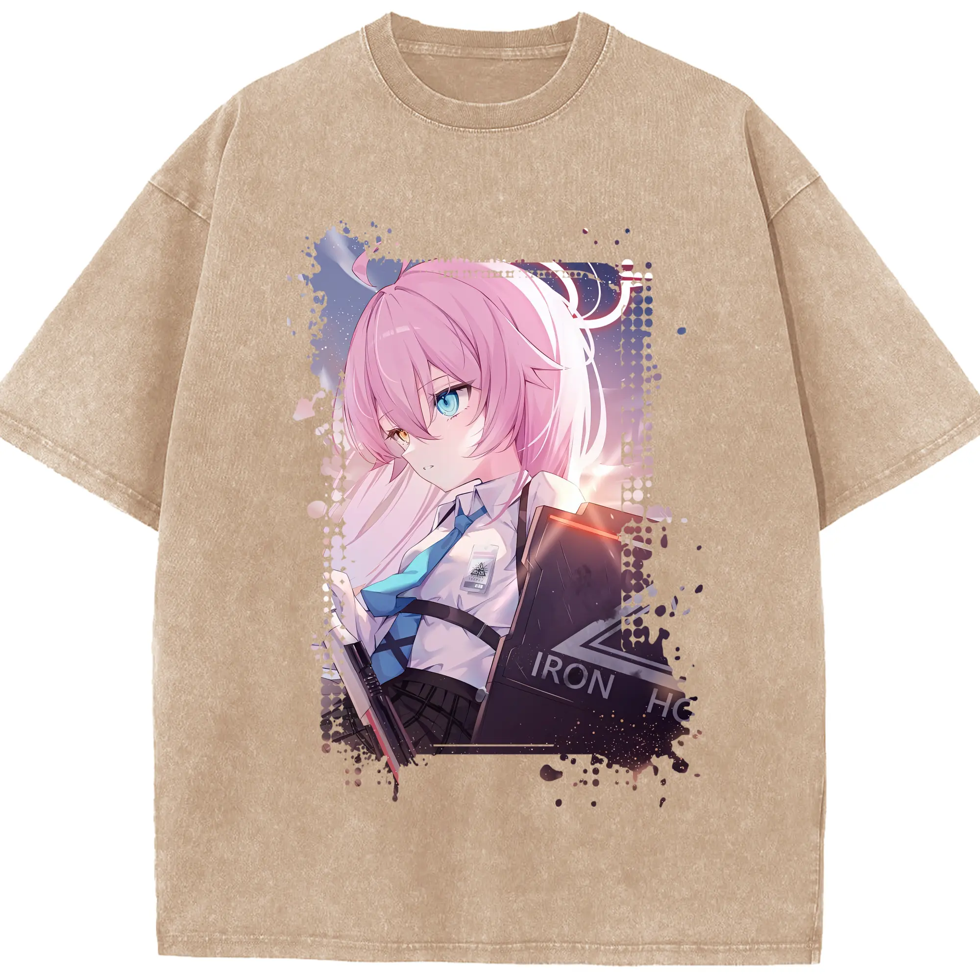 ブルーアーカイブ グッズ 聖園ミカ - 綿100% ヴィンテージ風 半袖Tシャツ ・ フロントプリント ・ 柔らか肌触り ・ 通気性 快適 ・ スポーツ カジュアル 外出用