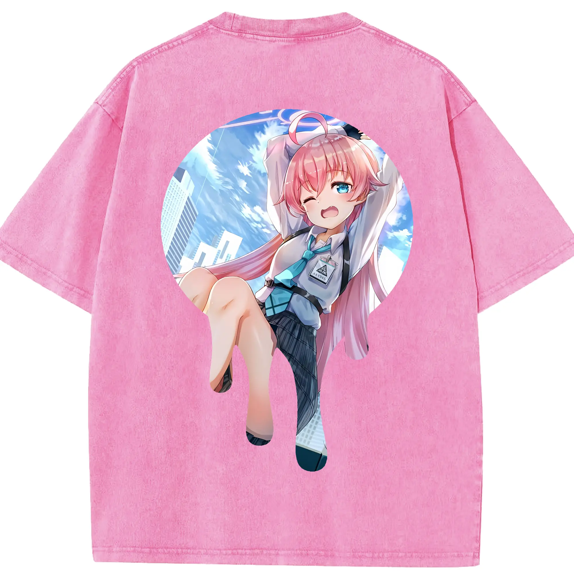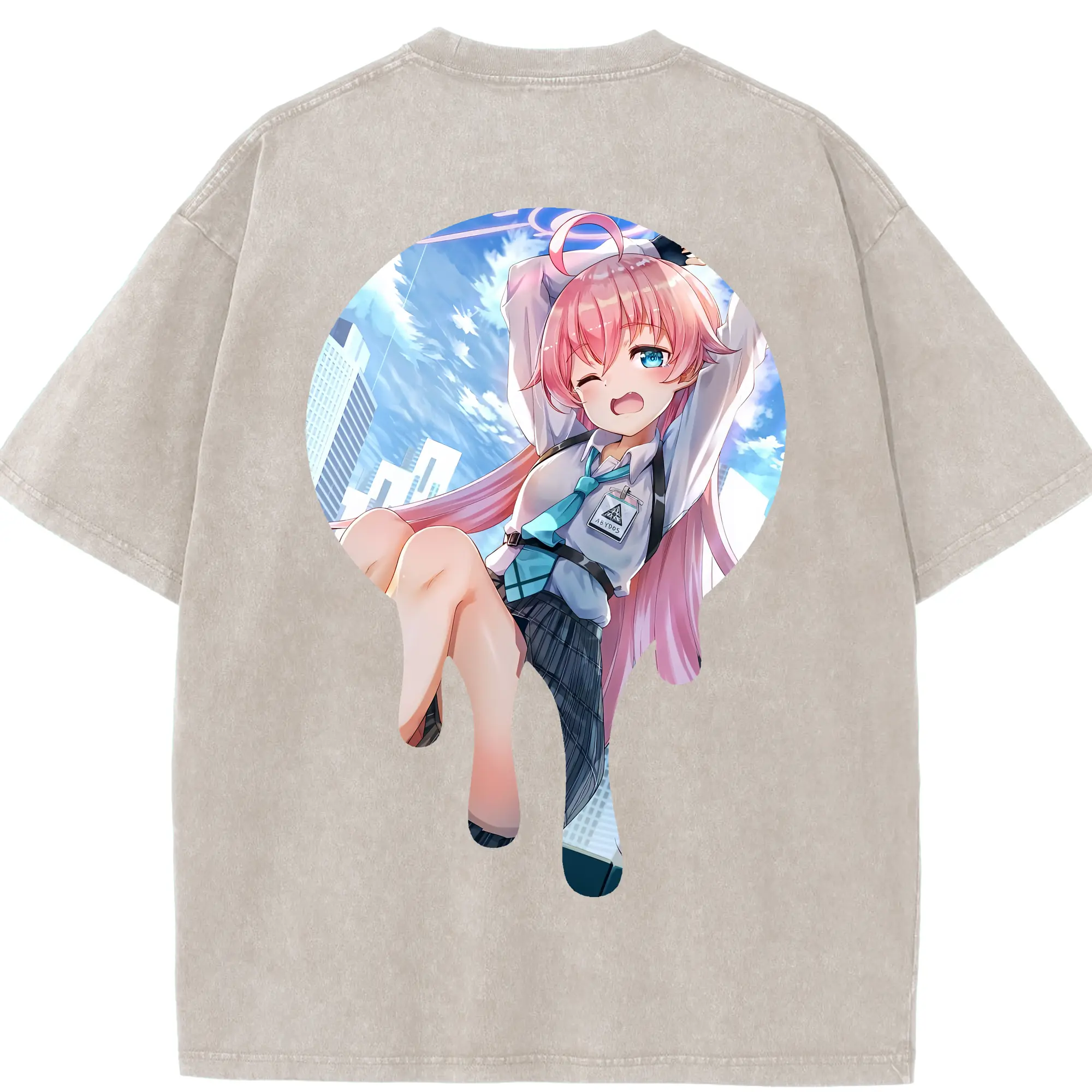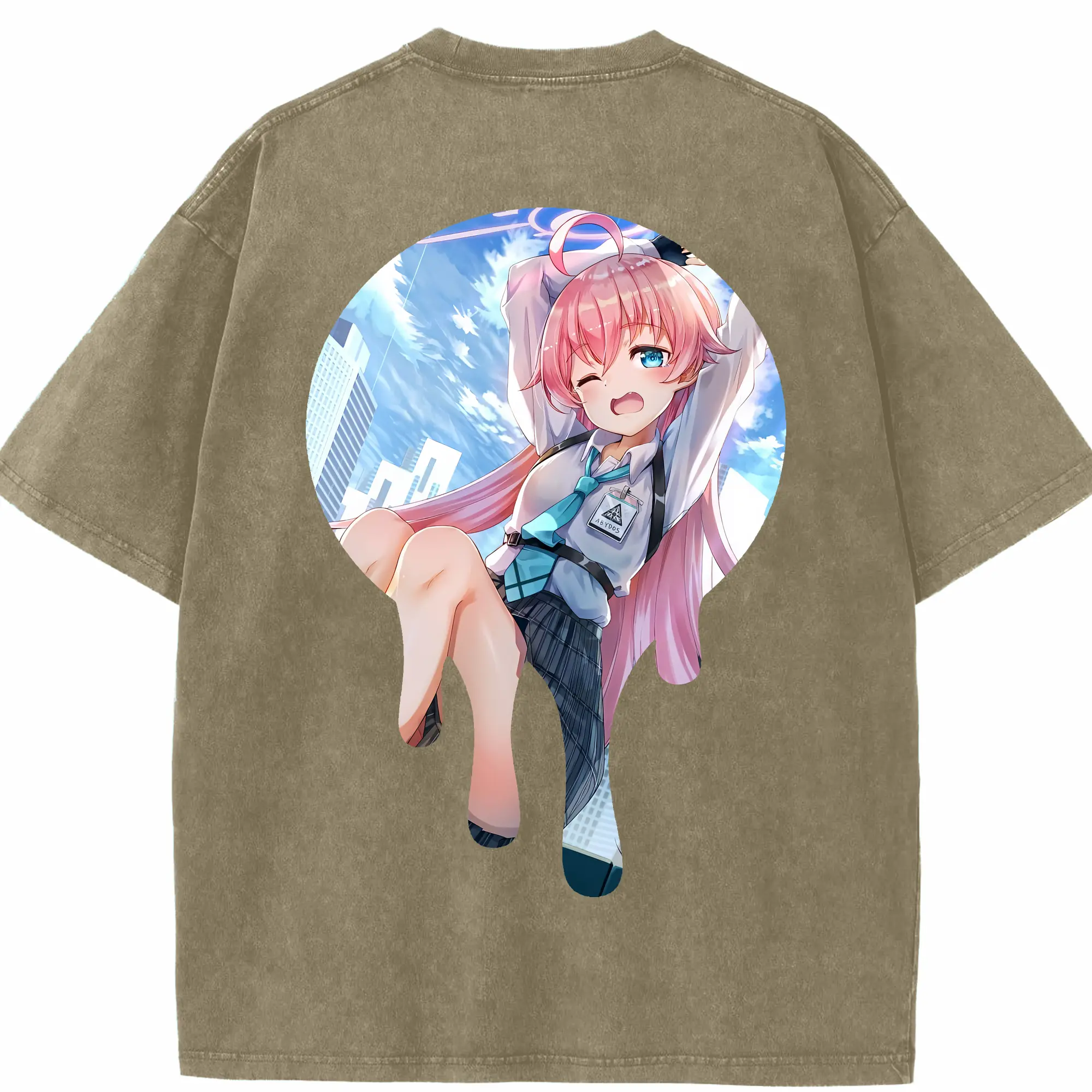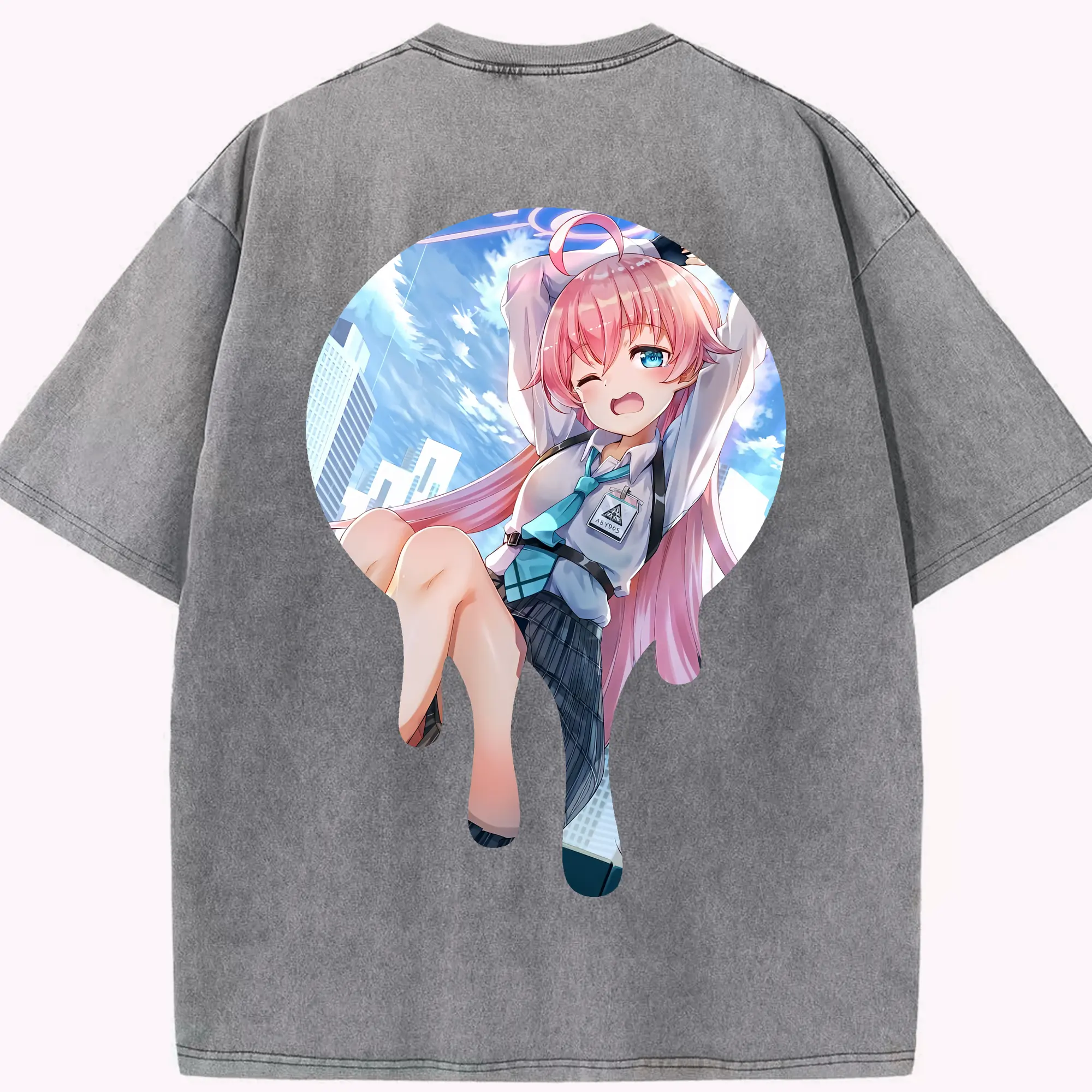 ブルーアーカイブ グッズ 小鳥遊ホシノ - 綿100% ヴィンテージ風 半袖Tシャツ ・ フロントプリント ・ 柔らか肌触り ・ 通気性 快適 ・ スポーツ カジュアル 外出用