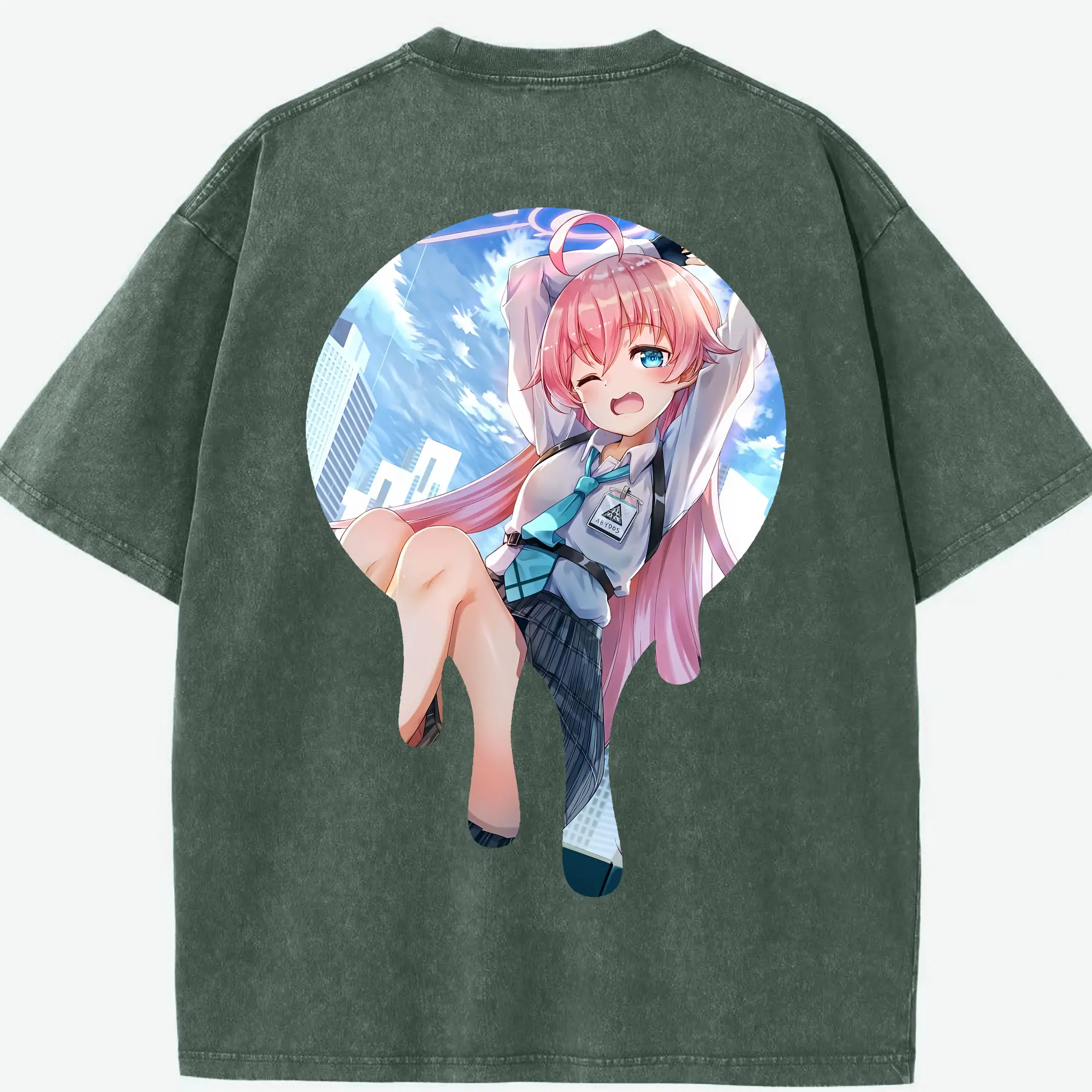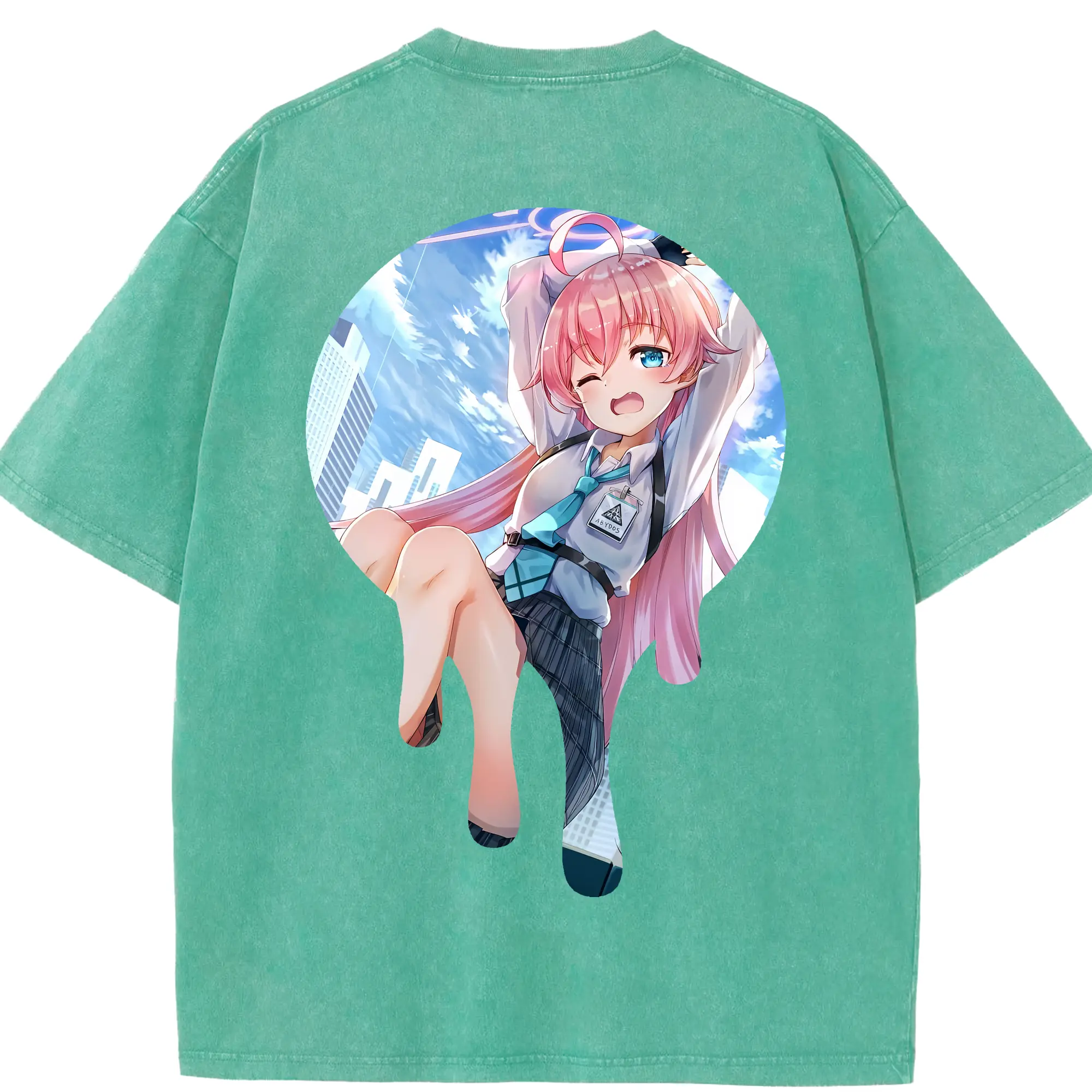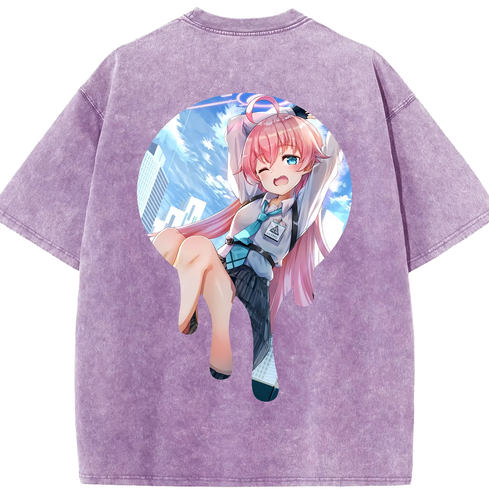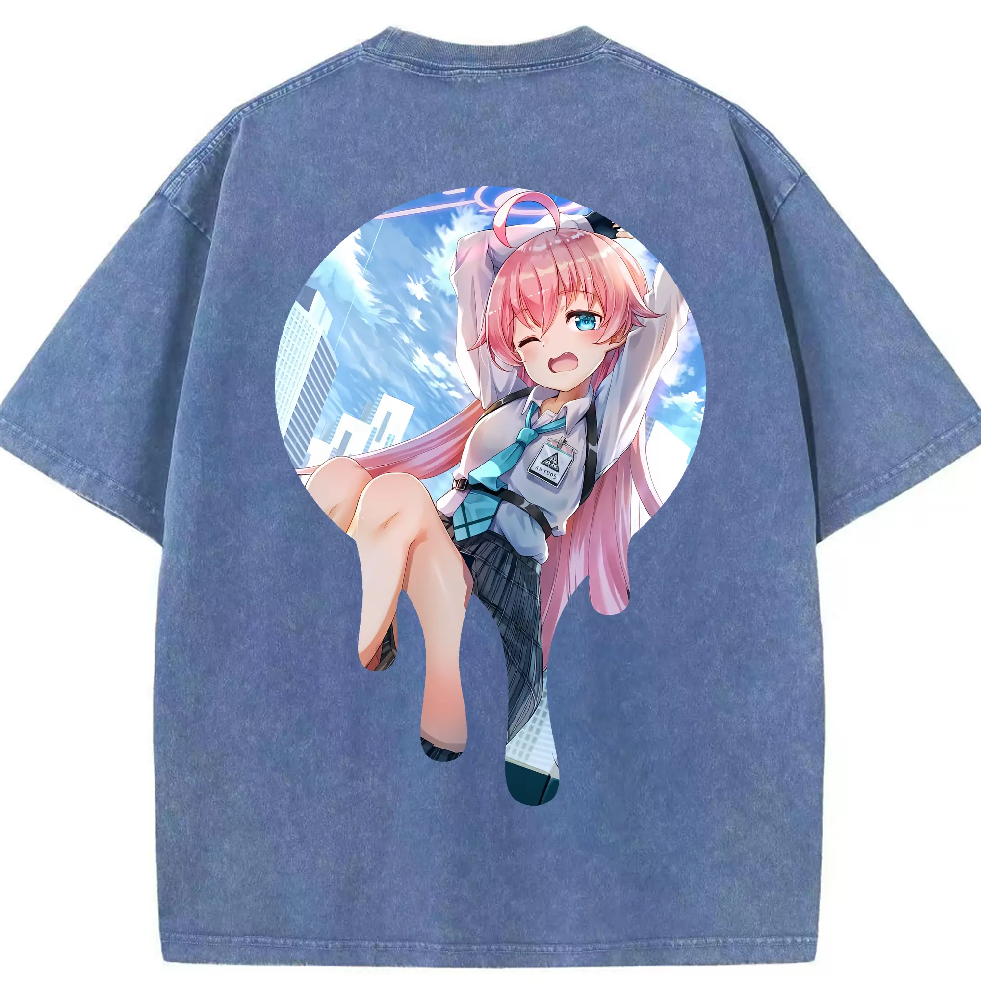 ブルーアーカイブ グッズ 小鳥遊ホシノ - 綿100% ヴィンテージ風 半袖Tシャツ ・ フロントプリント ・ 柔らか肌触り ・ 通気性 快適 ・ スポーツ カジュアル 外出用