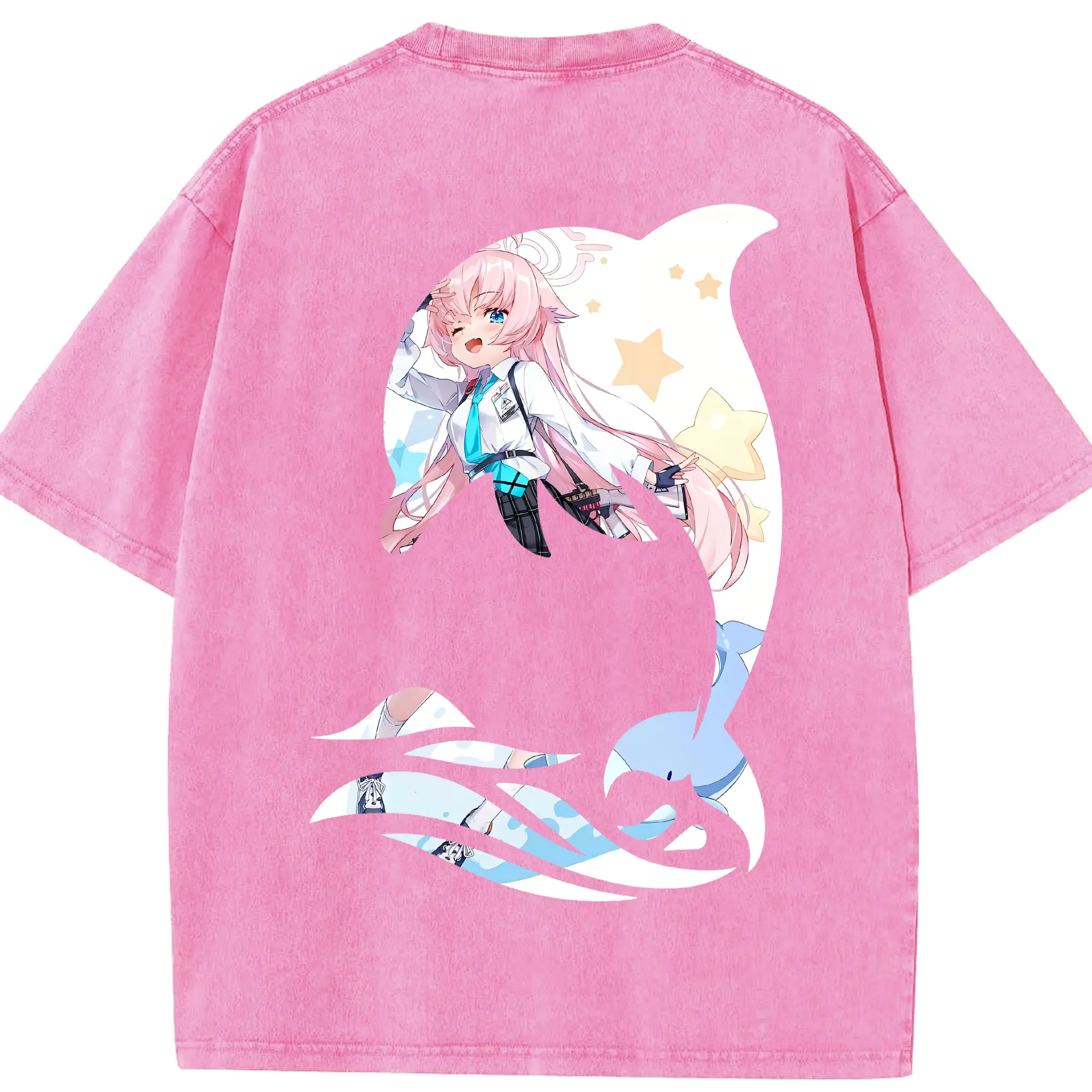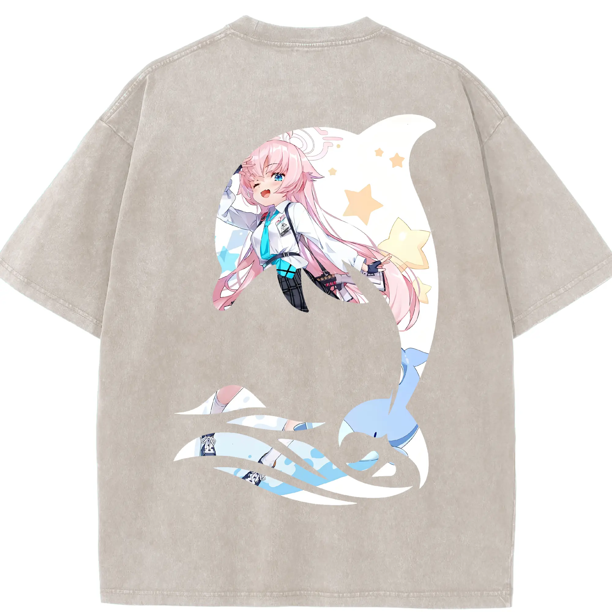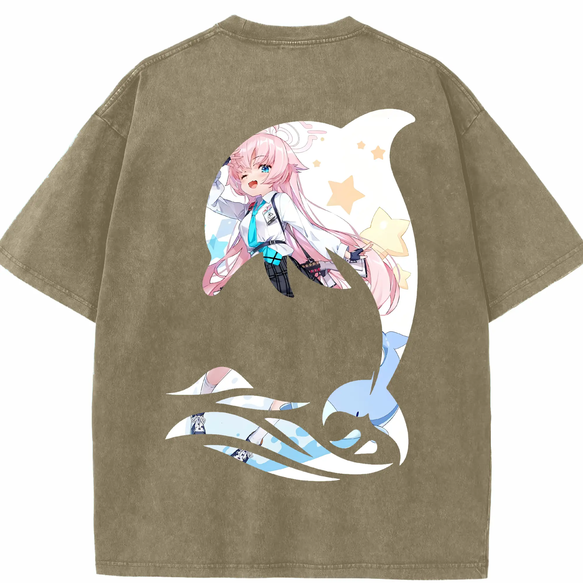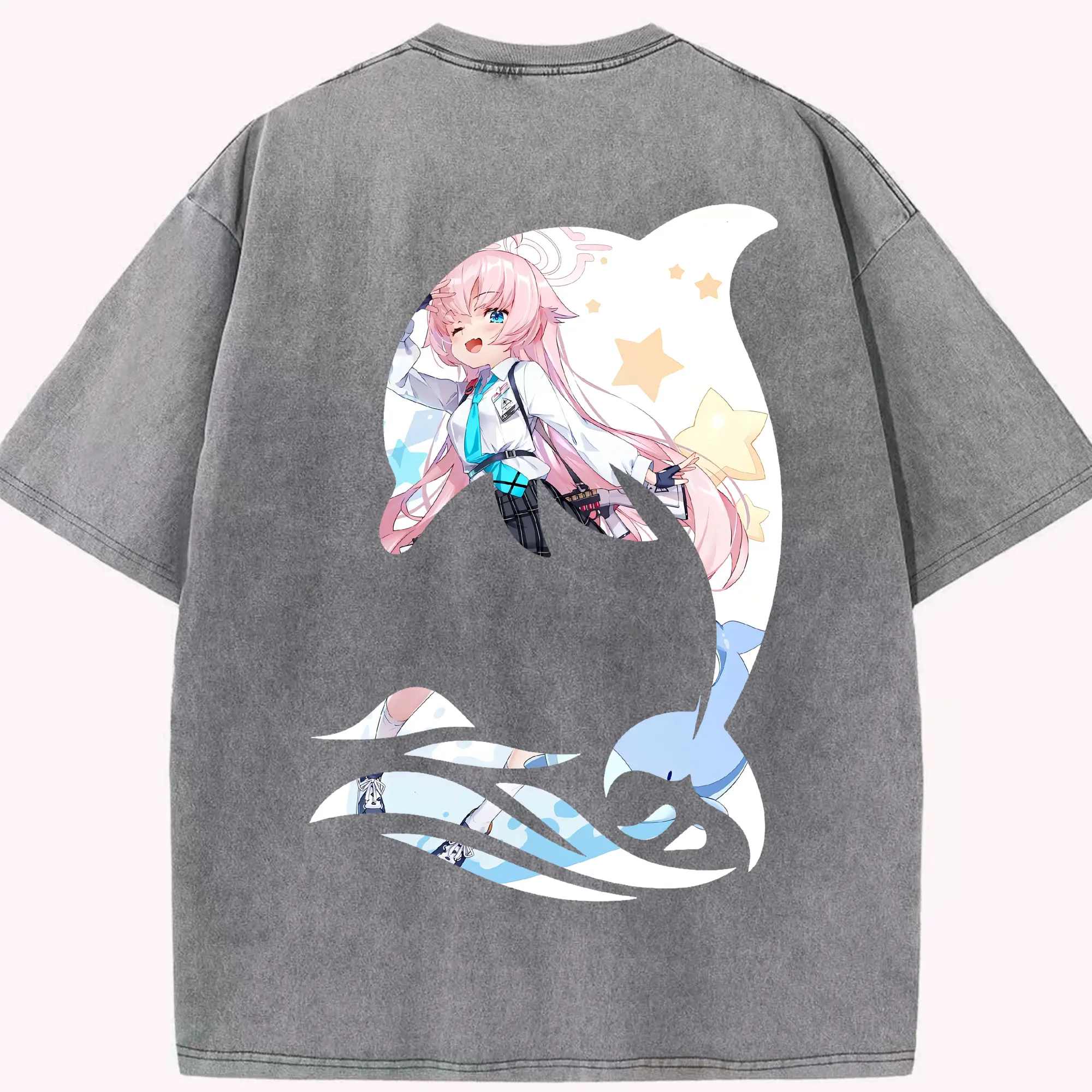 ブルーアーカイブ グッズ 小鳥遊ホシノ - 綿100% ヴィンテージ風 半袖Tシャツ ・ フロントプリント ・ 柔らか肌触り ・ 通気性 快適 ・ スポーツ カジュアル 外出用