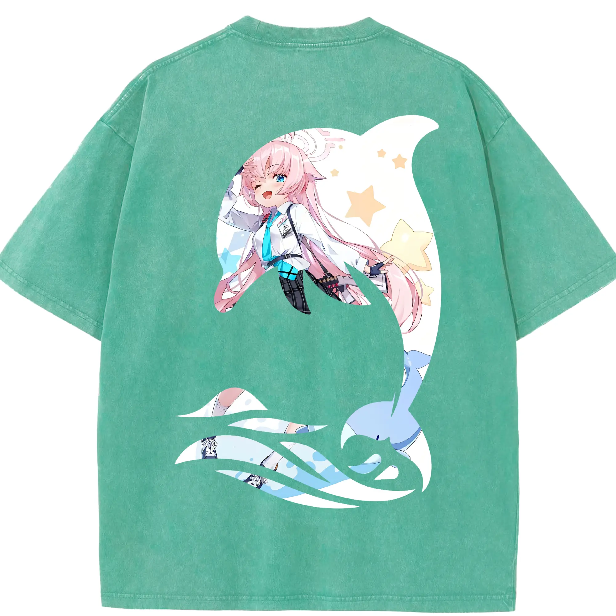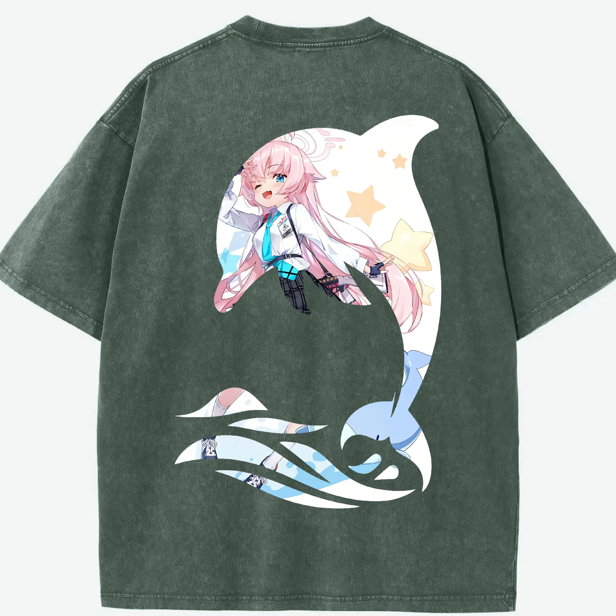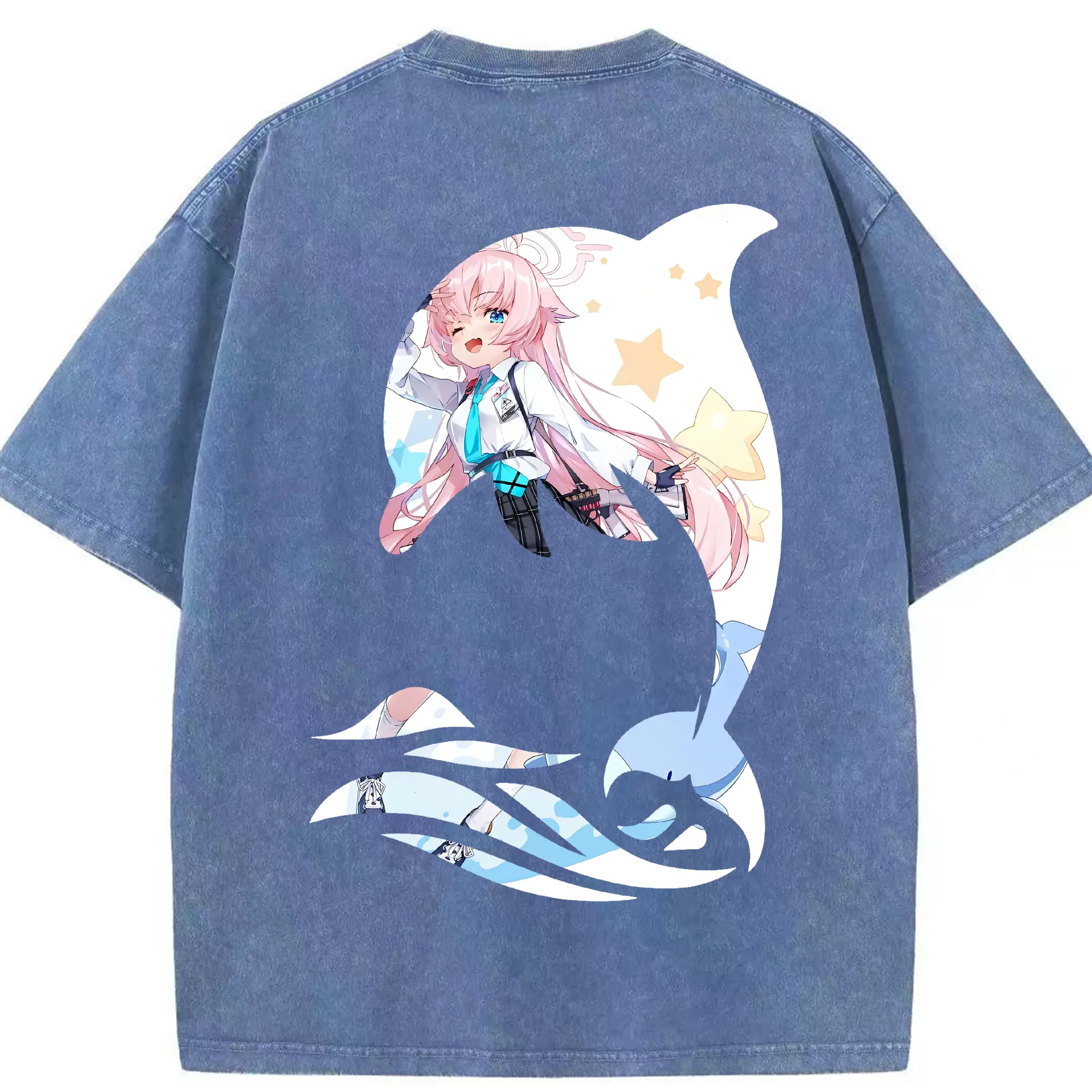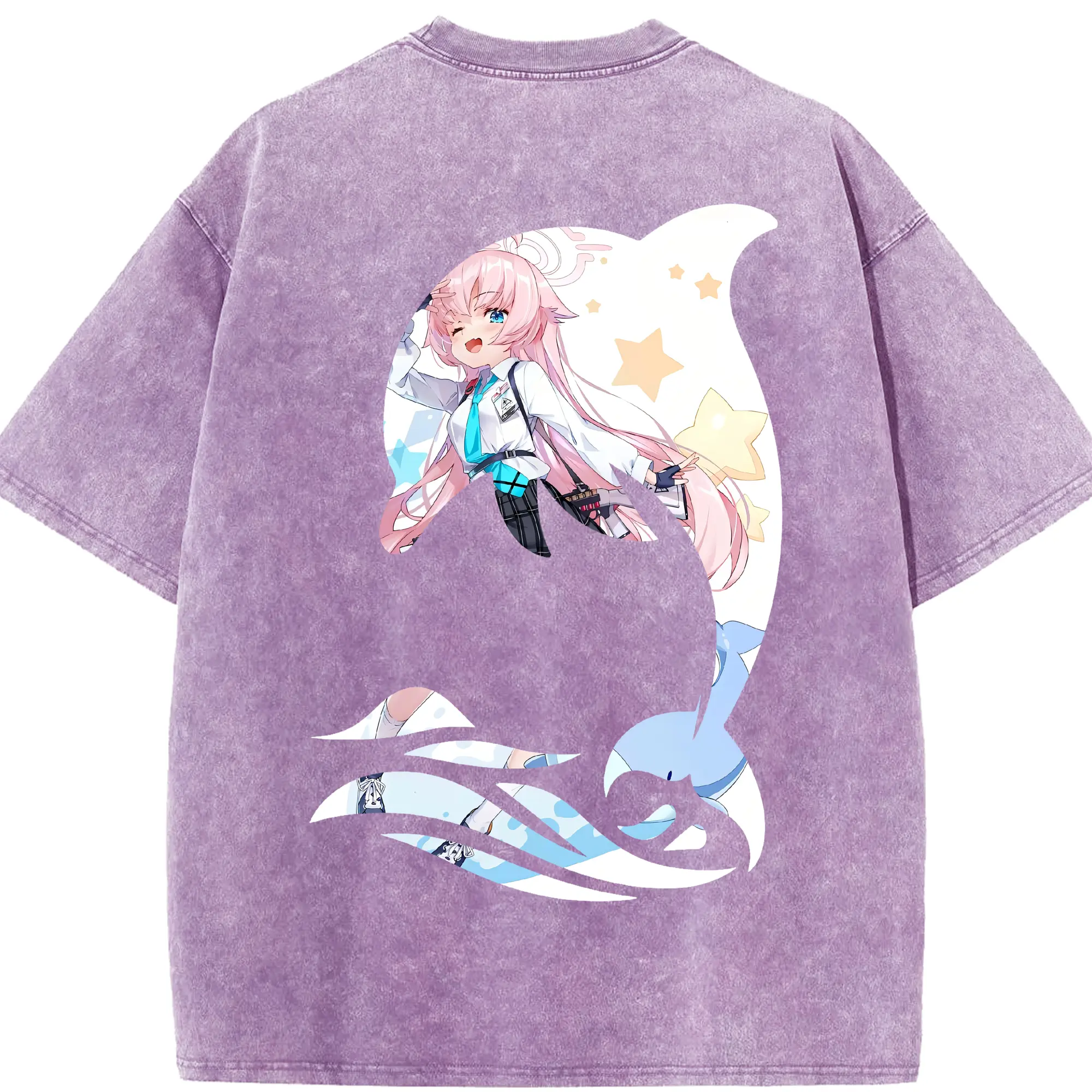 ブルーアーカイブ グッズ 小鳥遊ホシノ - 綿100% ヴィンテージ風 半袖Tシャツ ・ フロントプリント ・ 柔らか肌触り ・ 通気性 快適 ・ スポーツ カジュアル 外出用