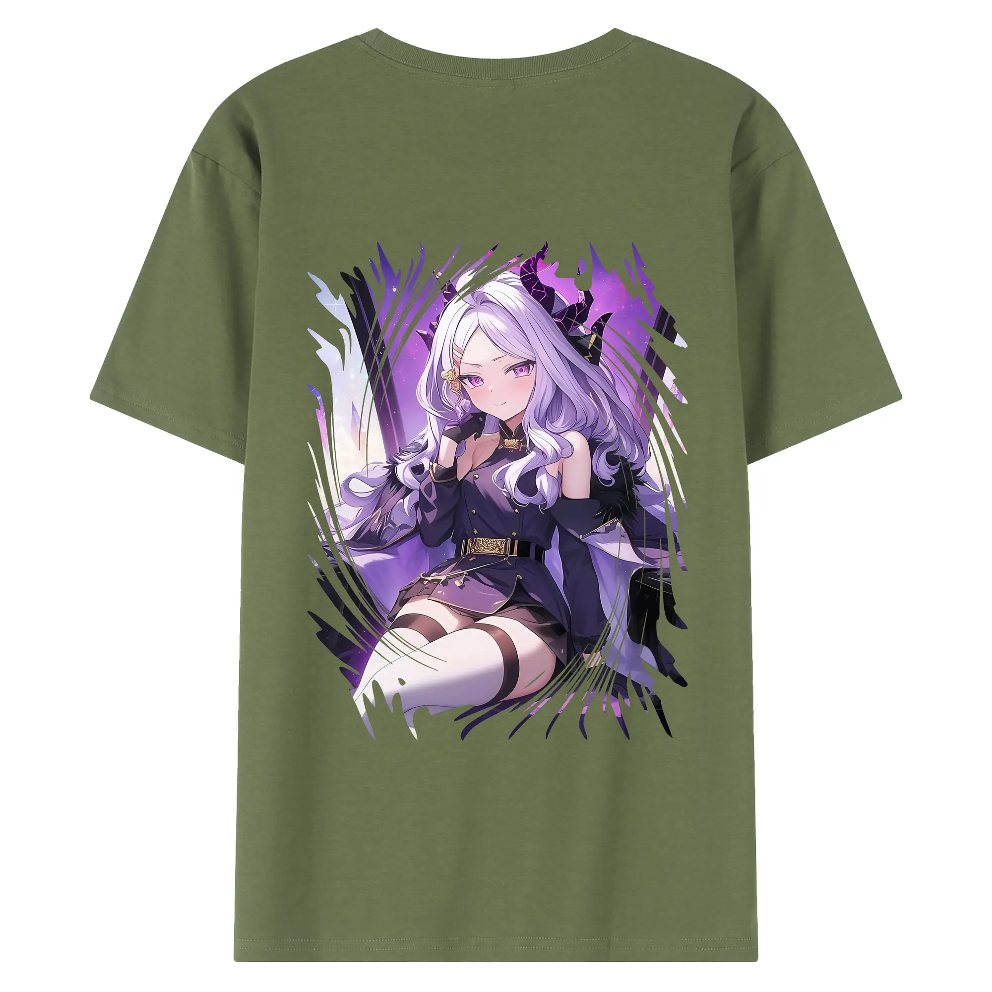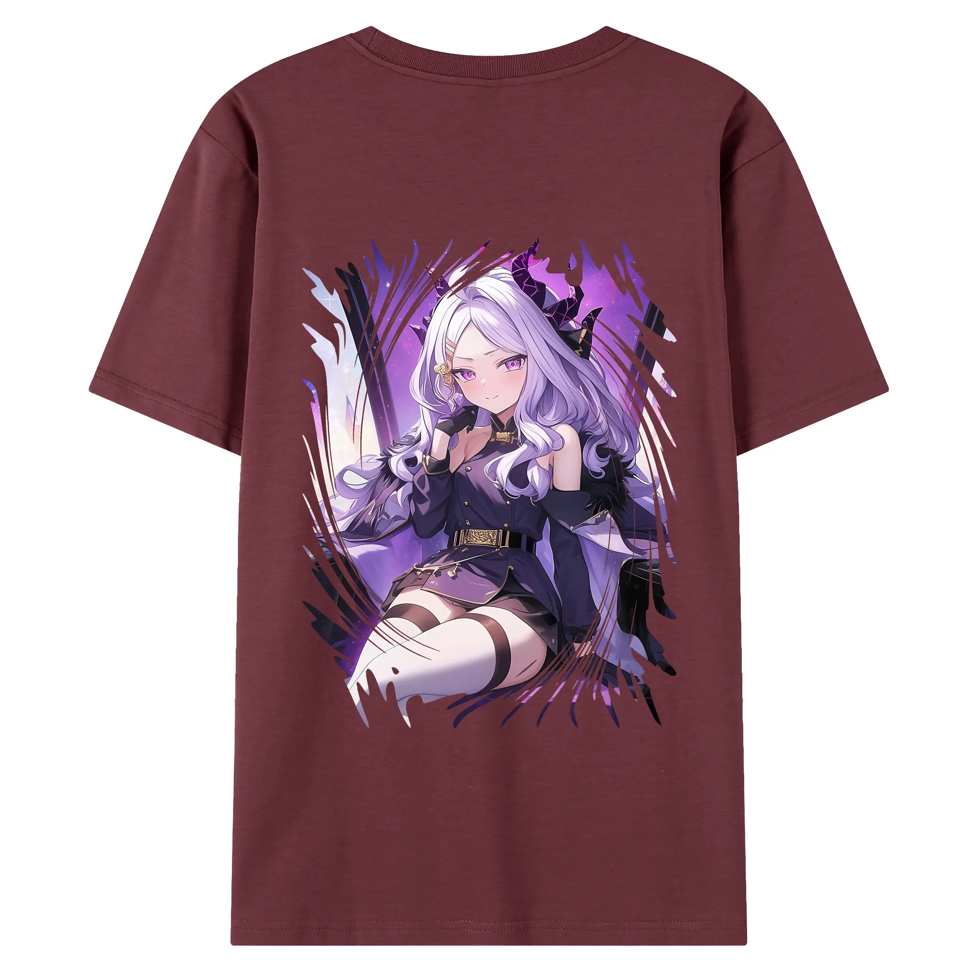 ブルーアーカイブ グッズ 空崎ヒナ - 綿100% ヴィンテージ風 半袖Tシャツ ・ 背面プリント ・ 柔らか肌触り ・ 通気性 快適 ・ スポーツ カジュアル 外出用
