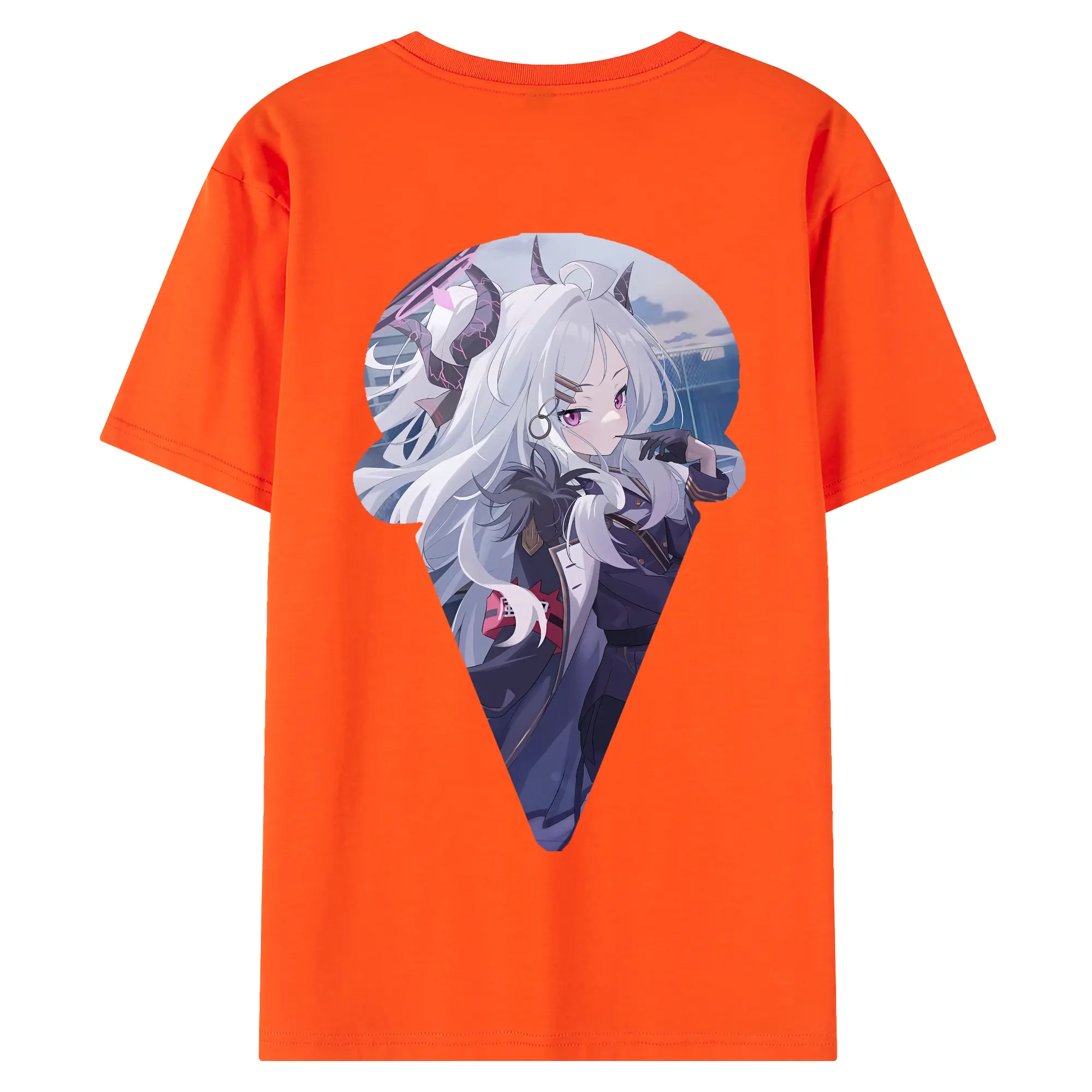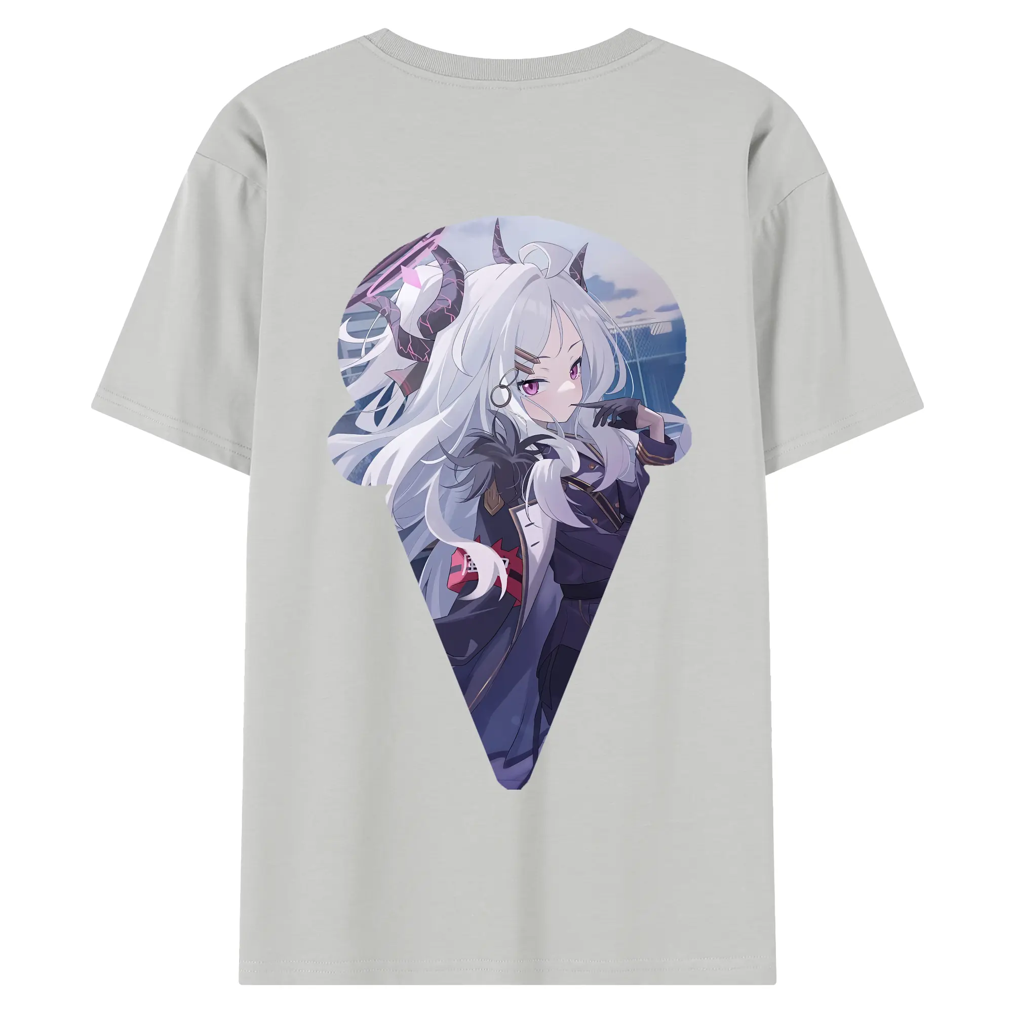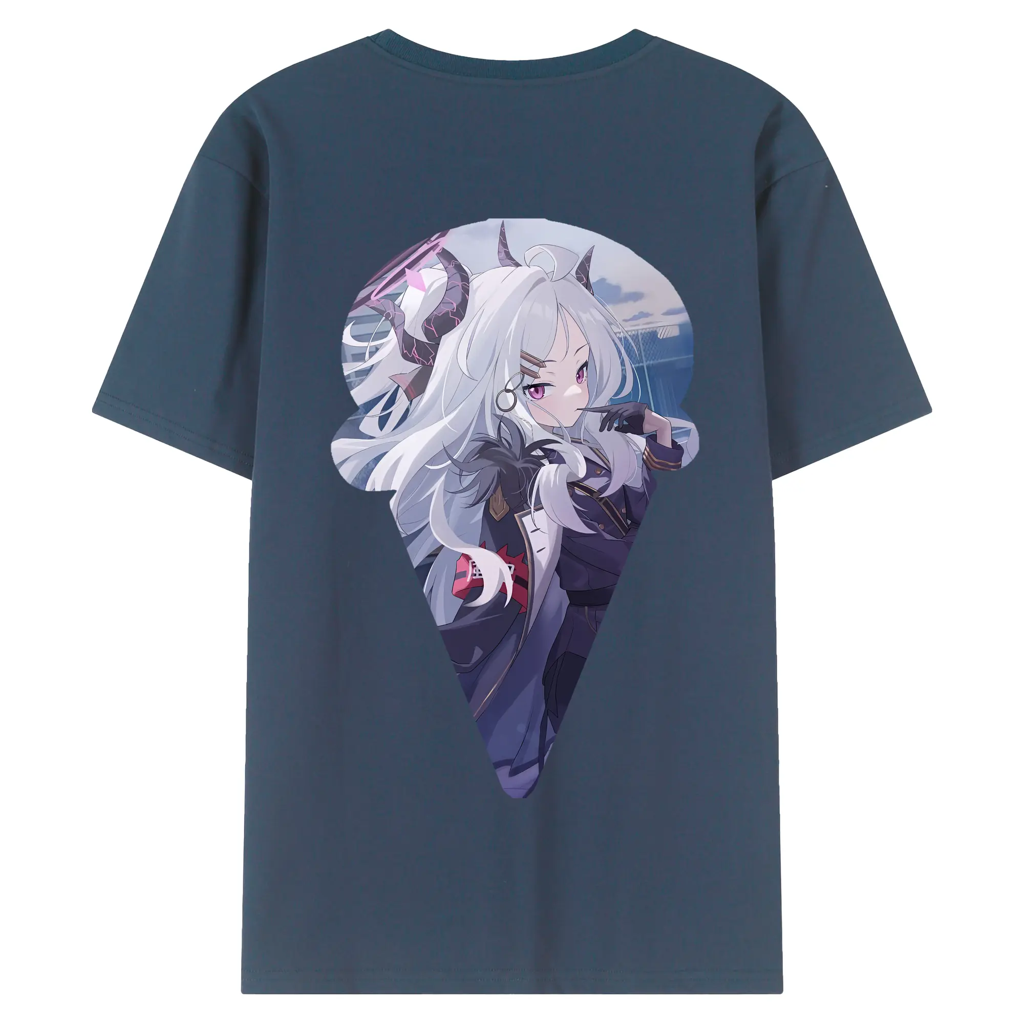 ブルーアーカイブ グッズ 空崎ヒナ - 綿100% ヴィンテージ風 半袖Tシャツ ・ 背面プリント ・ 柔らか肌触り ・ 通気性 快適 ・ スポーツ カジュアル 外出用