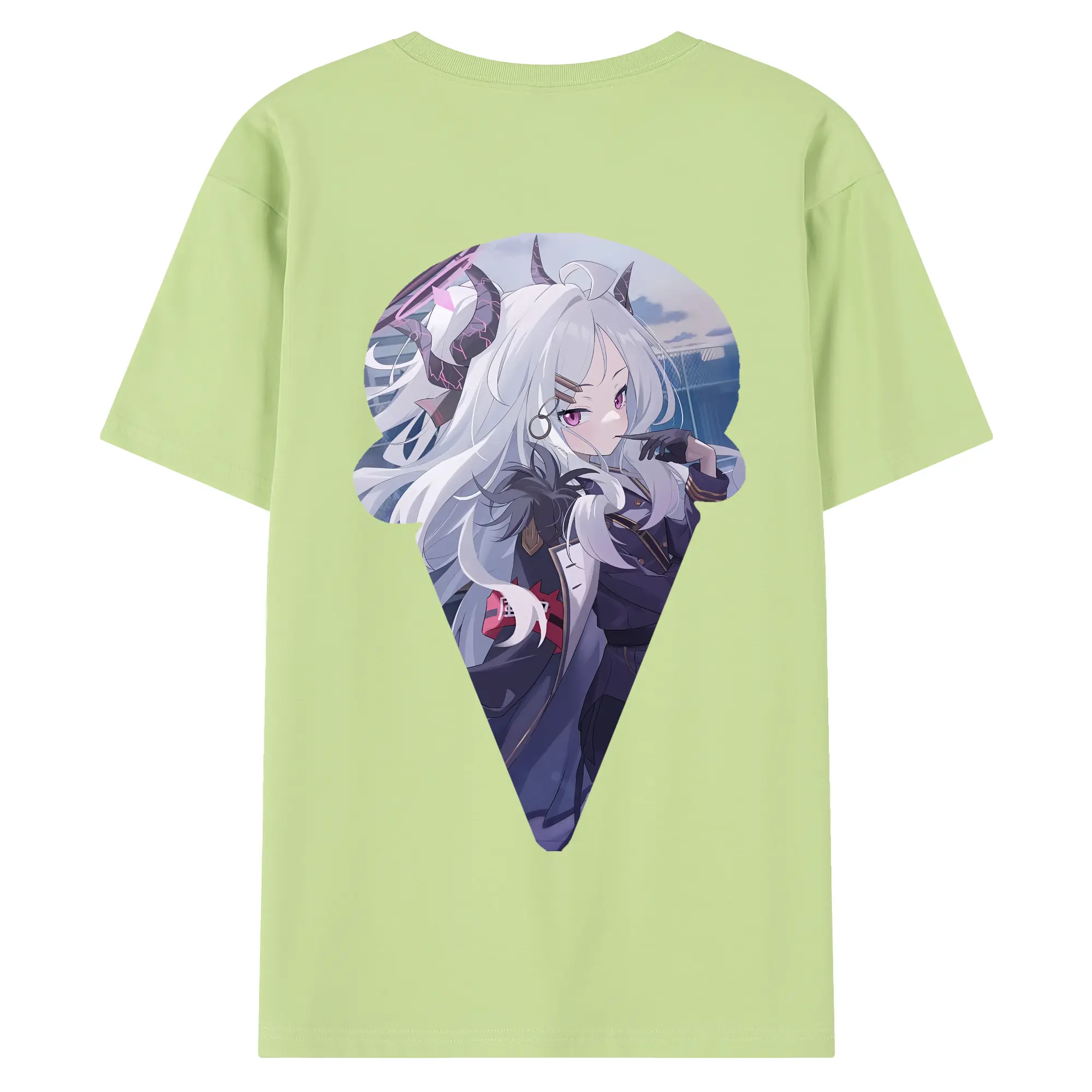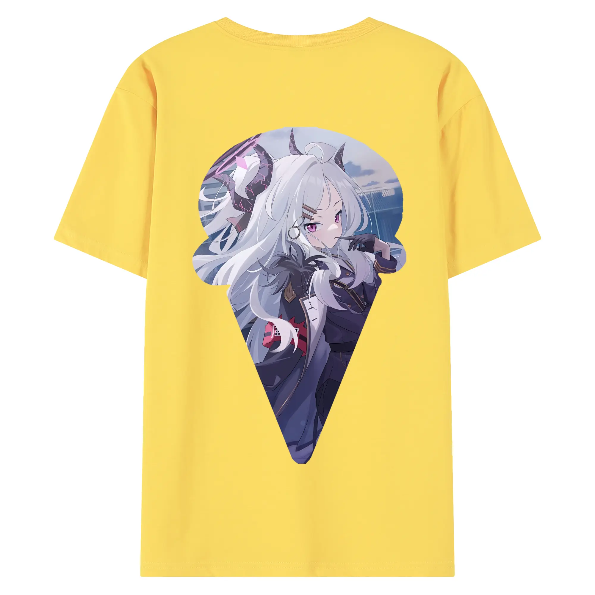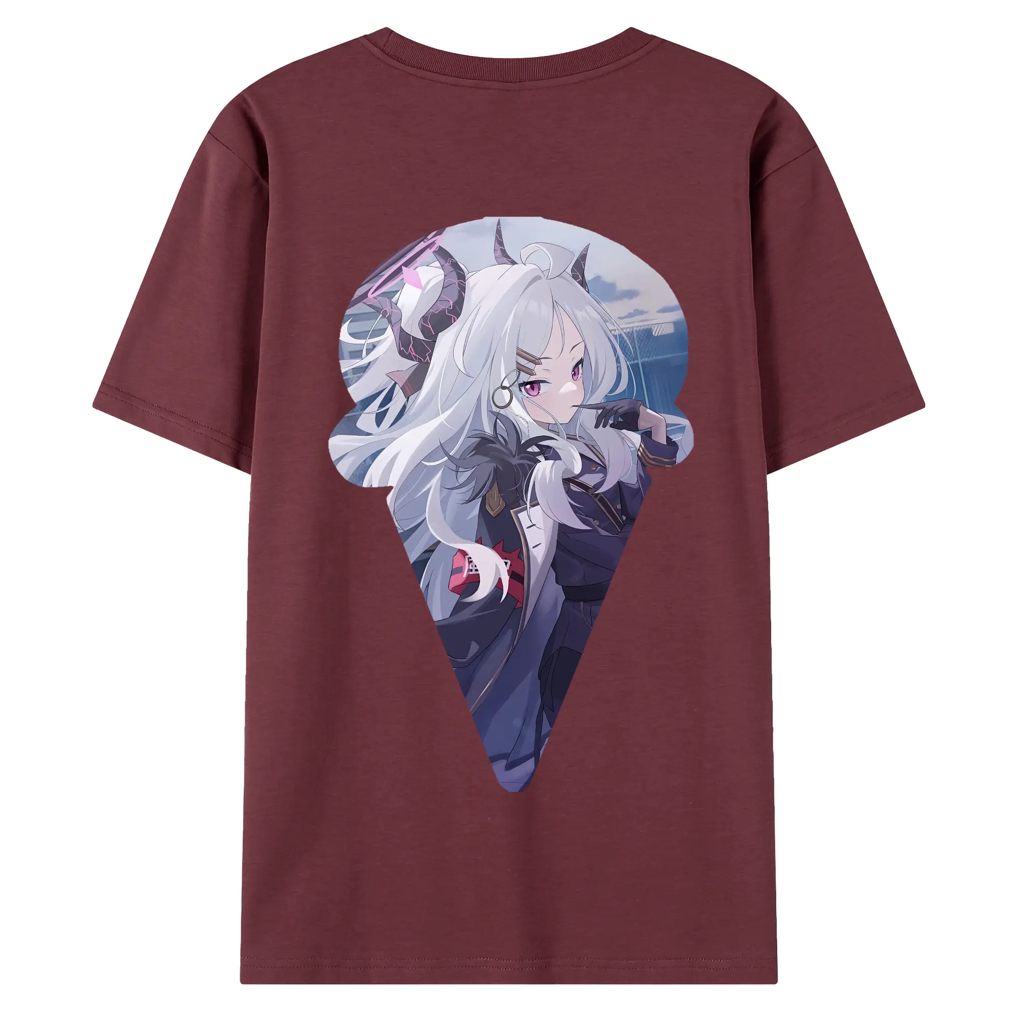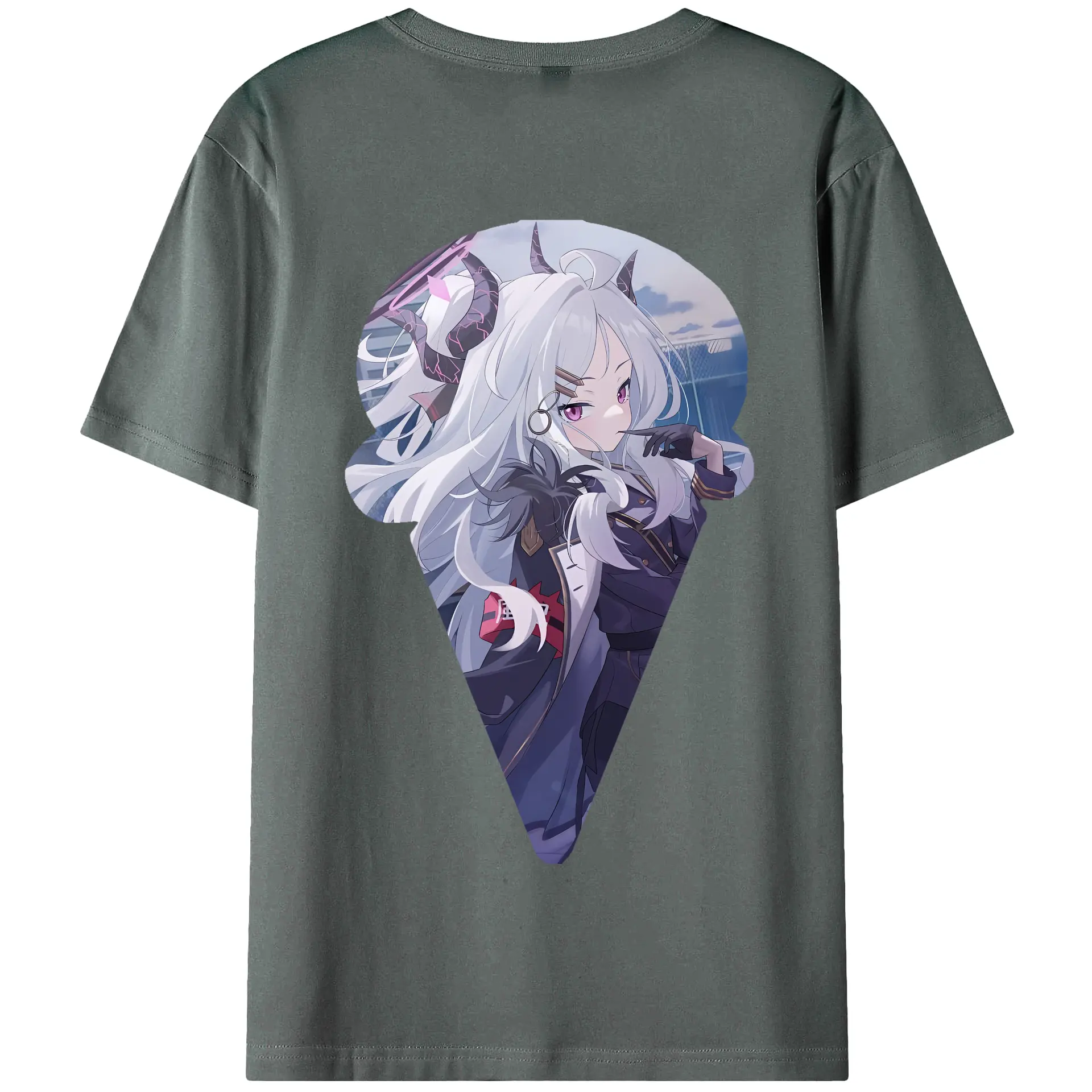 ブルーアーカイブ グッズ 空崎ヒナ - 綿100% ヴィンテージ風 半袖Tシャツ ・ 背面プリント ・ 柔らか肌触り ・ 通気性 快適 ・ スポーツ カジュアル 外出用