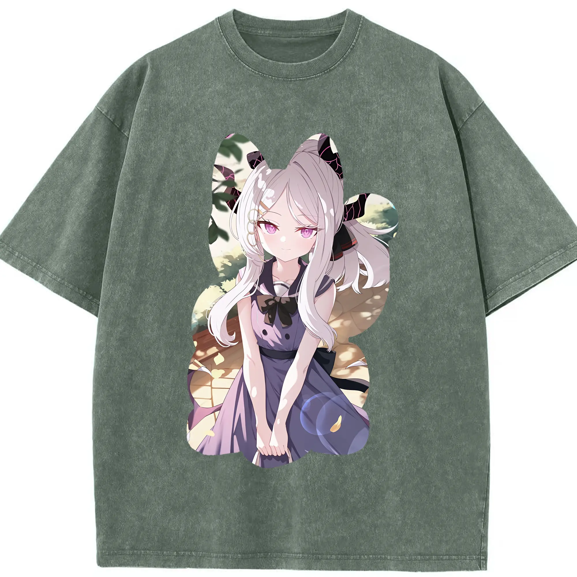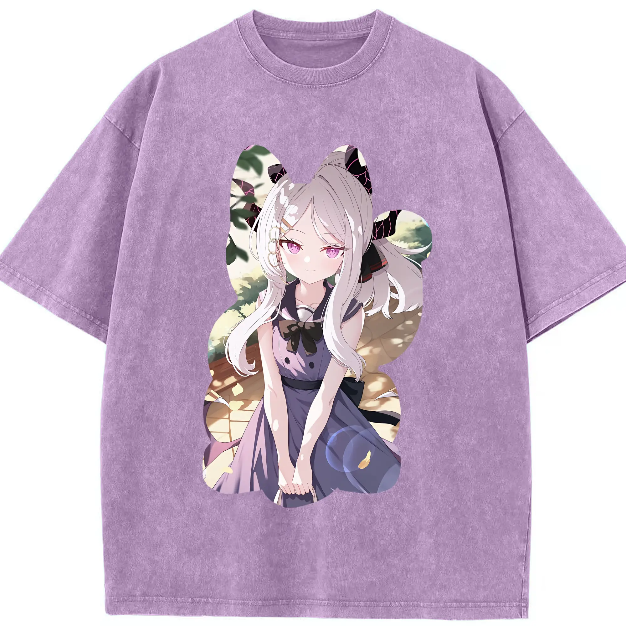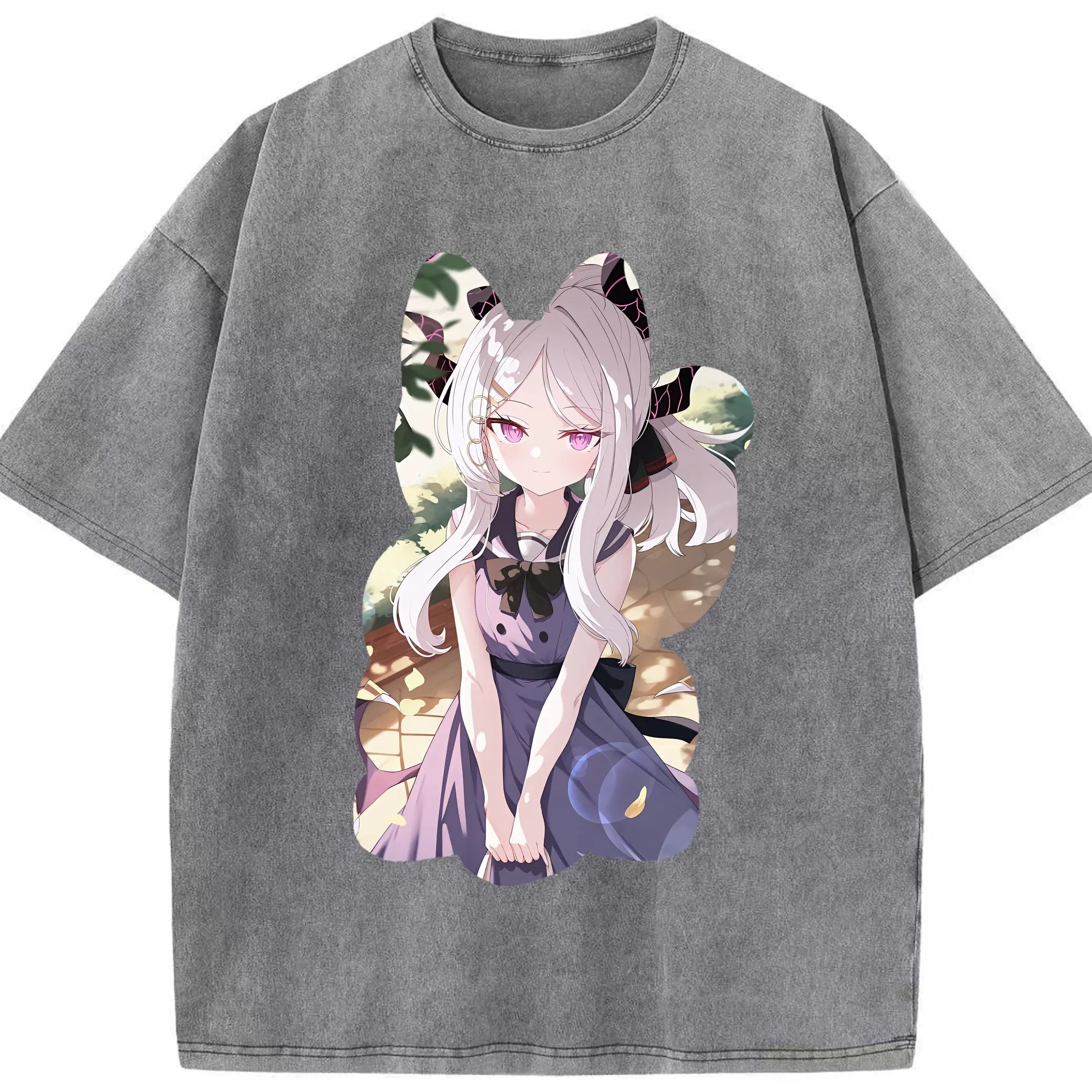 ブルーアーカイブ グッズ 空崎ヒナ - 綿100% ヴィンテージ風 半袖Tシャツ ・ 背面プリント ・ 柔らか肌触り ・ 通気性 快適 ・ スポーツ カジュアル 外出用