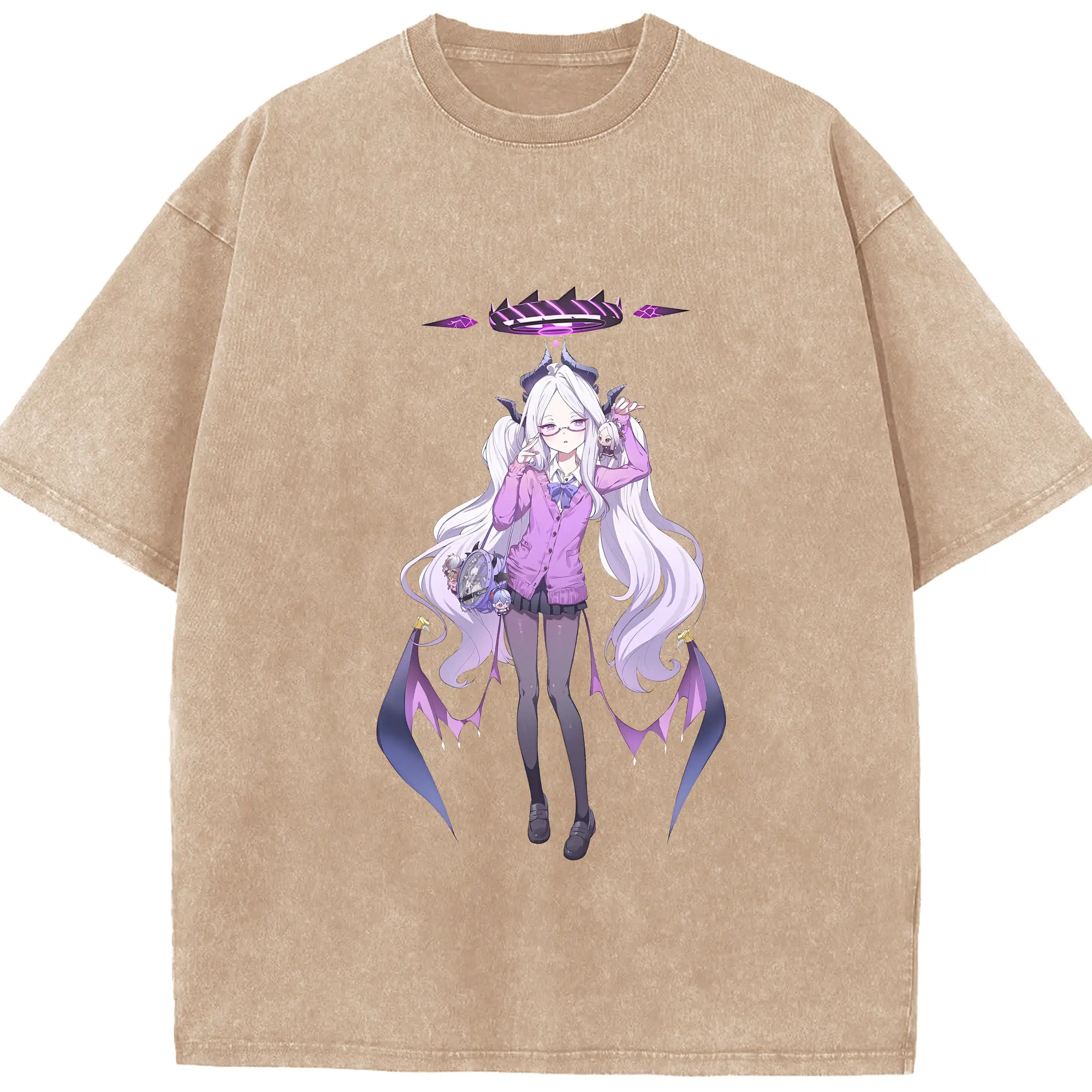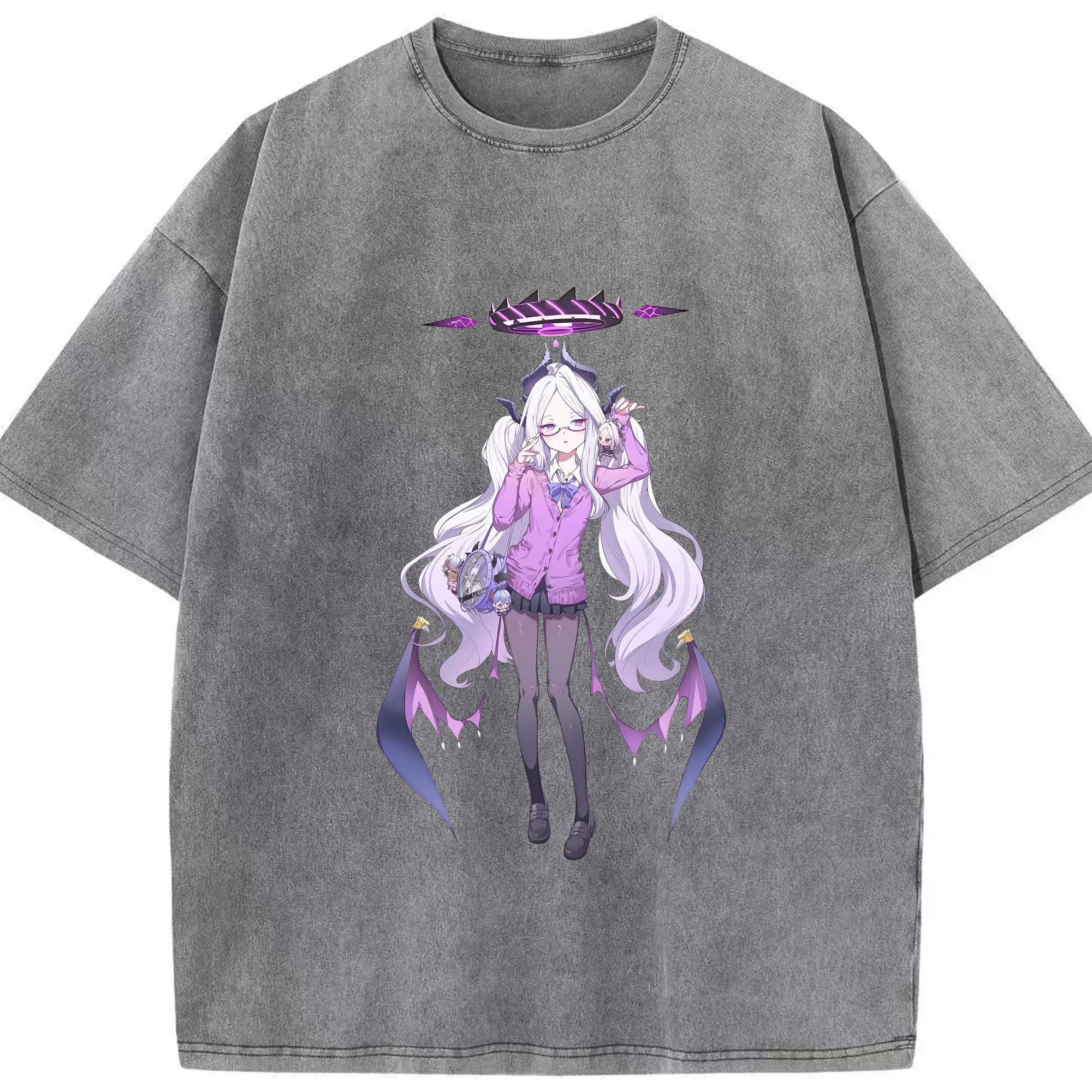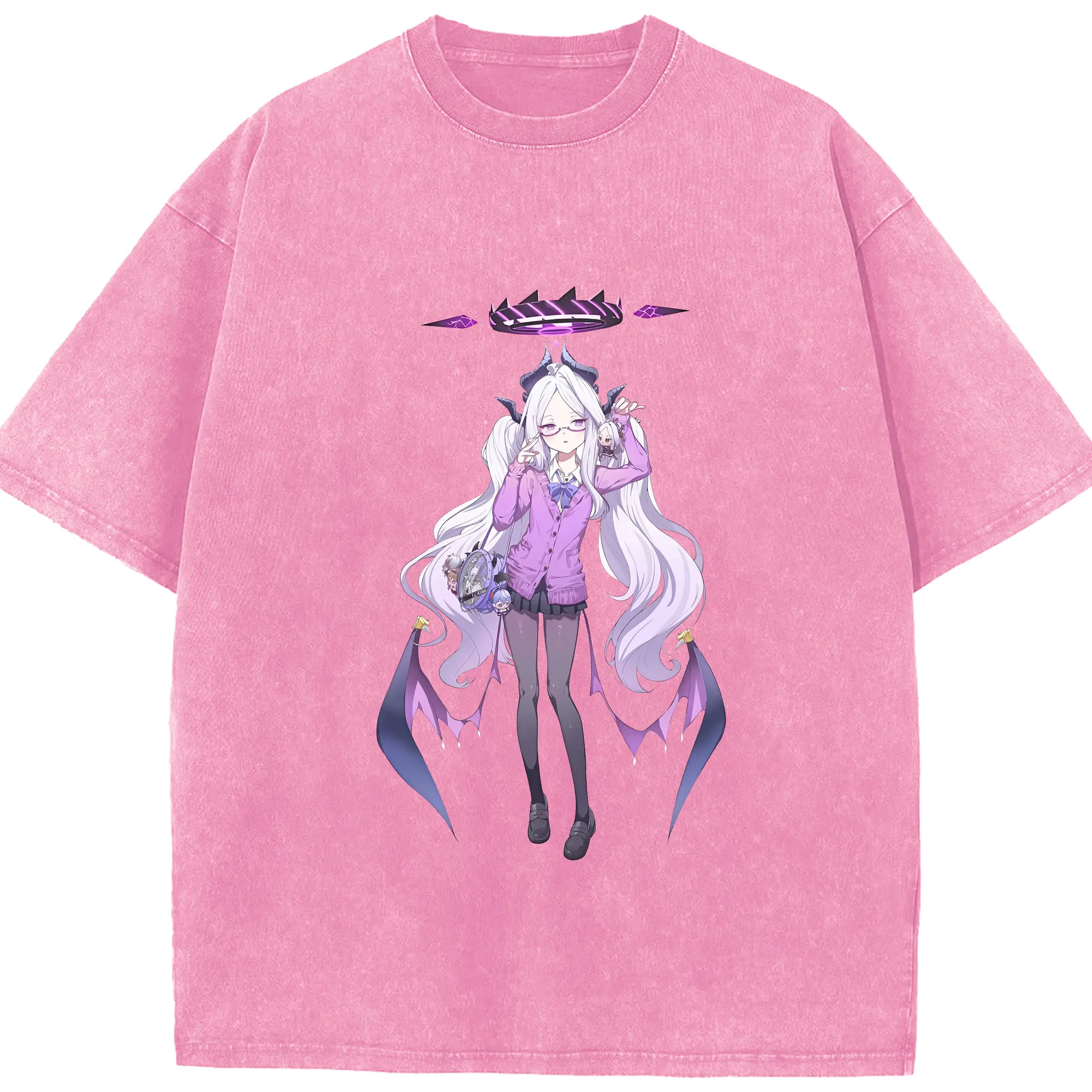 ブルーアーカイブ グッズ 空崎ヒナ - 綿100% ヴィンテージ風 半袖Tシャツ ・ 背面プリント ・ 柔らか肌触り ・ 通気性 快適 ・ スポーツ カジュアル 外出用