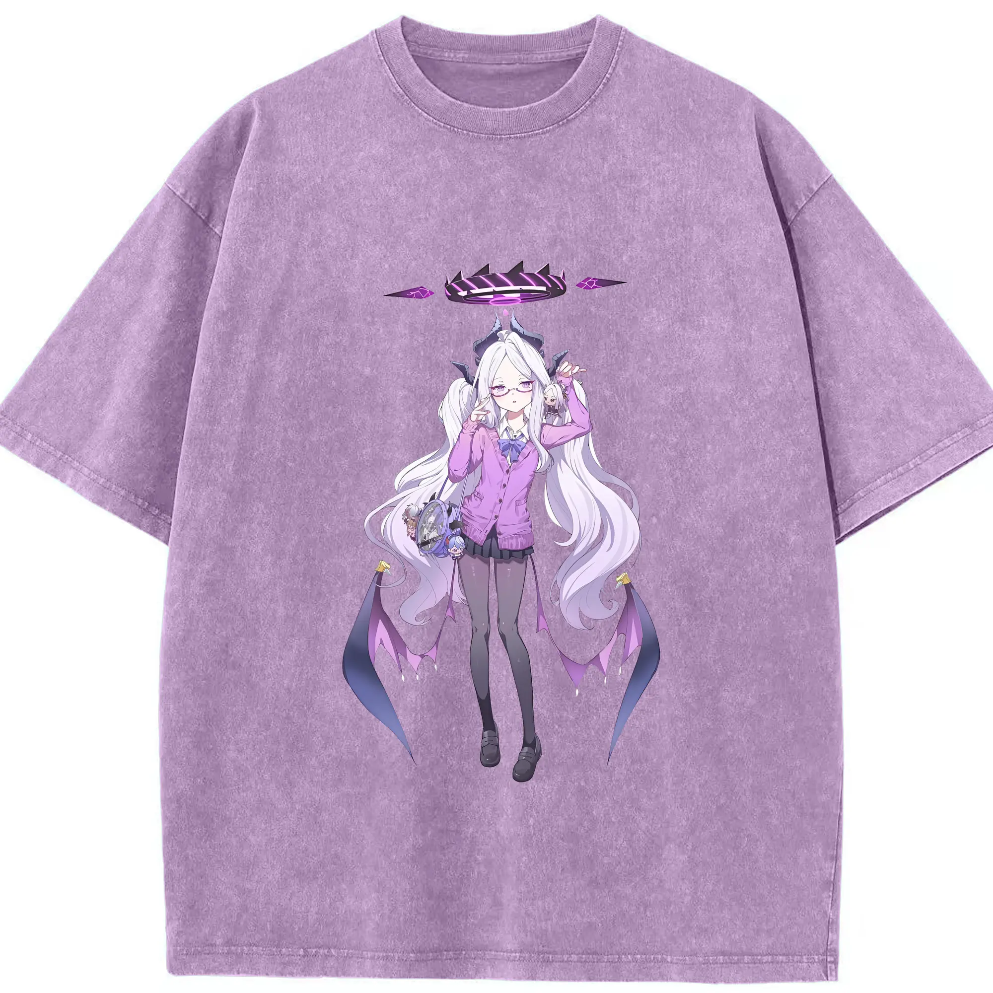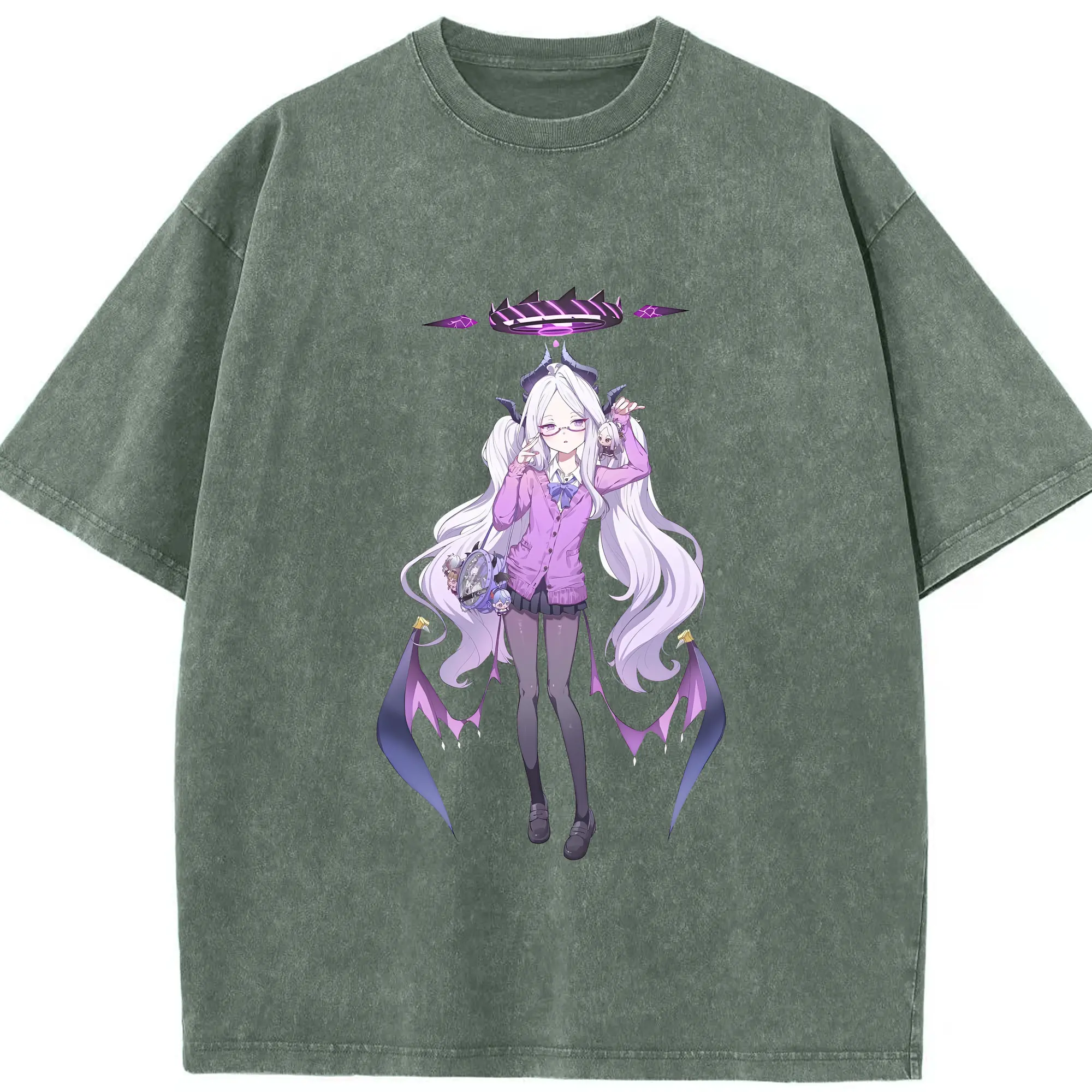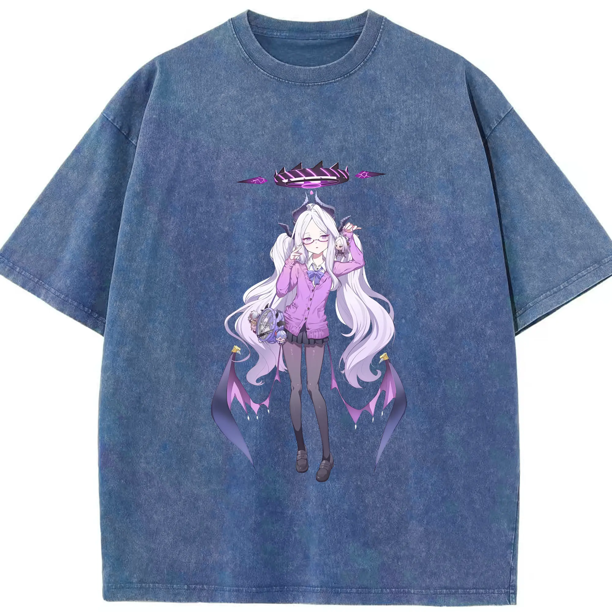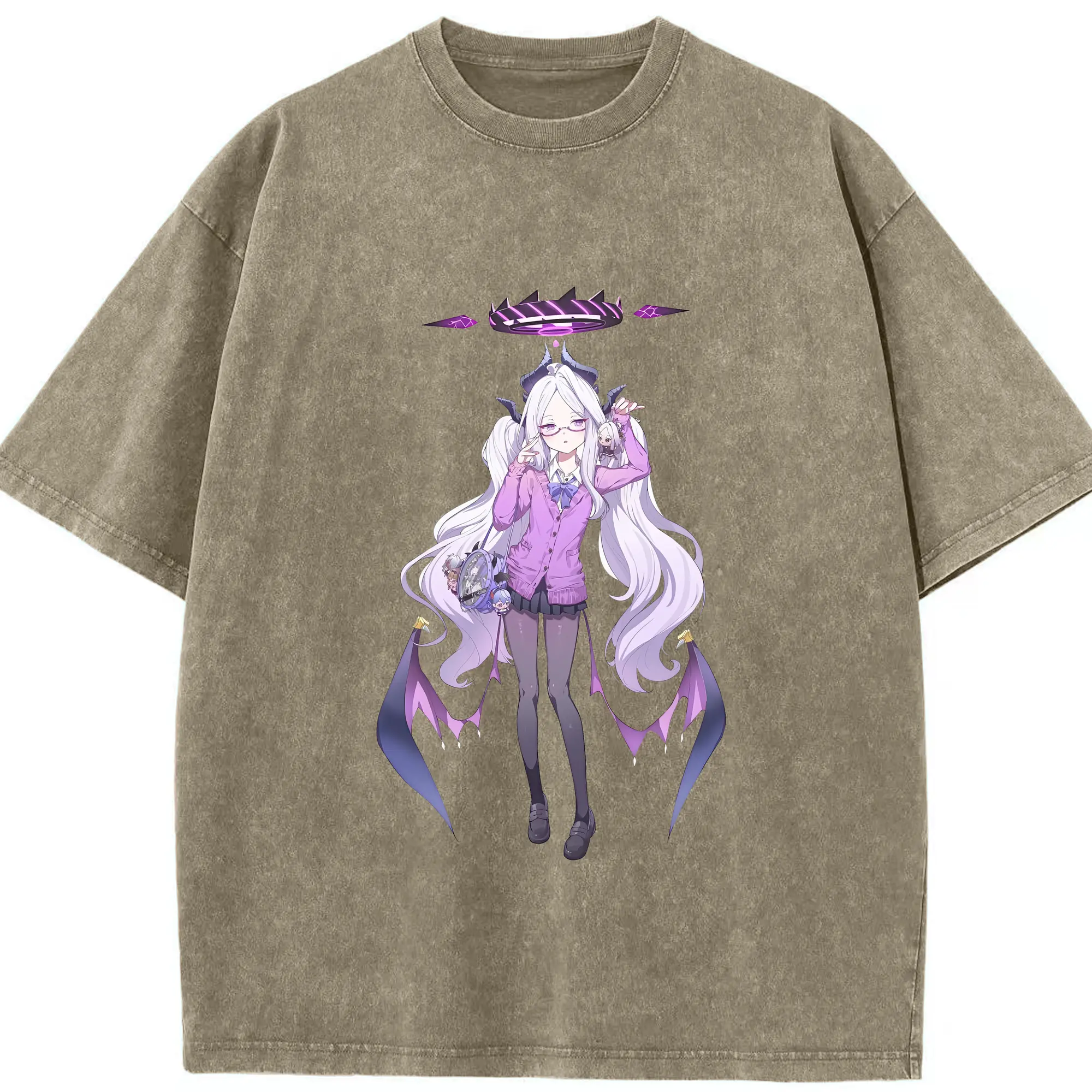 ブルーアーカイブ グッズ 空崎ヒナ - 綿100% ヴィンテージ風 半袖Tシャツ ・ 背面プリント ・ 柔らか肌触り ・ 通気性 快適 ・ スポーツ カジュアル 外出用