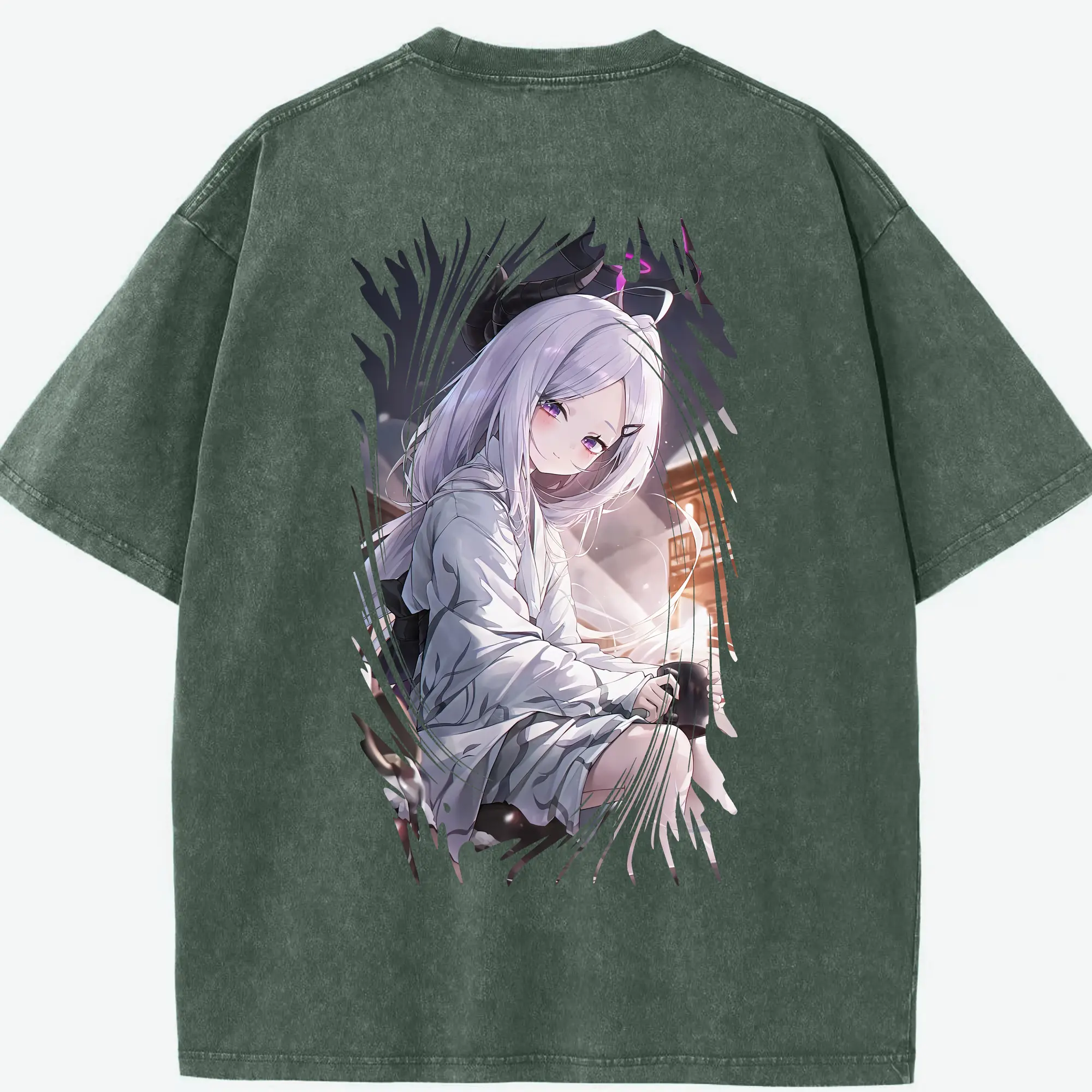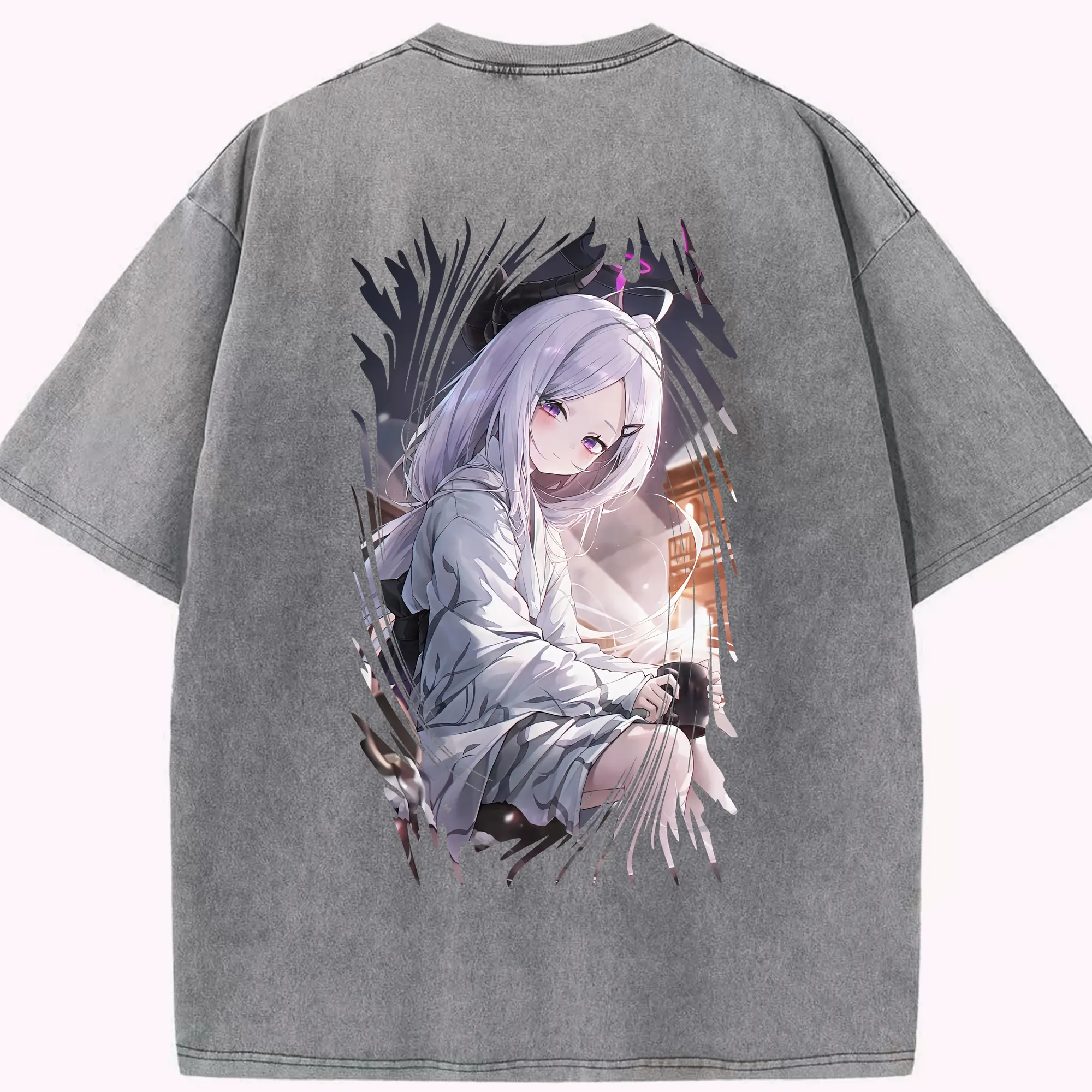 ブルーアーカイブ グッズ 空崎ヒナ - 綿100% ヴィンテージ風 半袖Tシャツ ・ フロントプリント ・ 柔らか肌触り ・ 通気性 快適 ・ スポーツ カジュアル 外出用