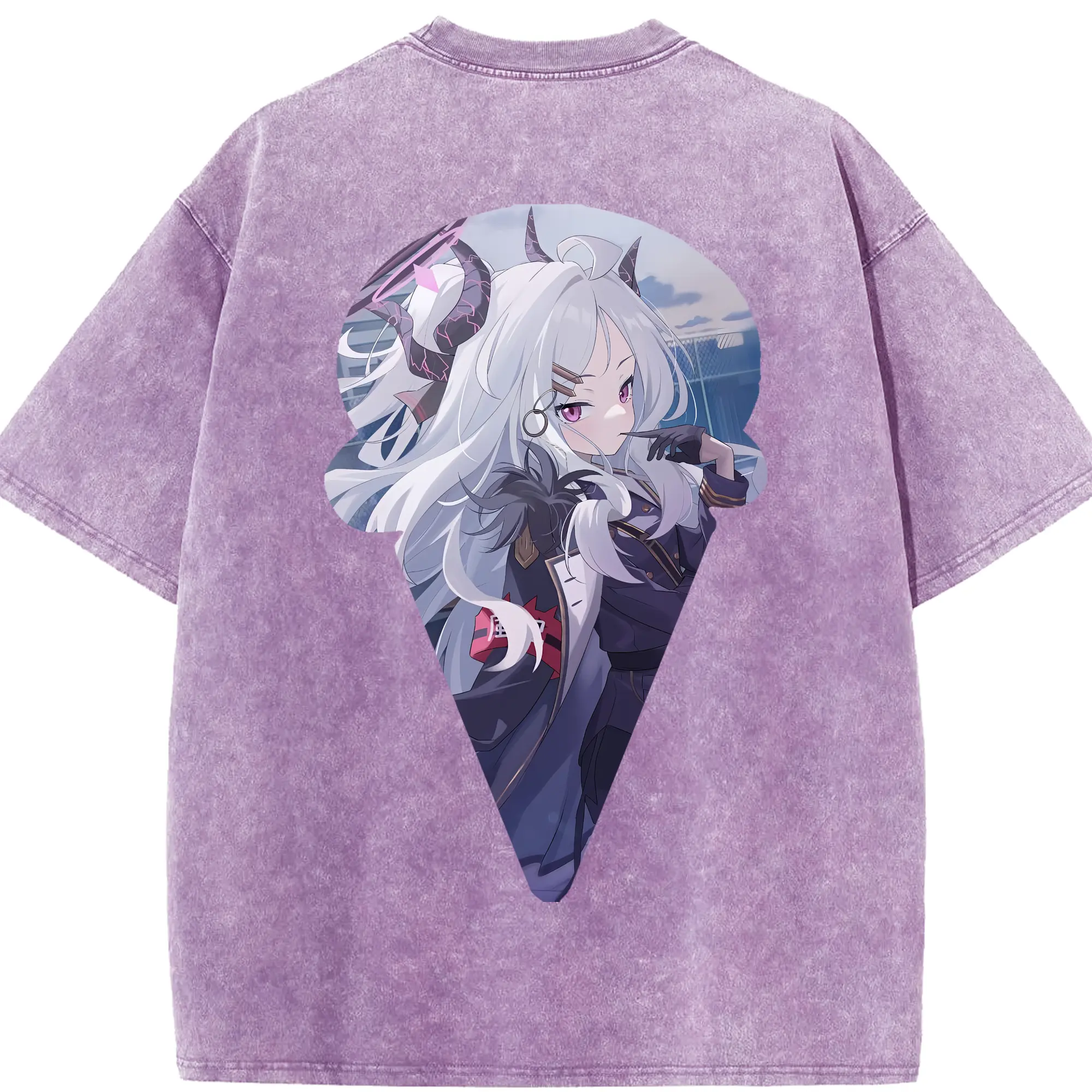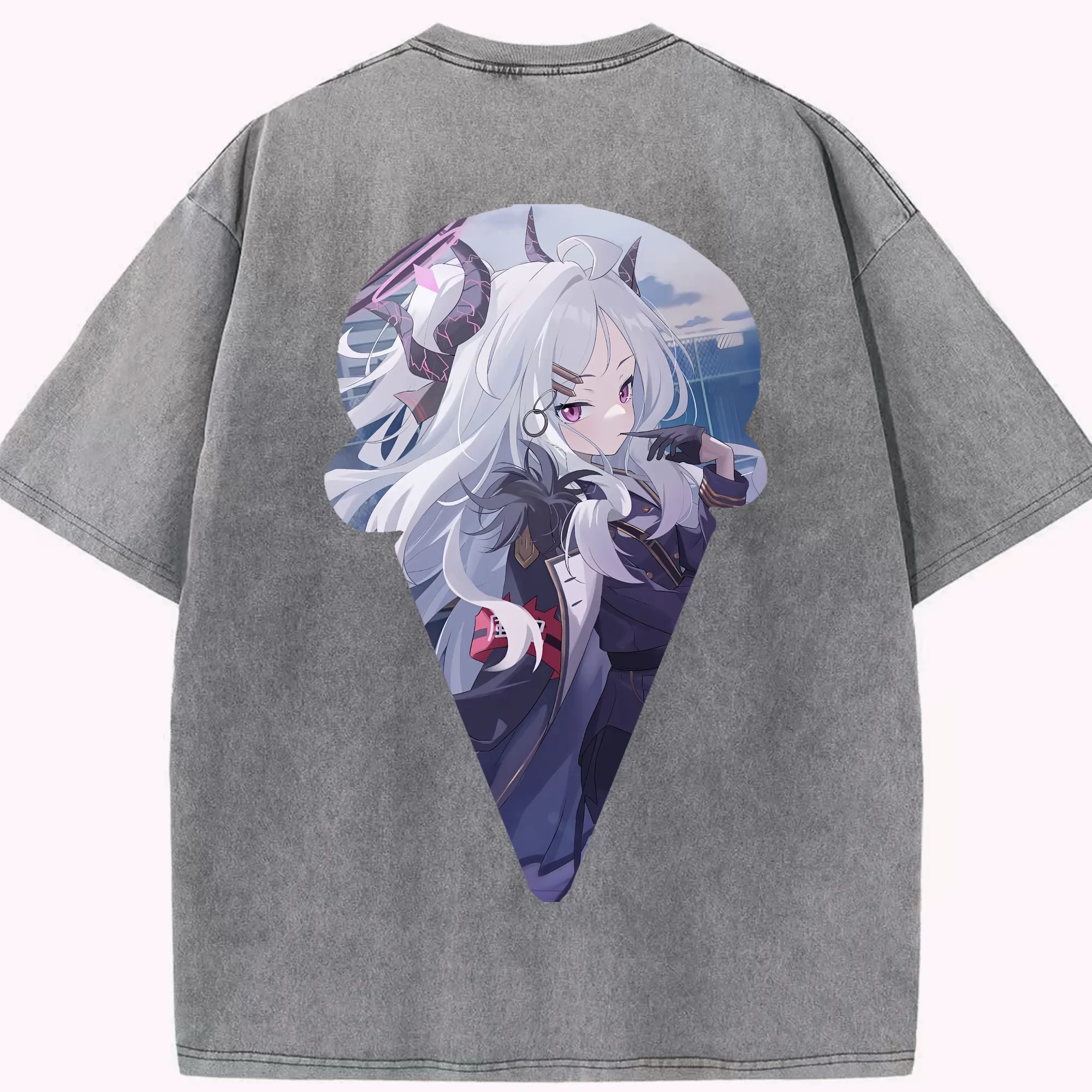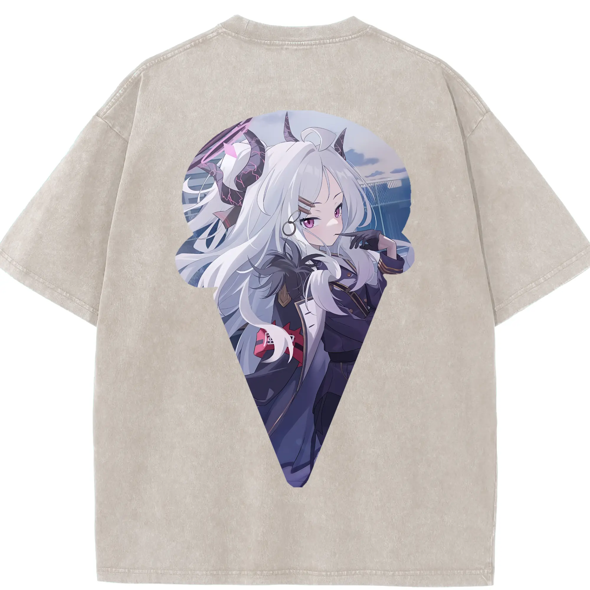 ブルーアーカイブ グッズ 空崎ヒナ - 綿100% ヴィンテージ風 半袖Tシャツ ・ フロントプリント ・ 柔らか肌触り ・ 通気性 快適 ・ スポーツ カジュアル 外出用