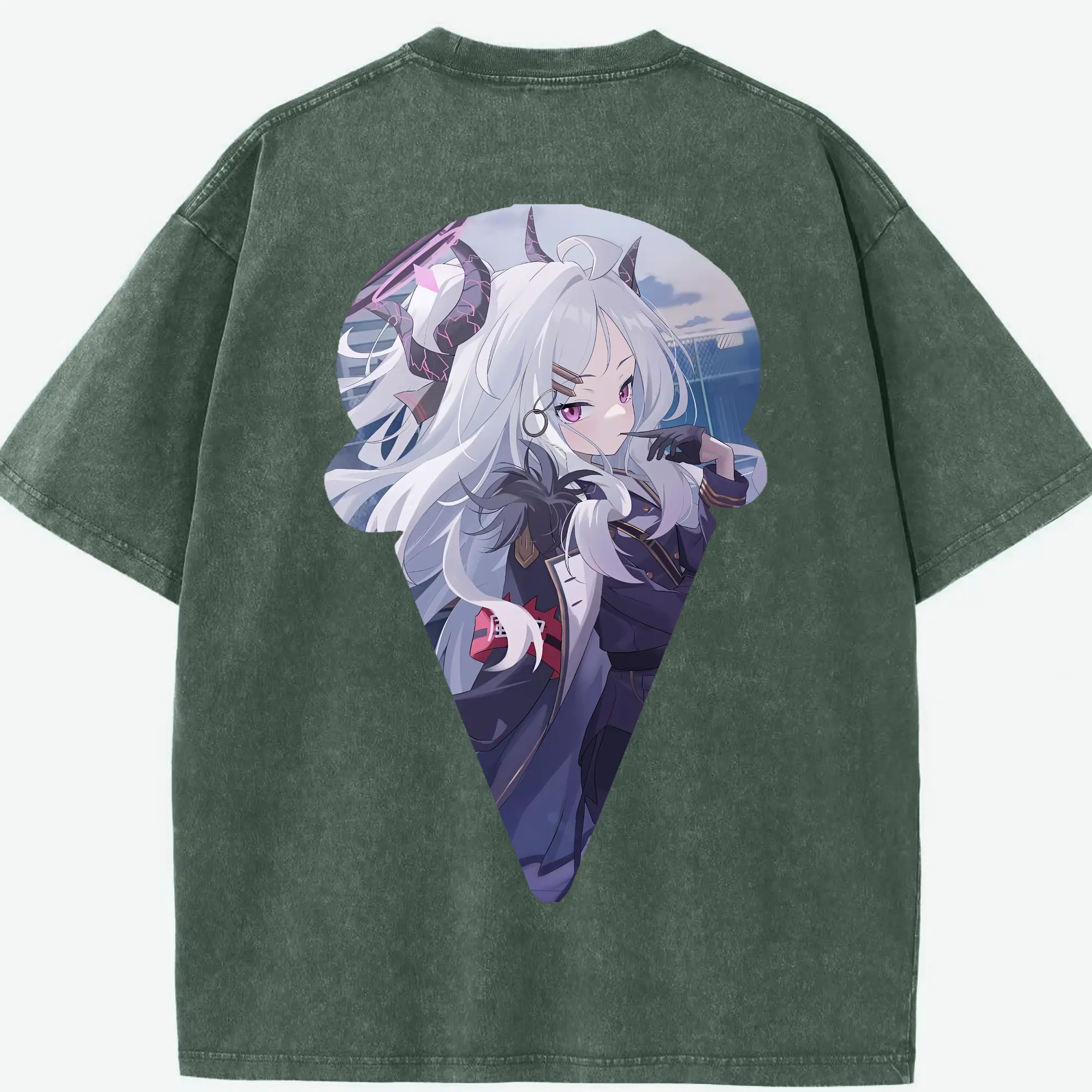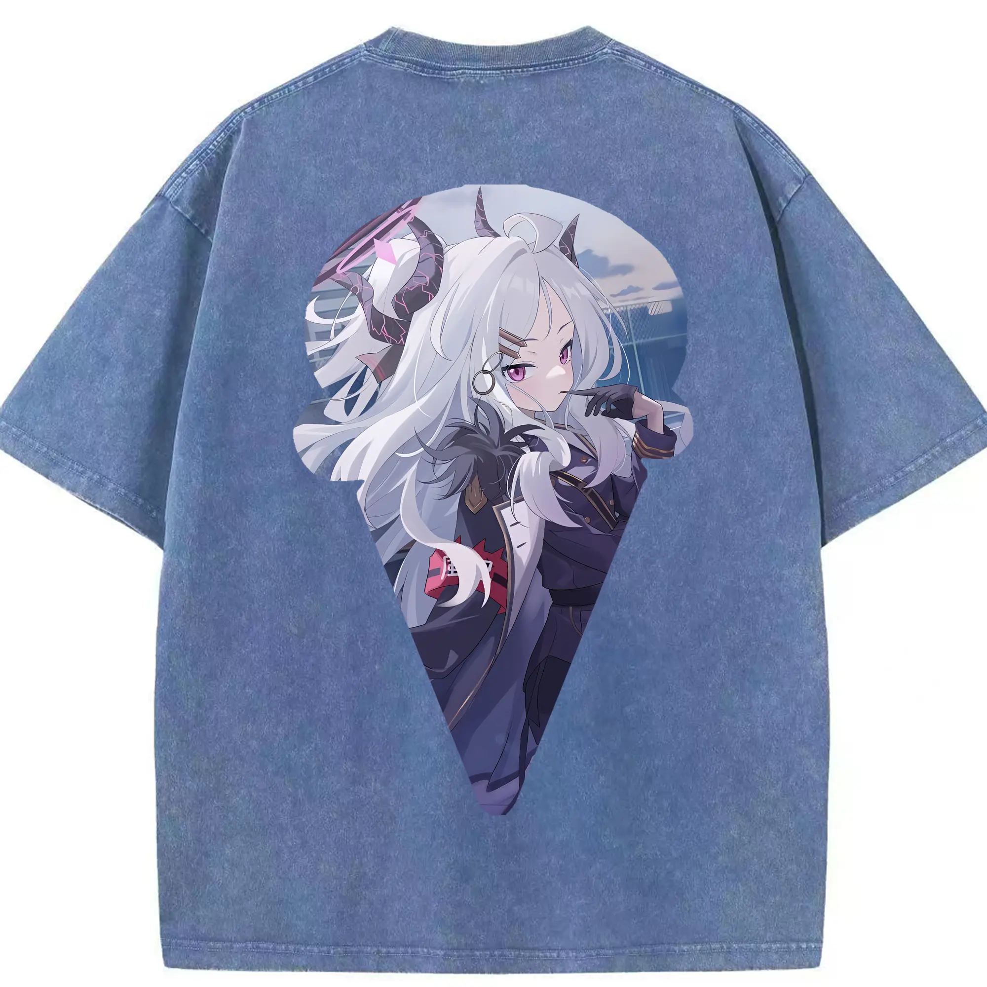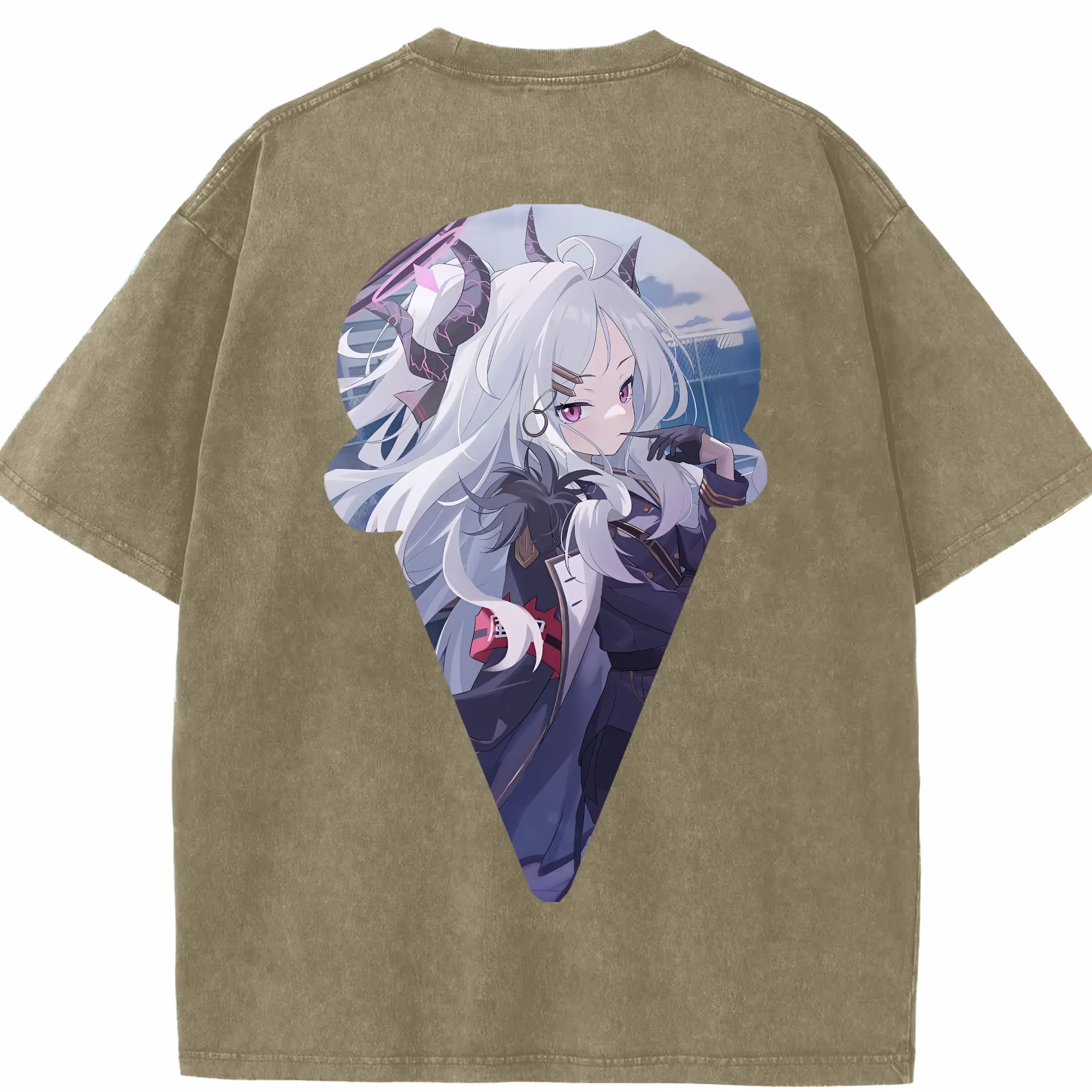 ブルーアーカイブ グッズ 空崎ヒナ - 綿100% ヴィンテージ風 半袖Tシャツ ・ フロントプリント ・ 柔らか肌触り ・ 通気性 快適 ・ スポーツ カジュアル 外出用