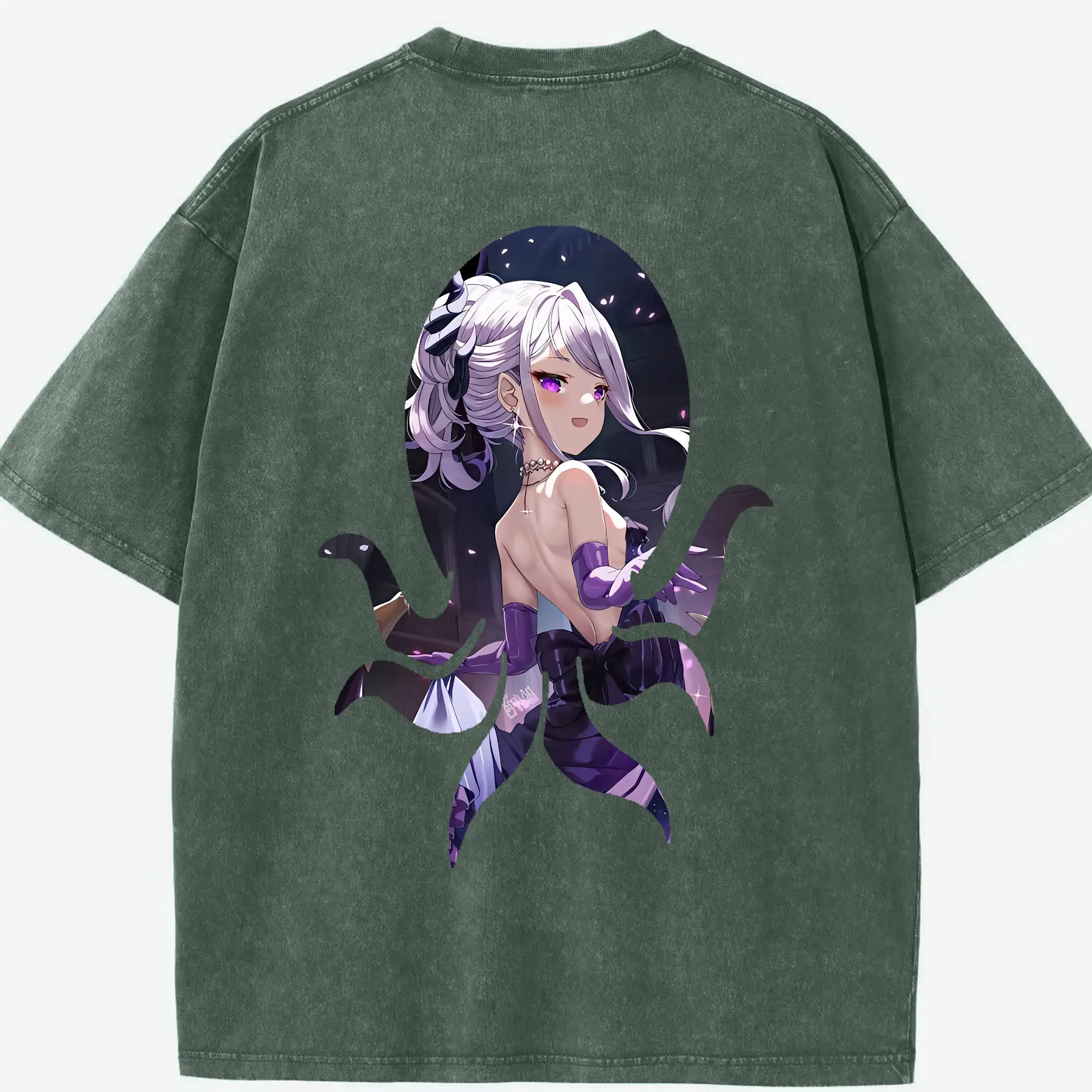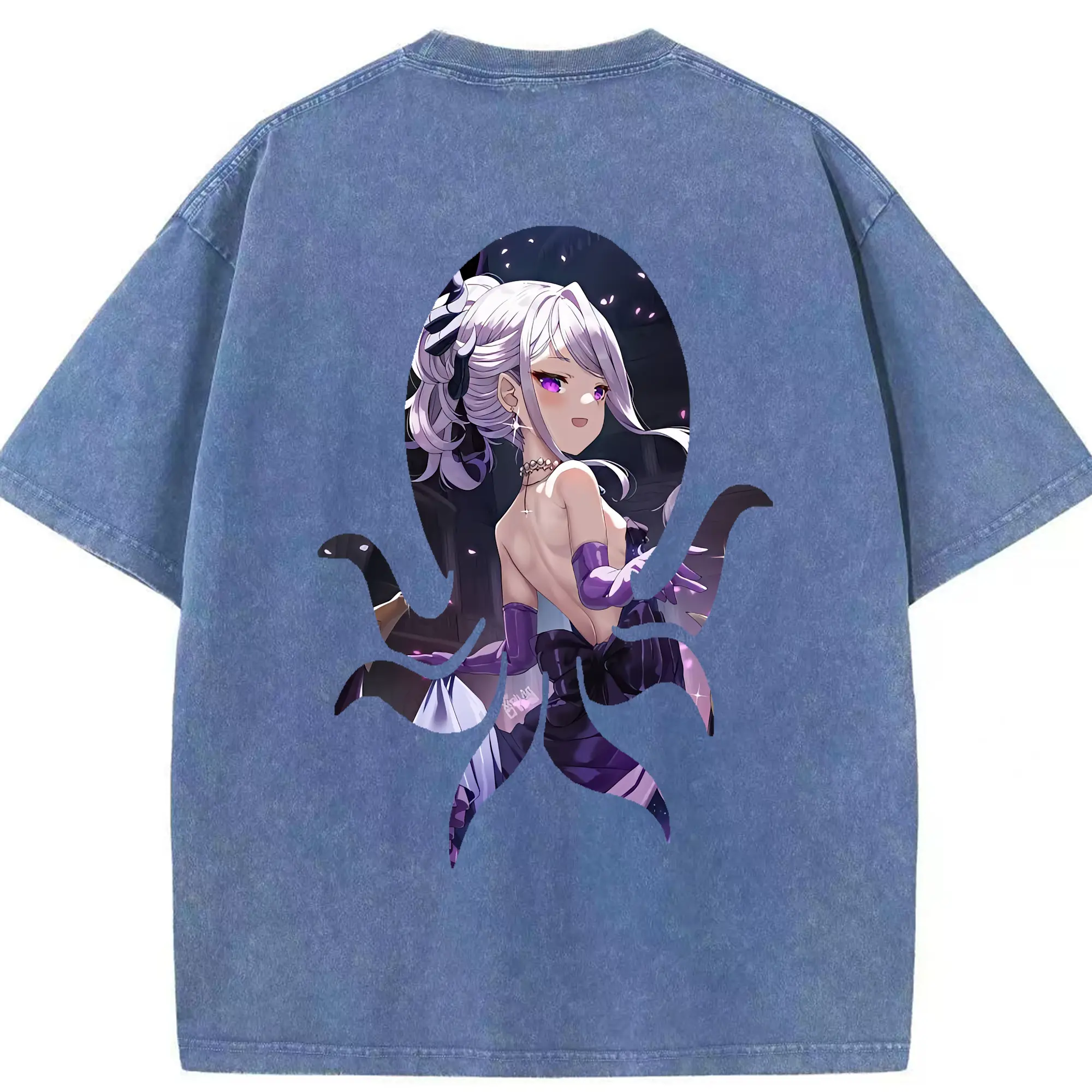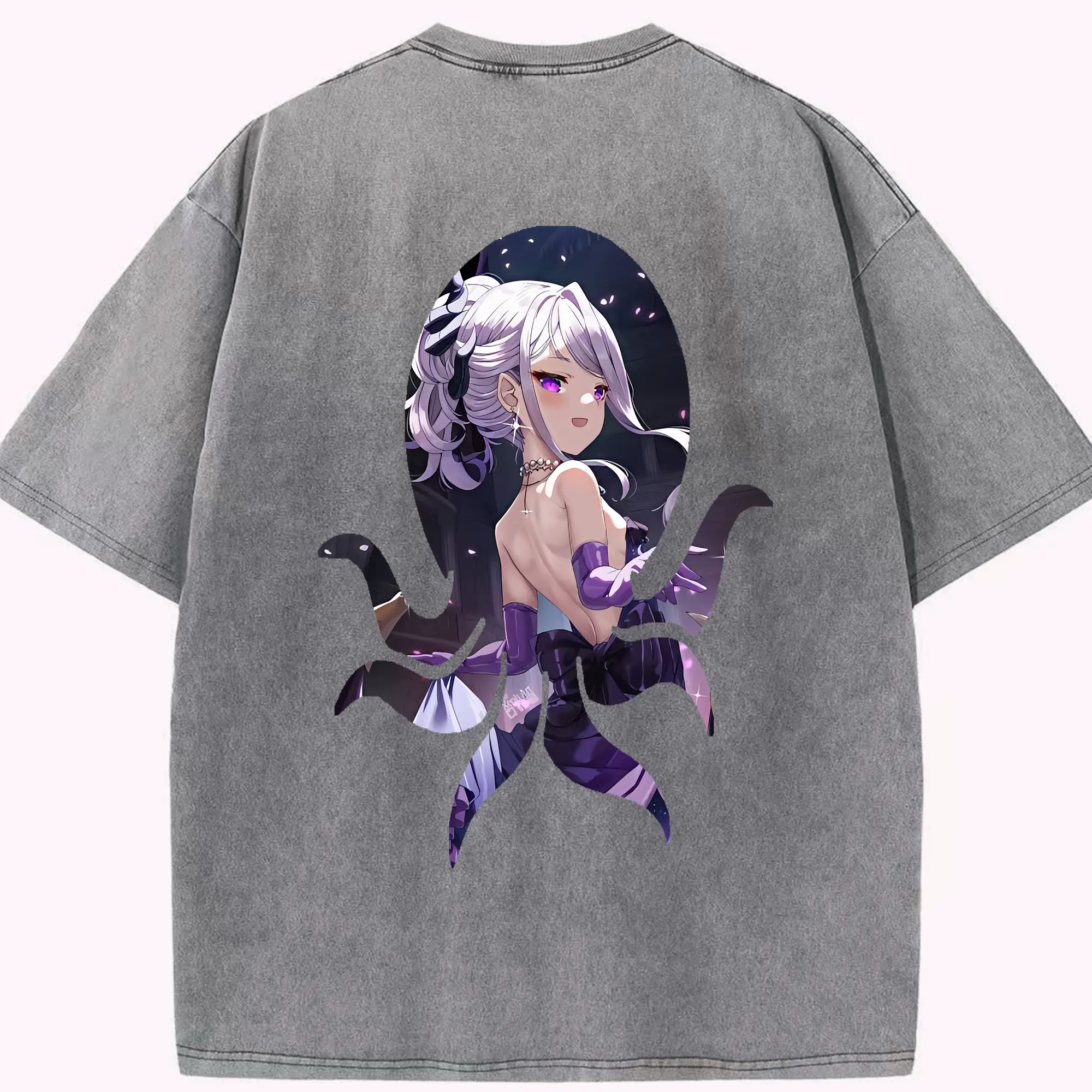 わんだふるぷりきゅあ グッズ 猫屋敷まゆ - 綿100% ヴィンテージ風 半袖Tシャツ ・ 背面プリント ・ 柔らか肌触り ・ 通気性 快適 ・ スポーツ カジュアル 外出用