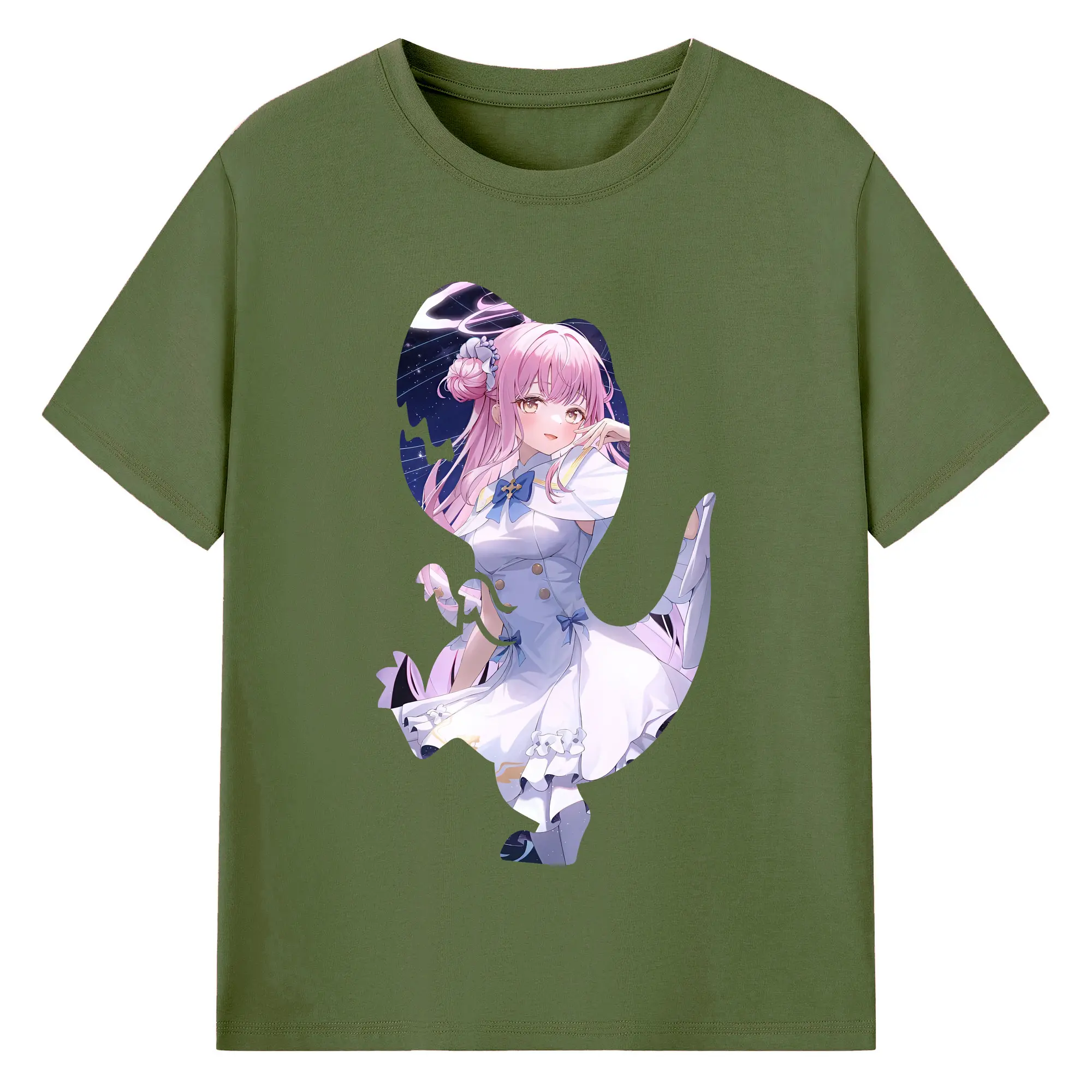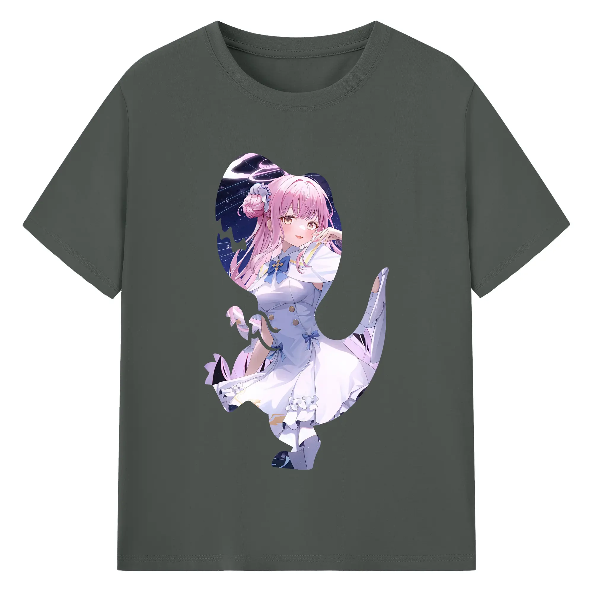 ブルーアーカイブ グッズ 聖園ミカ - 綿100% ヴィンテージ風 半袖Tシャツ ・ フロントプリント ・ 柔らか肌触り ・ 通気性 快適 ・ スポーツ カジュアル 外出用