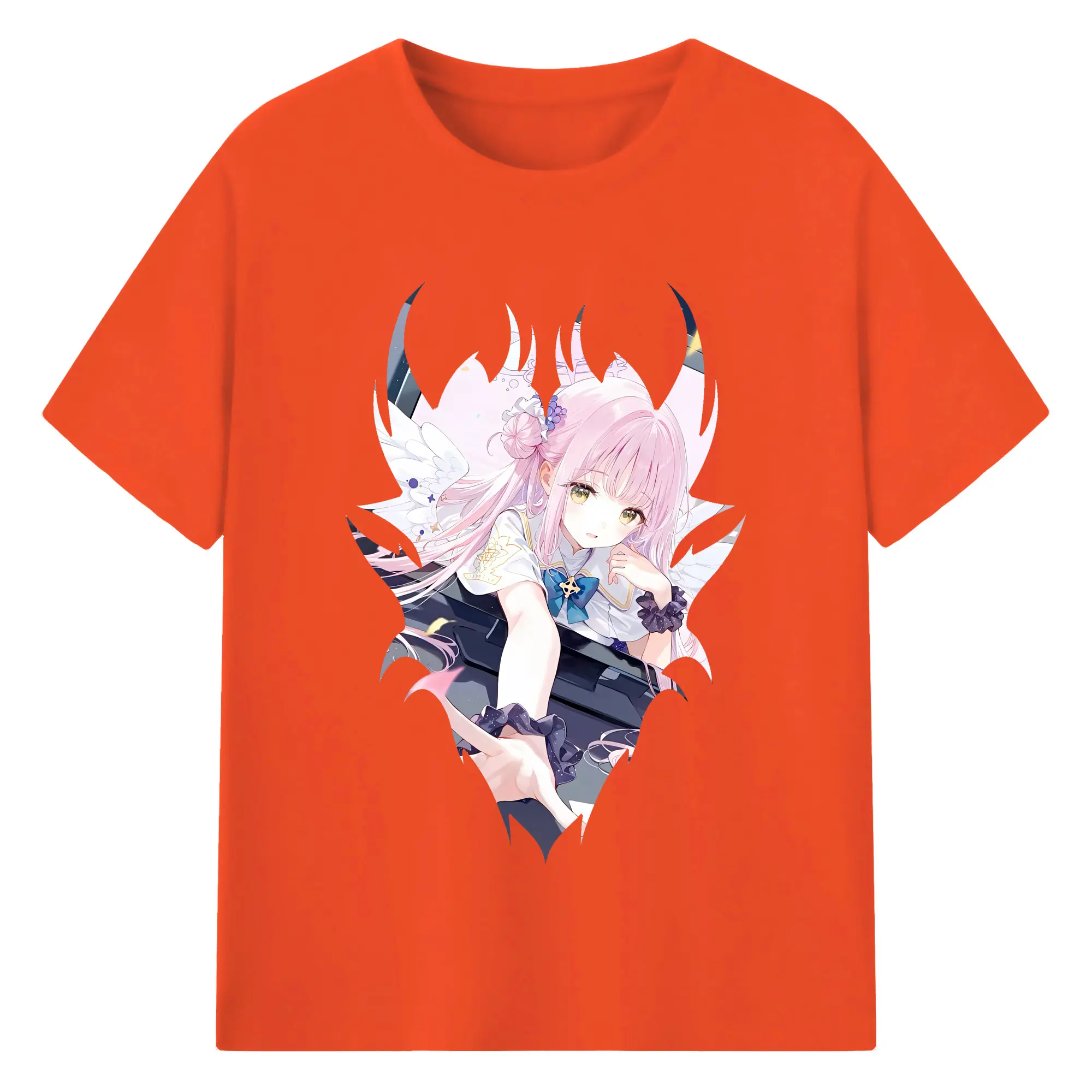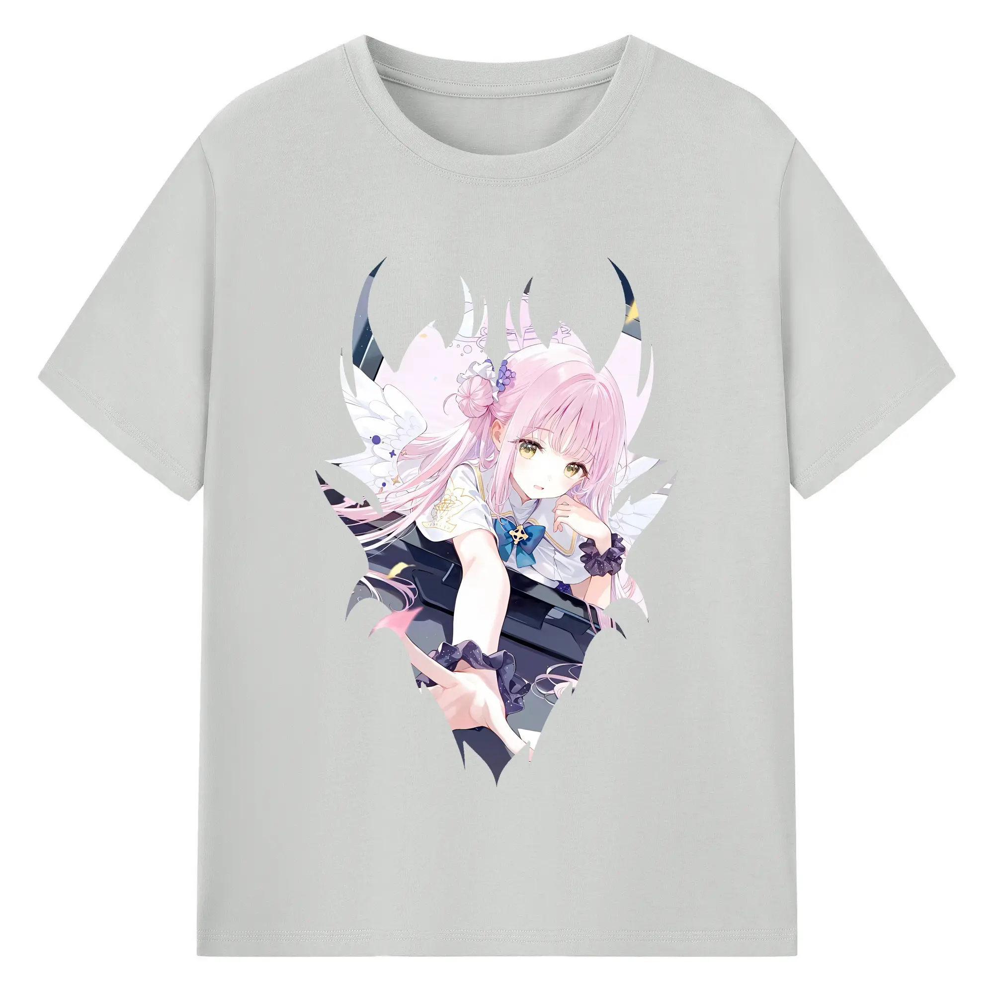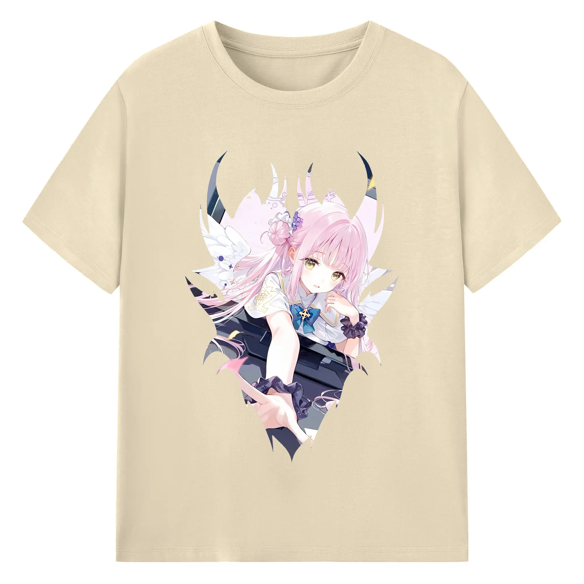 ブルーアーカイブ グッズ 聖園ミカ - 綿100% ヴィンテージ風 半袖Tシャツ ・ フロントプリント ・ 柔らか肌触り ・ 通気性 快適 ・ スポーツ カジュアル 外出用