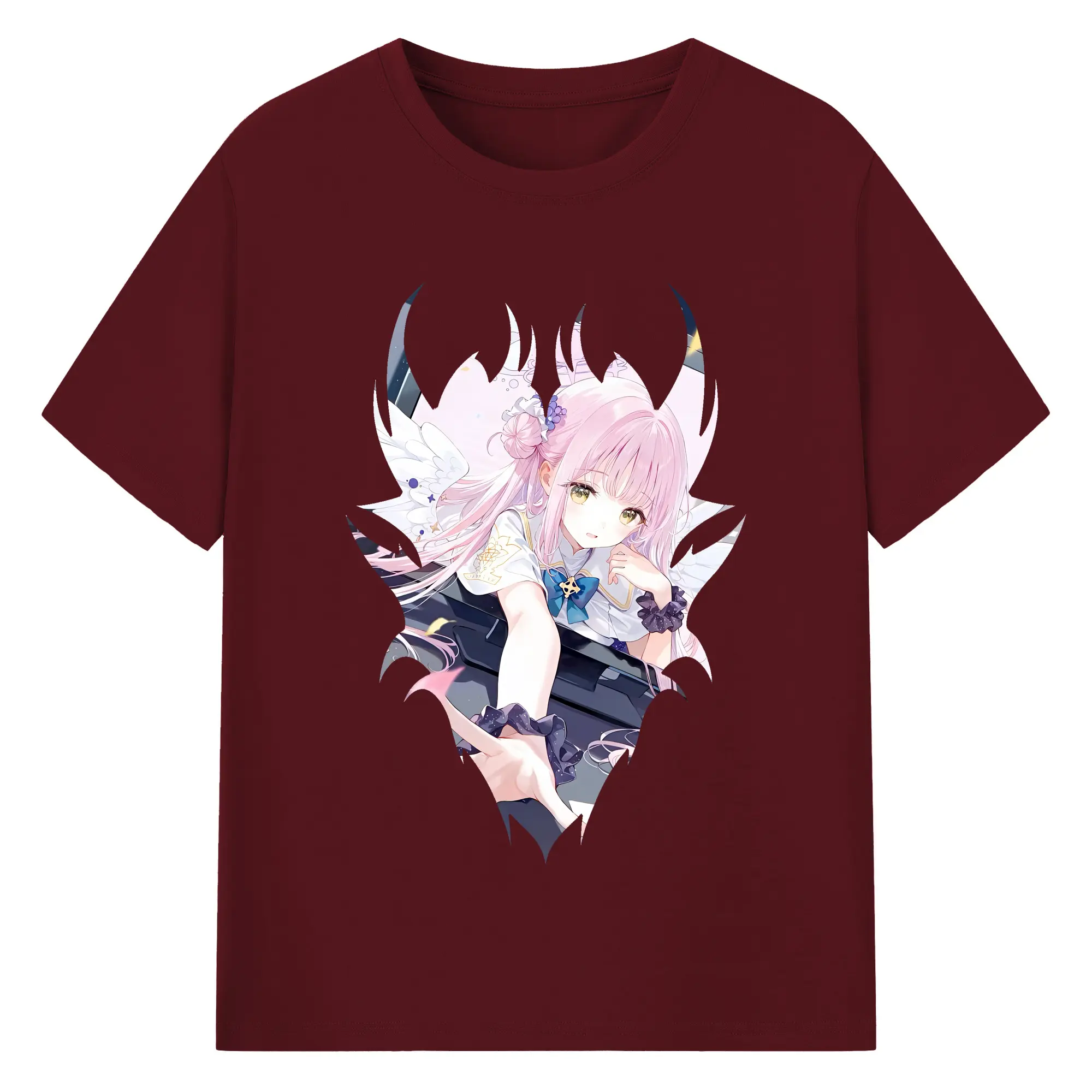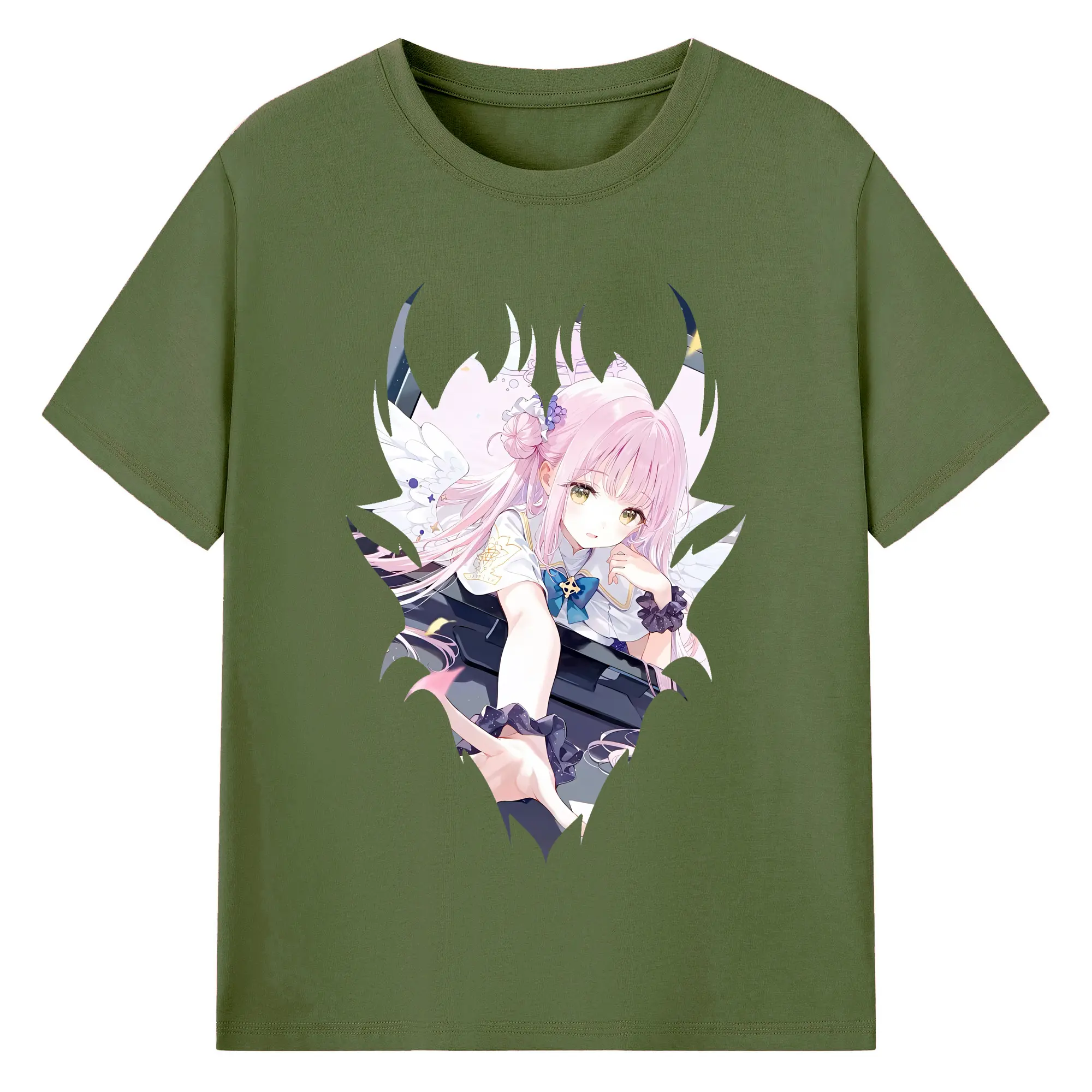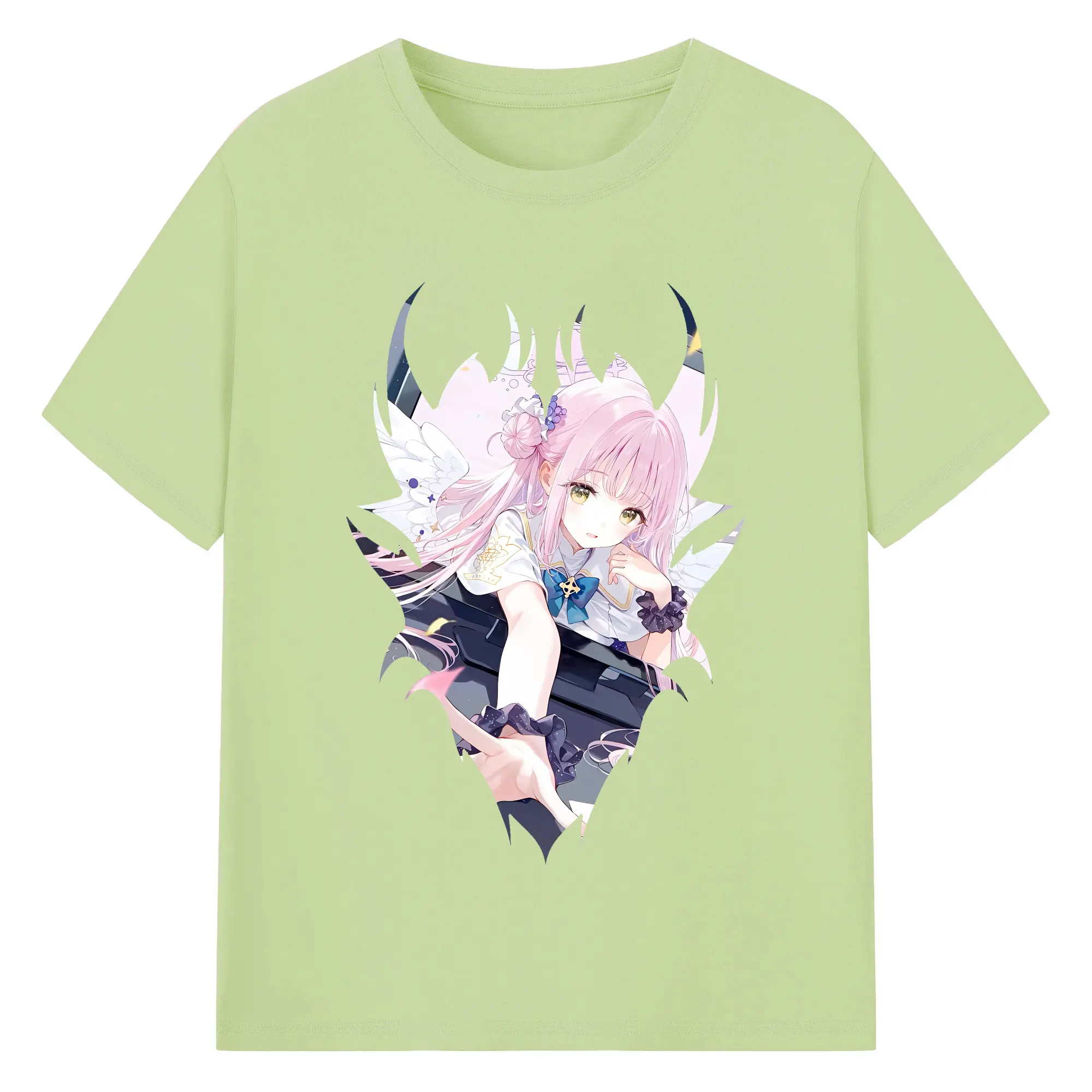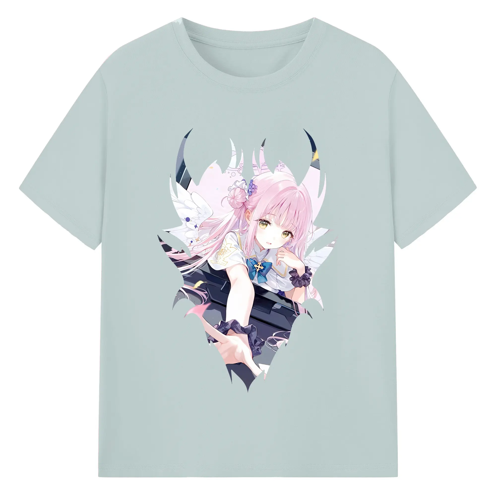 ブルーアーカイブ グッズ 聖園ミカ - 綿100% ヴィンテージ風 半袖Tシャツ ・ フロントプリント ・ 柔らか肌触り ・ 通気性 快適 ・ スポーツ カジュアル 外出用