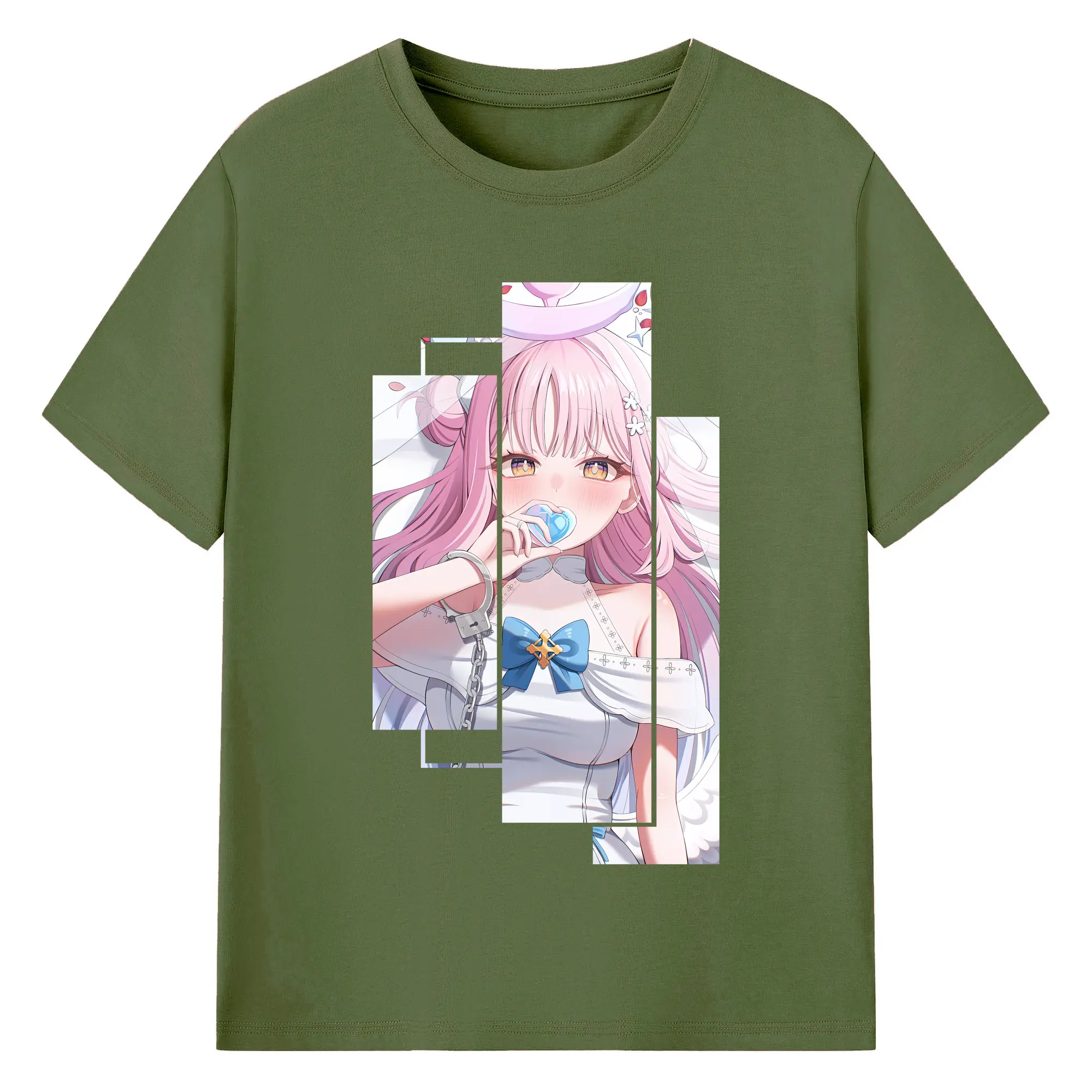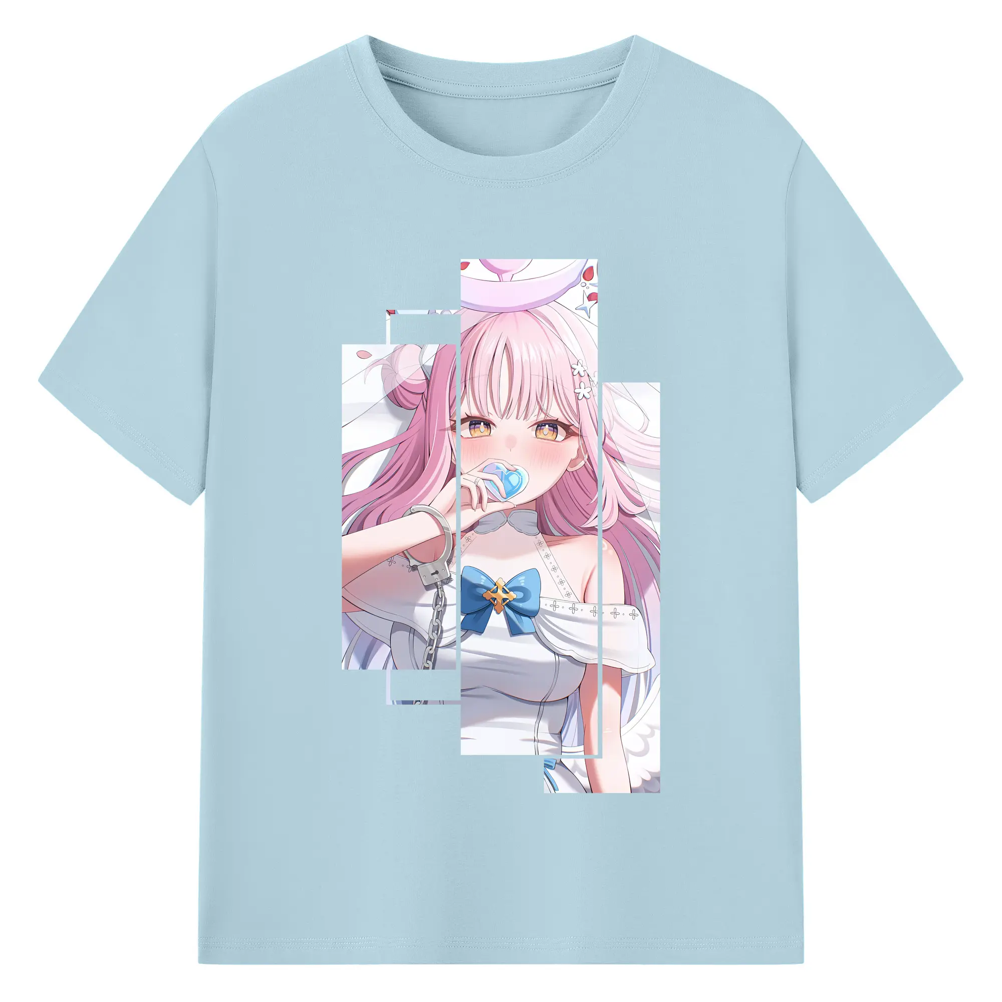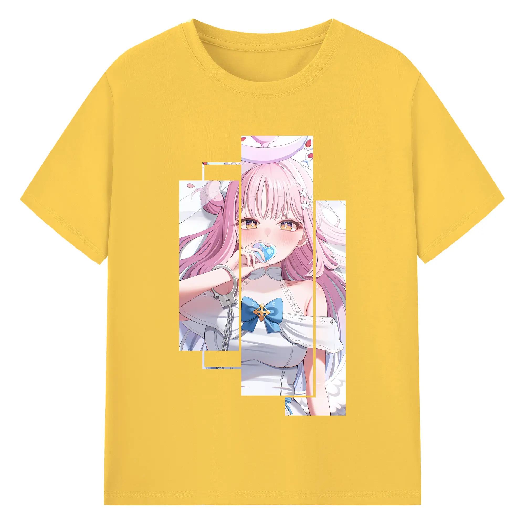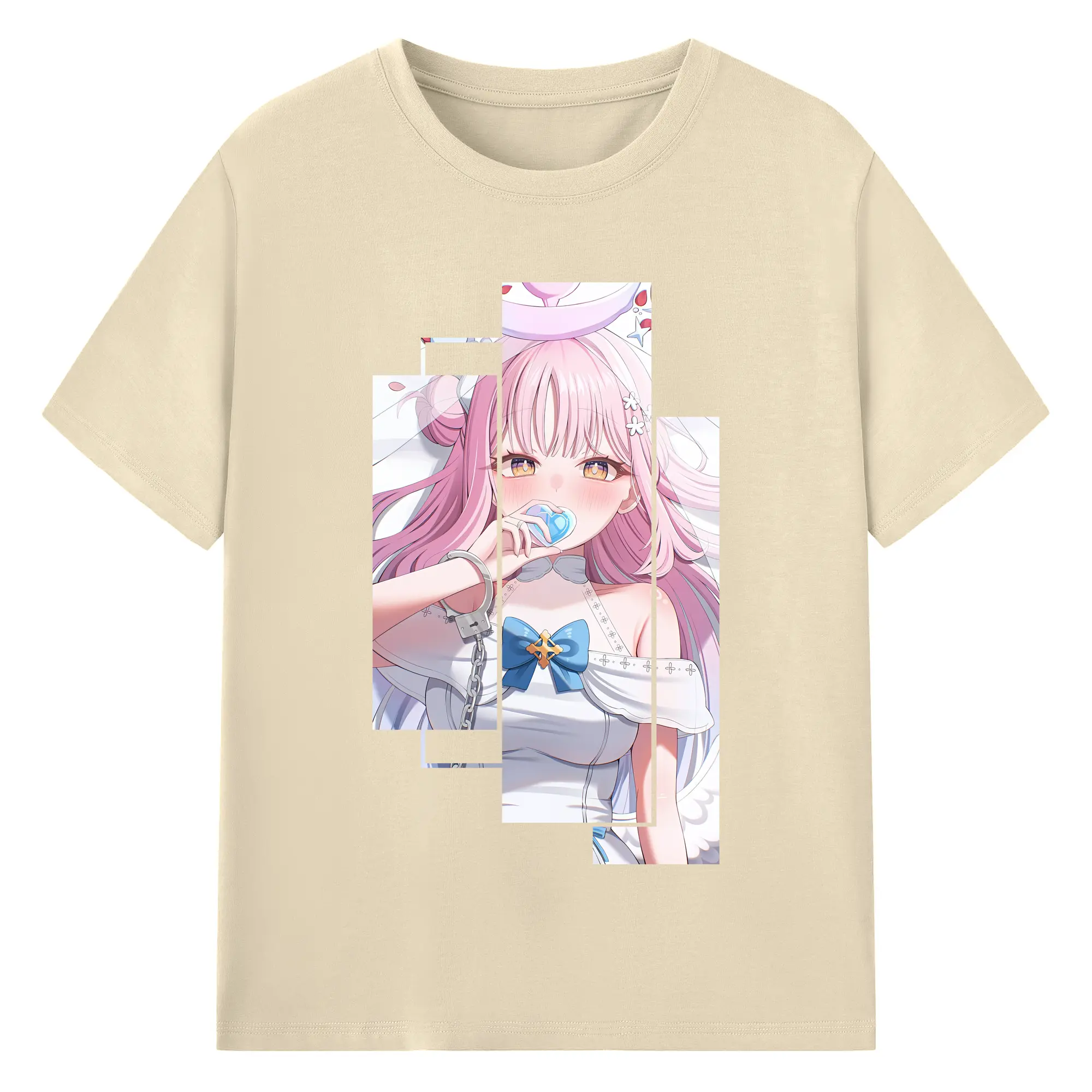 ブルーアーカイブ グッズ 聖園ミカ - 綿100% ヴィンテージ風 半袖Tシャツ ・ フロントプリント ・ 柔らか肌触り ・ 通気性 快適 ・ スポーツ カジュアル 外出用