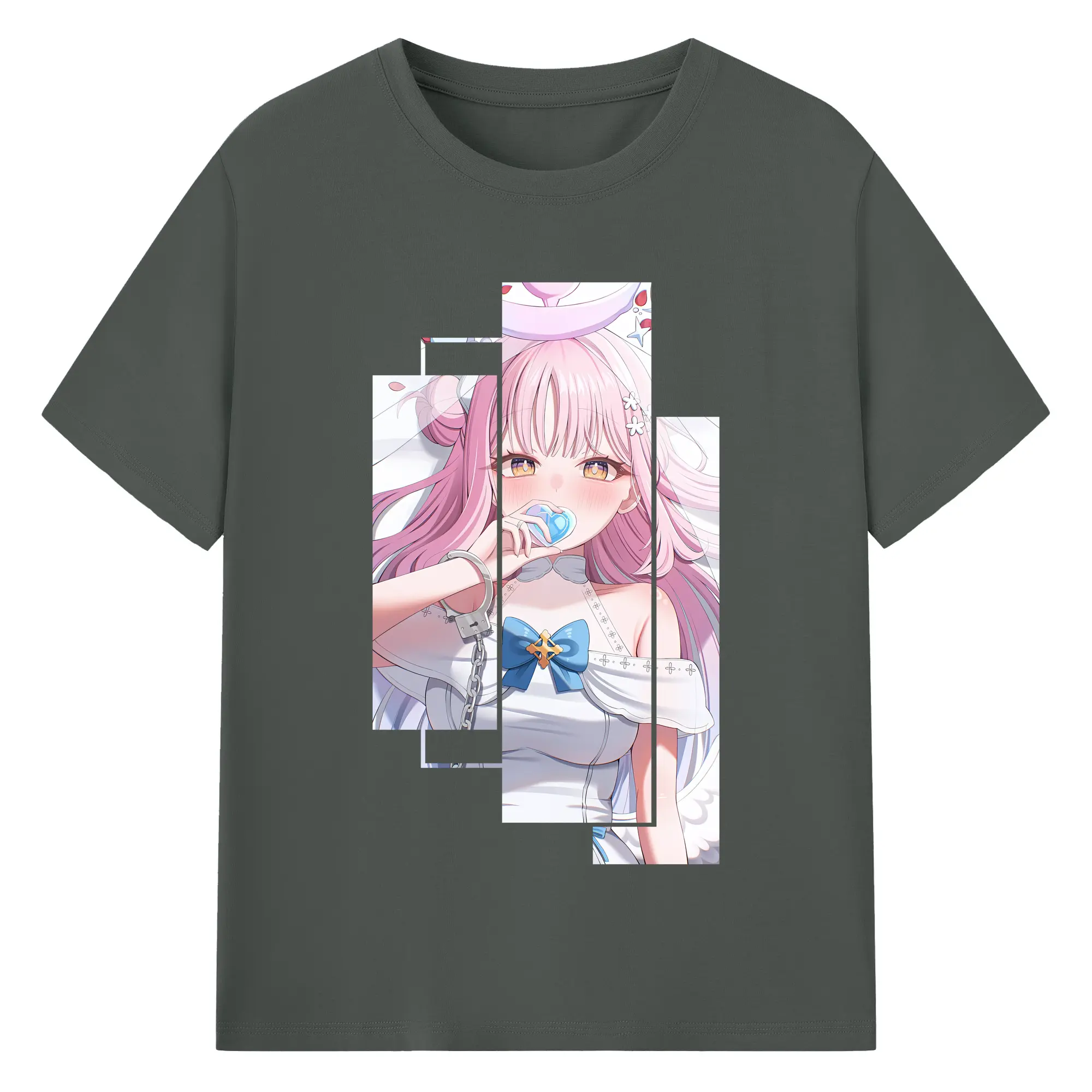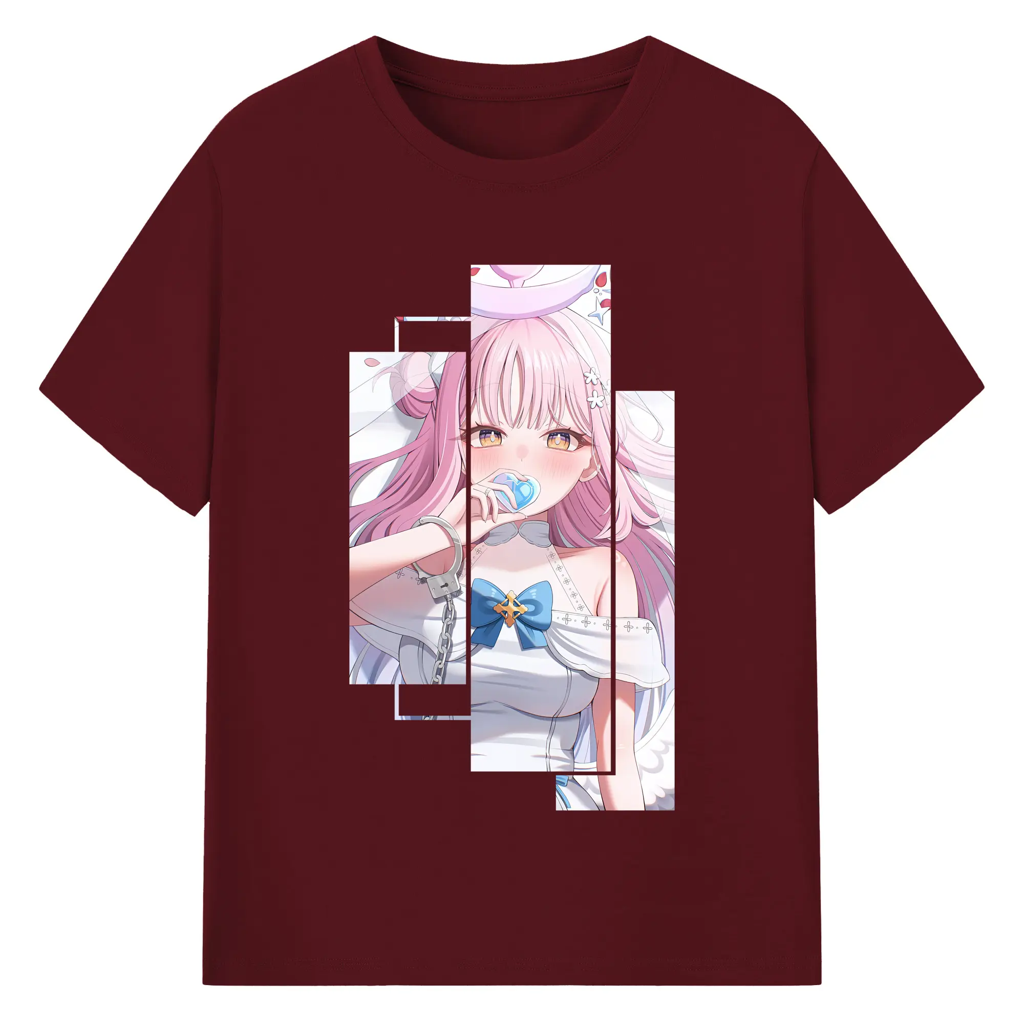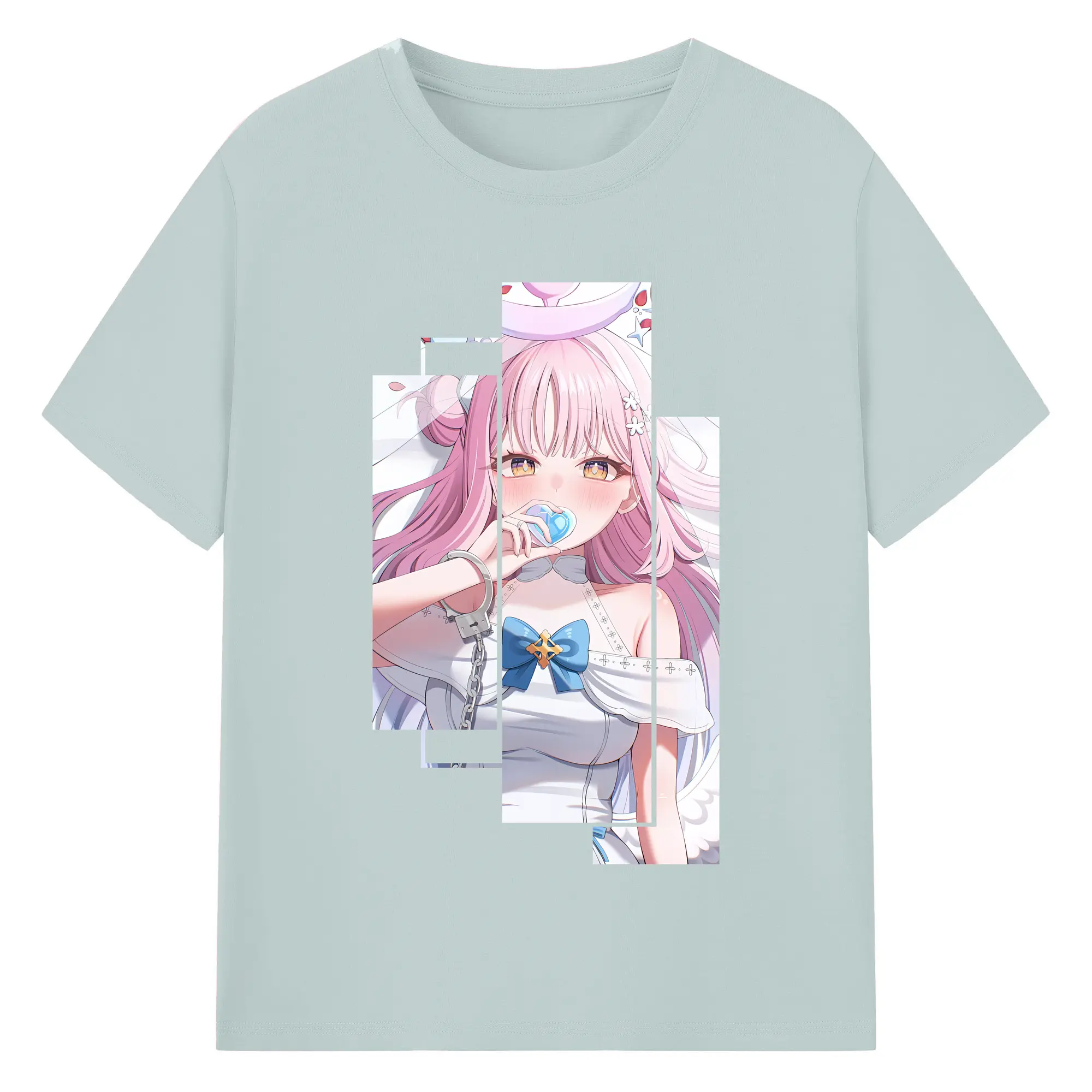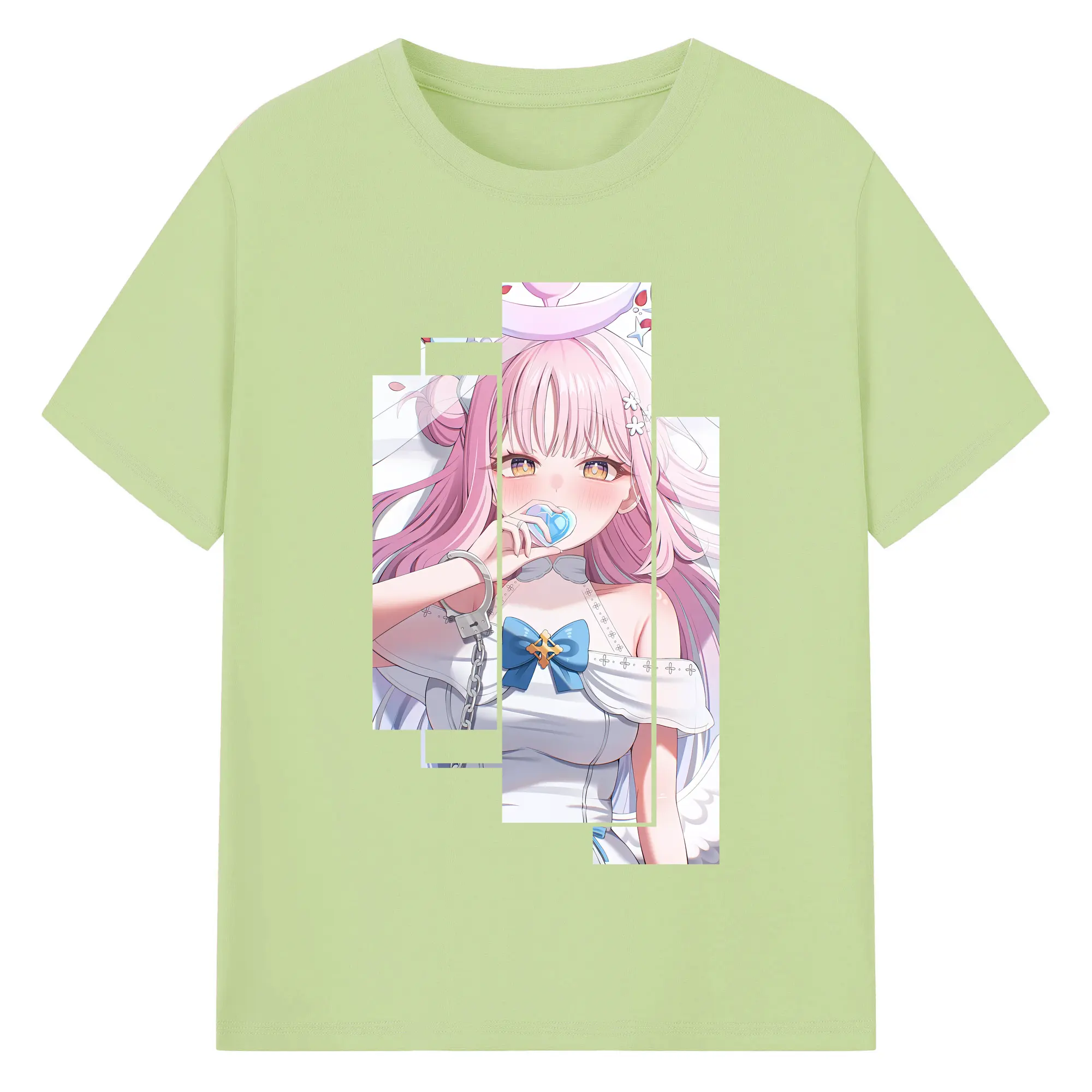 ブルーアーカイブ グッズ 聖園ミカ - 綿100% ヴィンテージ風 半袖Tシャツ ・ フロントプリント ・ 柔らか肌触り ・ 通気性 快適 ・ スポーツ カジュアル 外出用