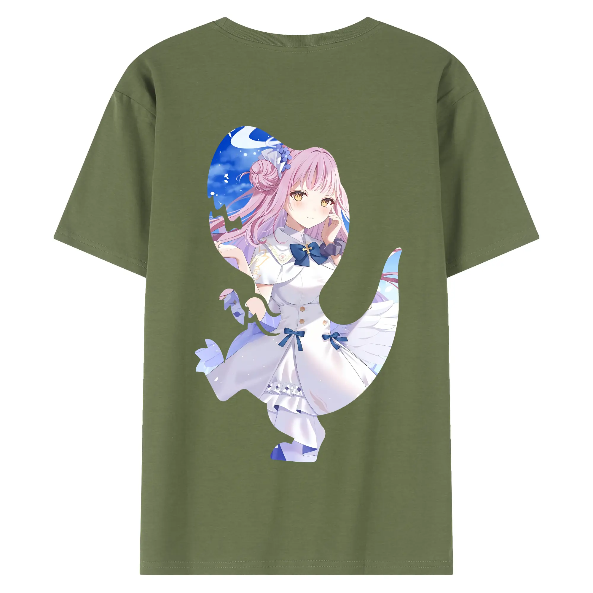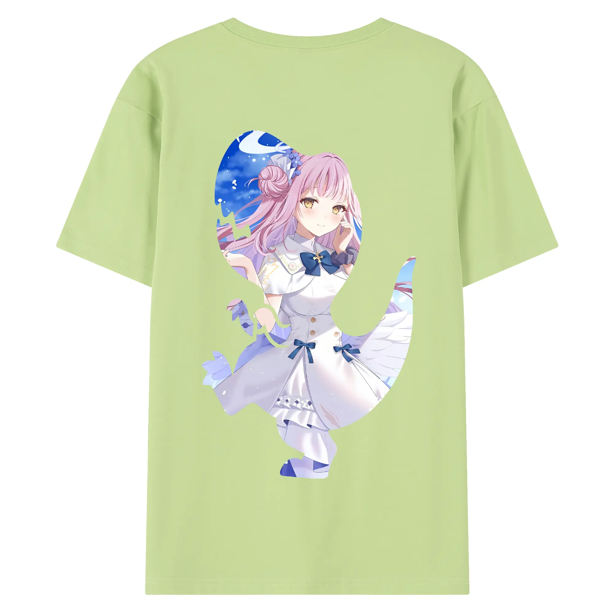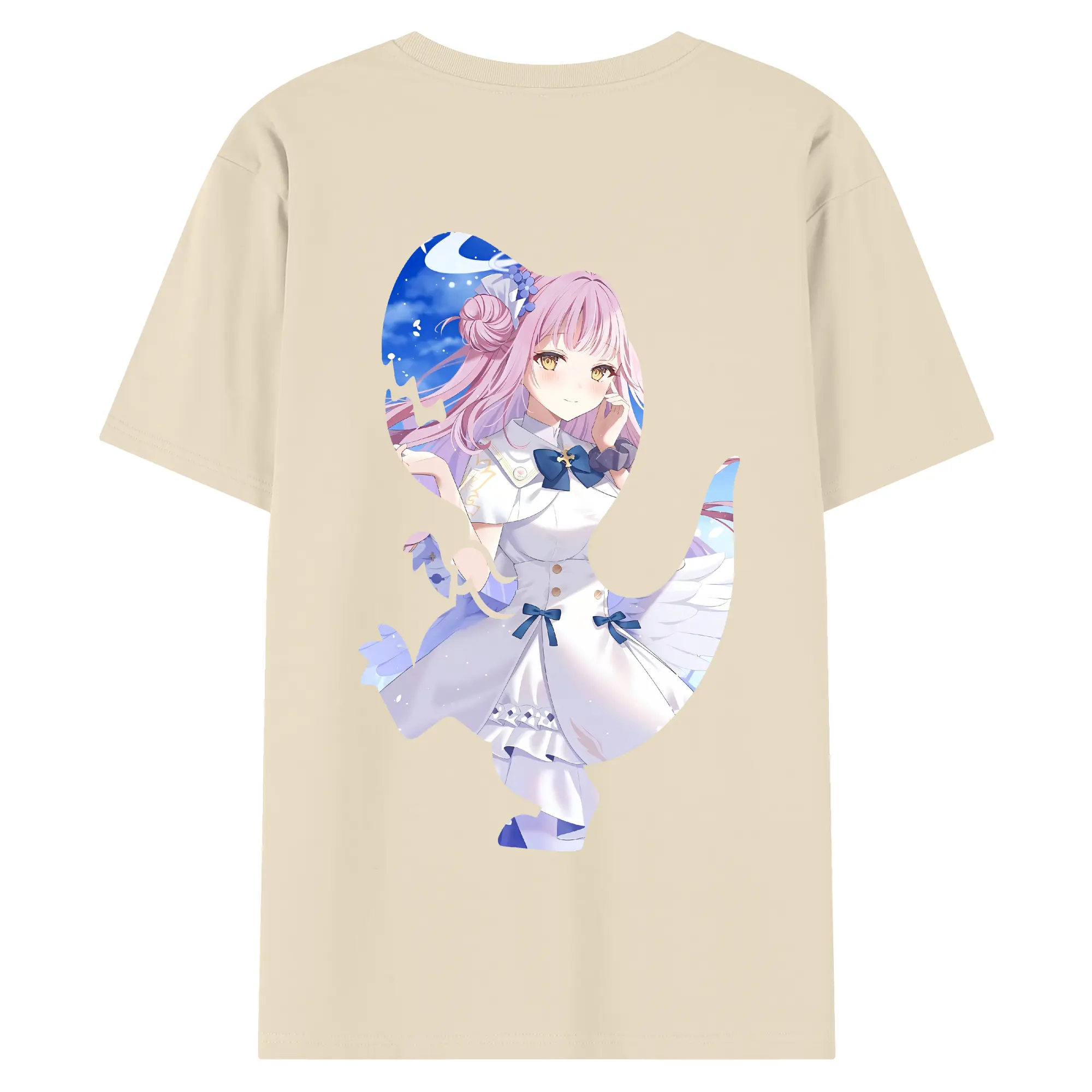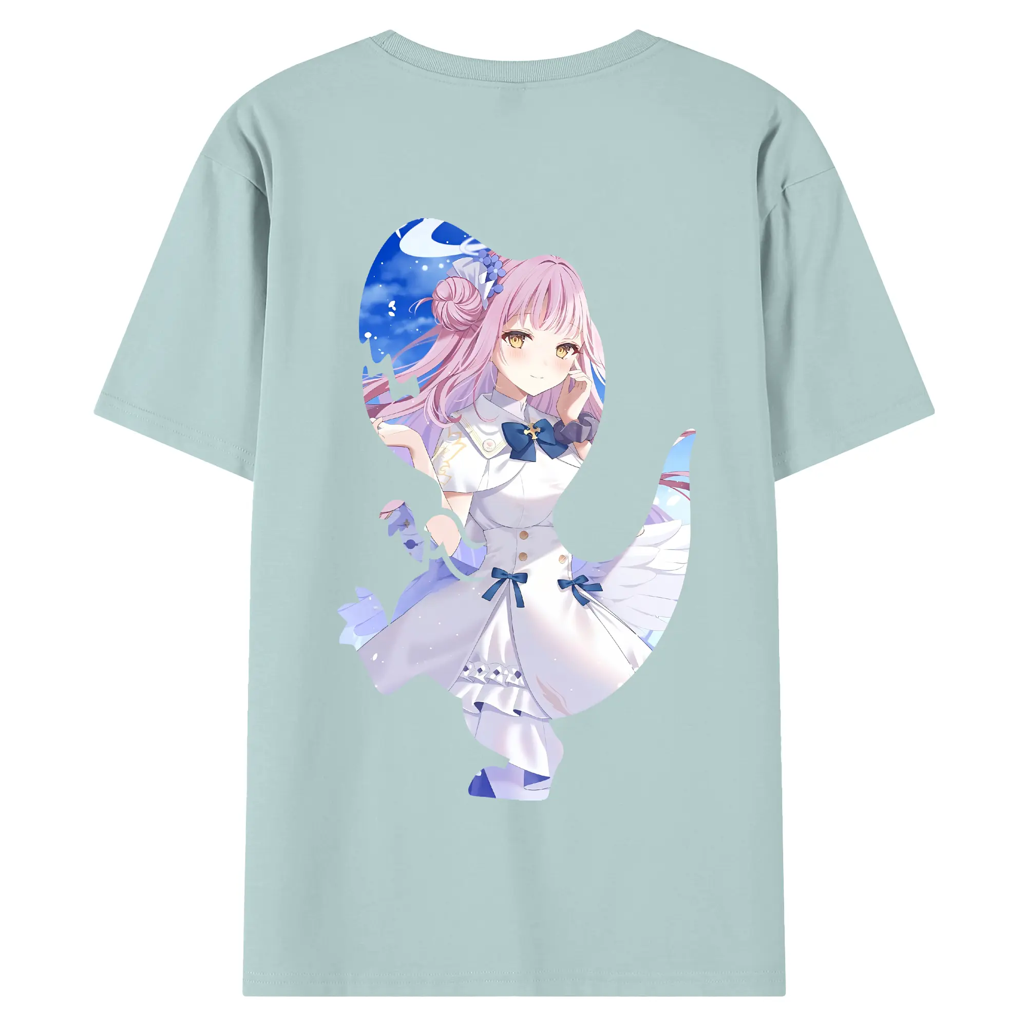 ブルーアーカイブ グッズ 聖園ミカ - 綿100% ヴィンテージ風 半袖Tシャツ ・ 背面プリント ・ 柔らか肌触り ・ 通気性 快適 ・ スポーツ カジュアル 外出用