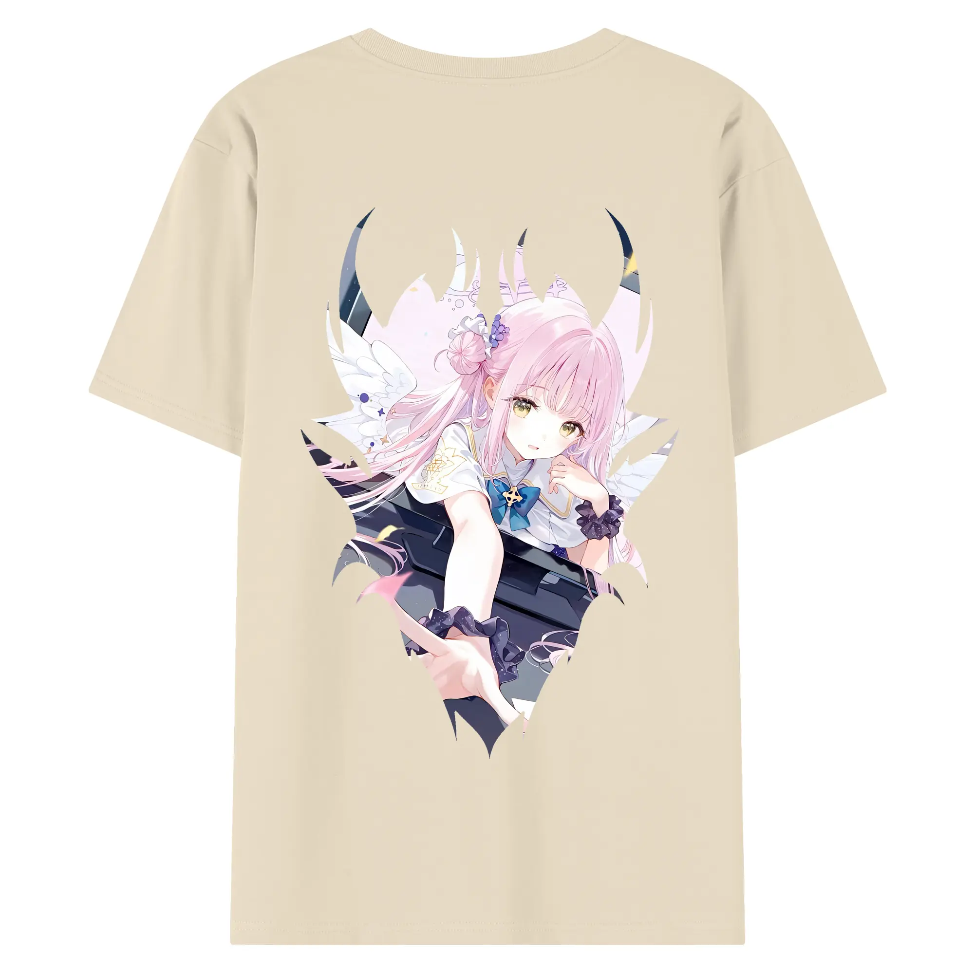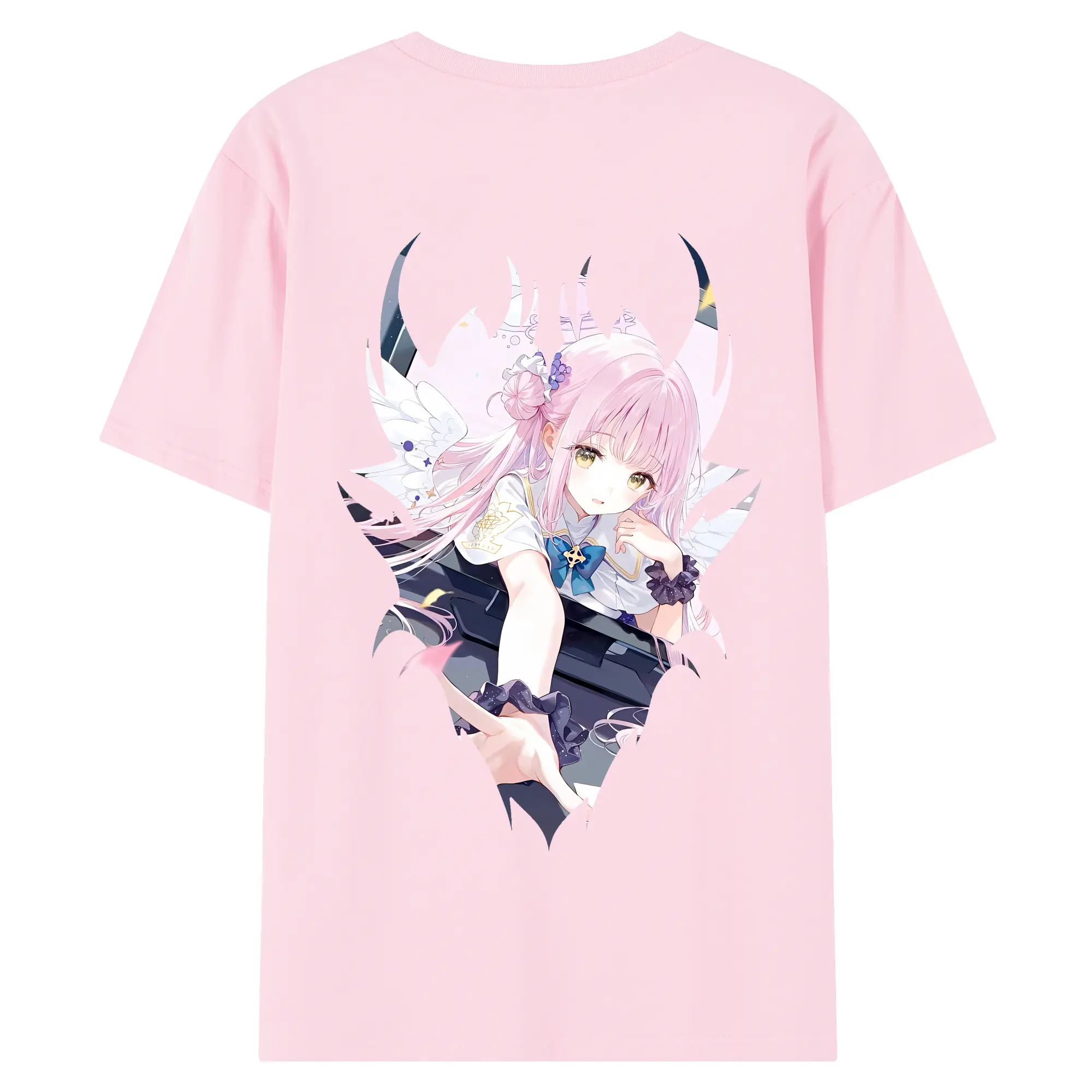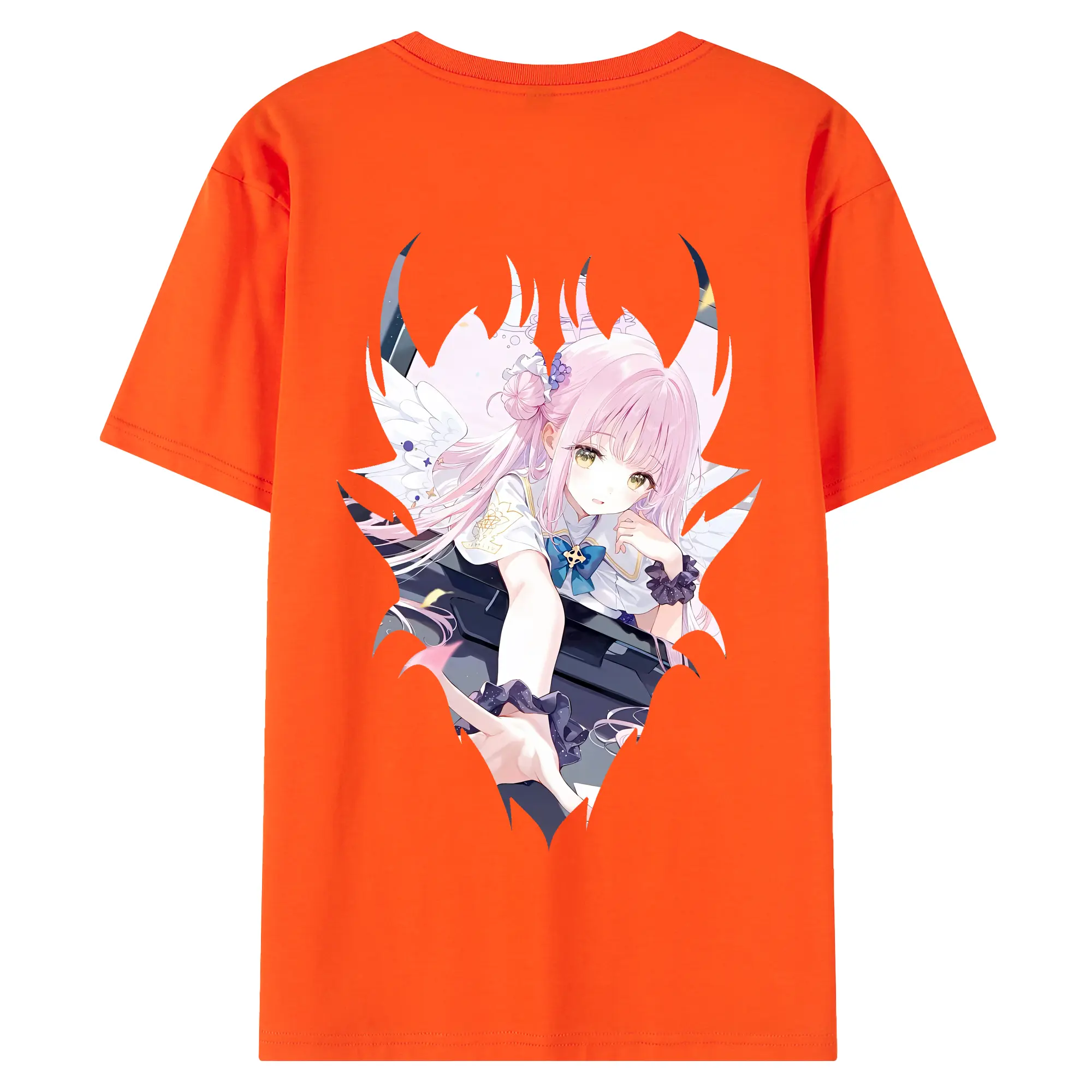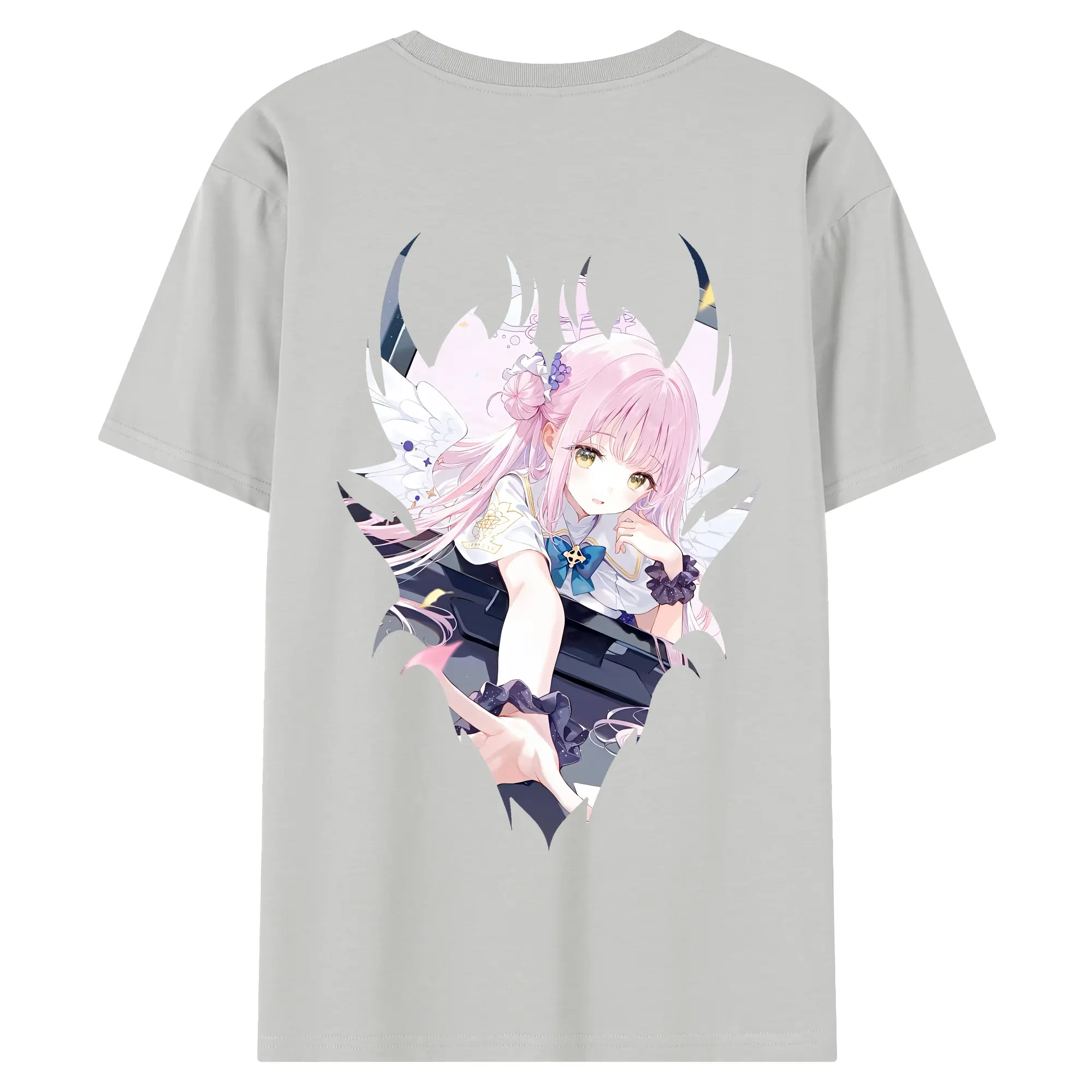 ブルーアーカイブ グッズ 聖園ミカ - 綿100% ヴィンテージ風 半袖Tシャツ ・ 背面プリント ・ 柔らか肌触り ・ 通気性 快適 ・ スポーツ カジュアル 外出用