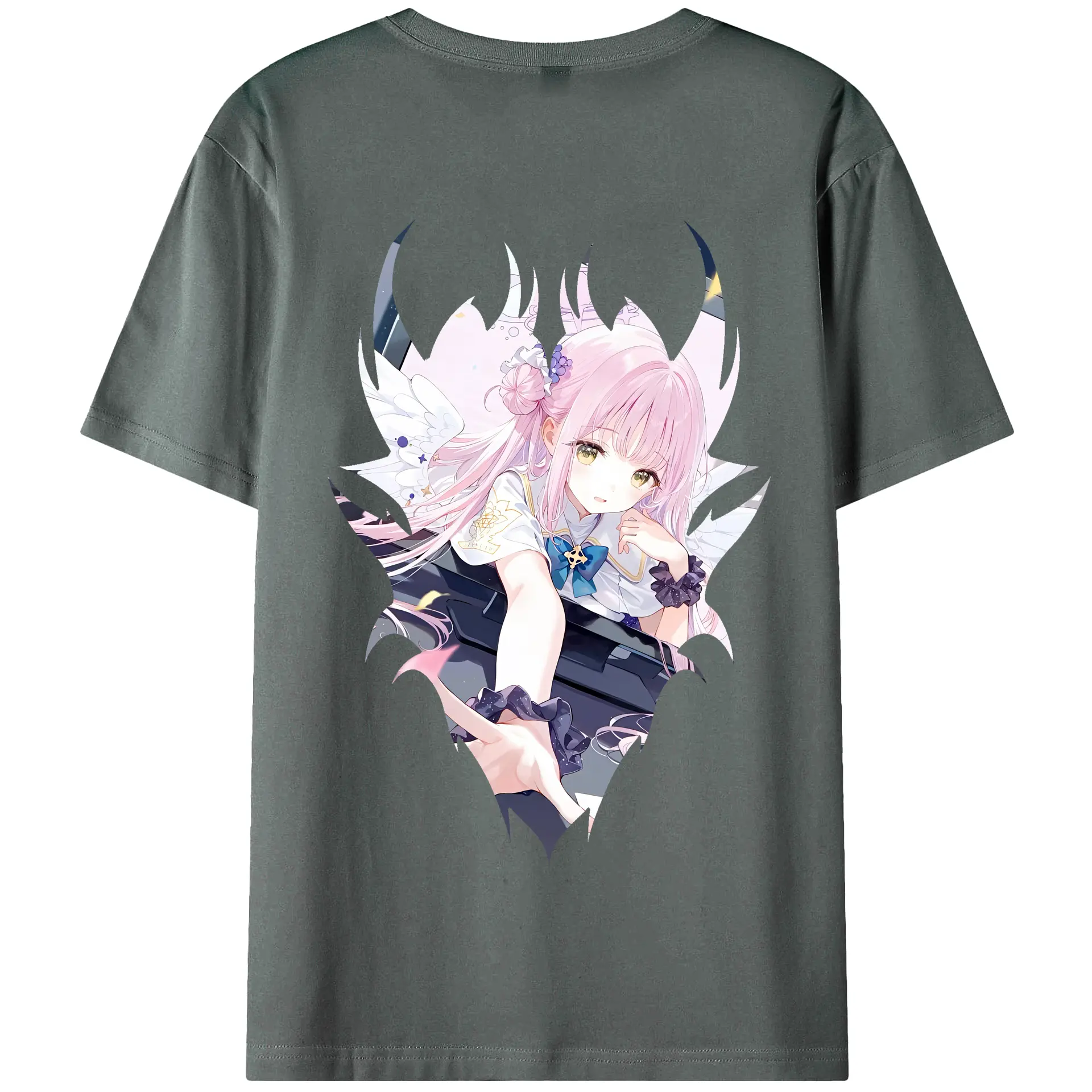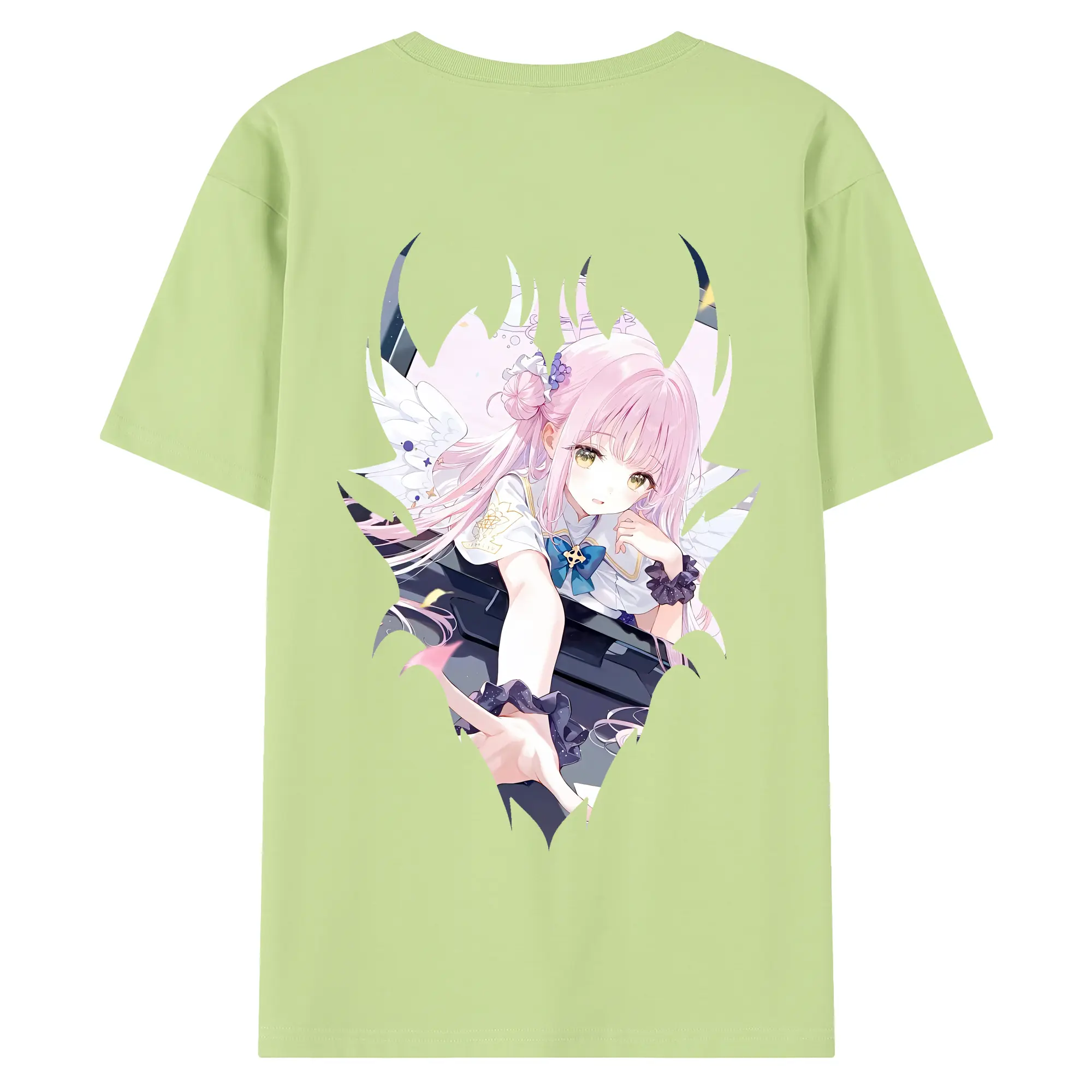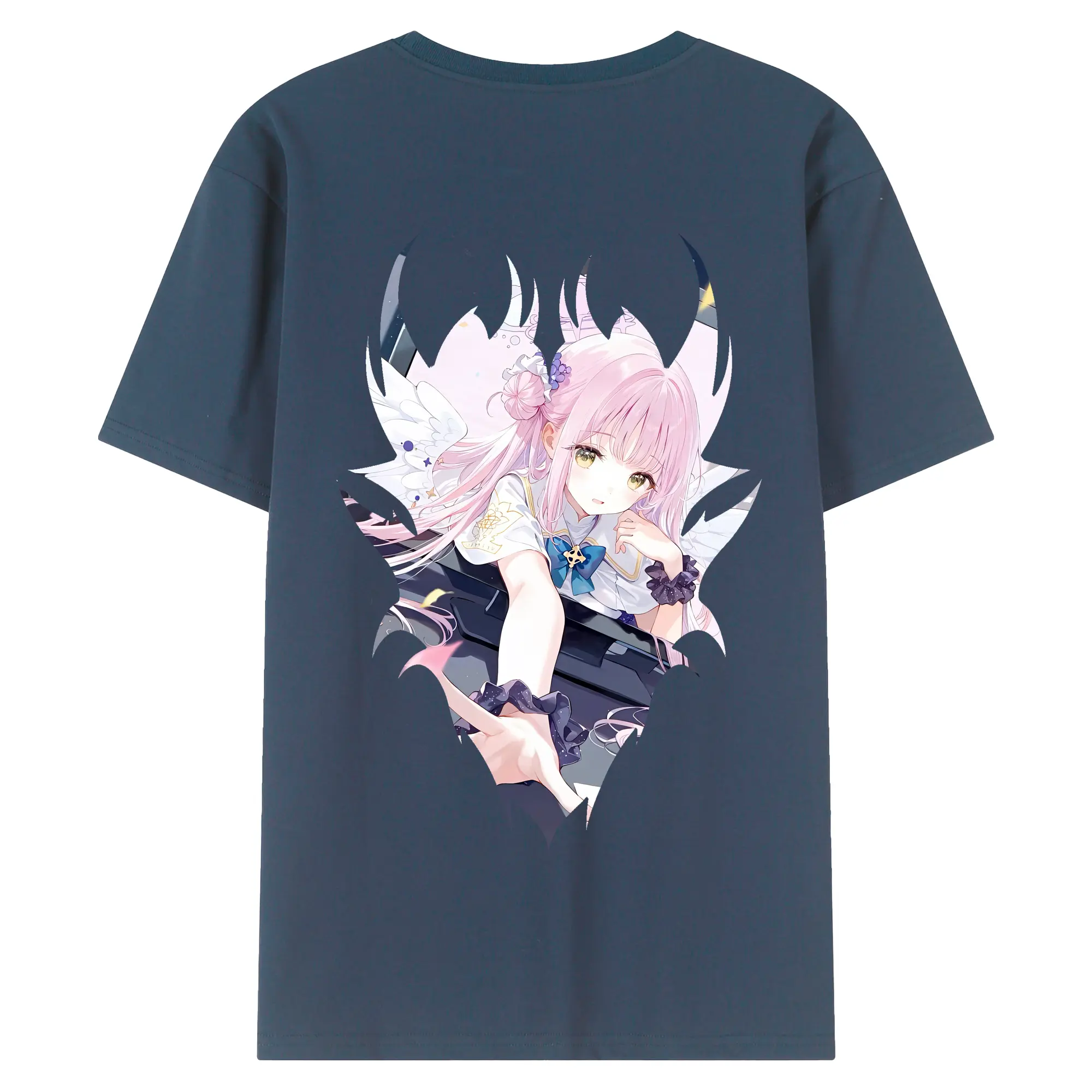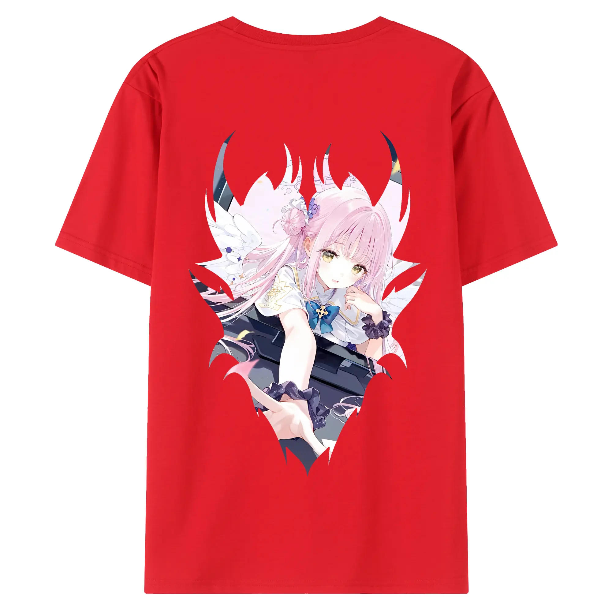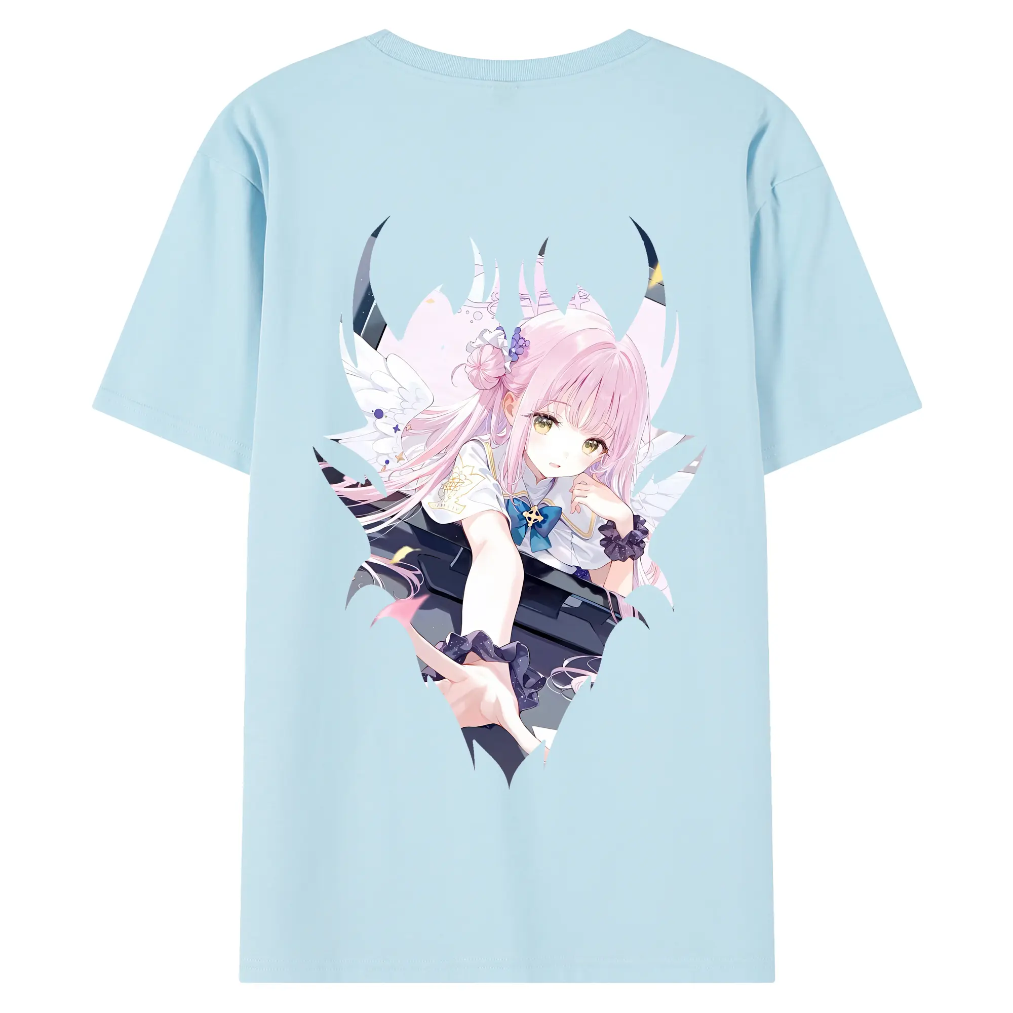 ブルーアーカイブ グッズ 聖園ミカ - 綿100% ヴィンテージ風 半袖Tシャツ ・ 背面プリント ・ 柔らか肌触り ・ 通気性 快適 ・ スポーツ カジュアル 外出用