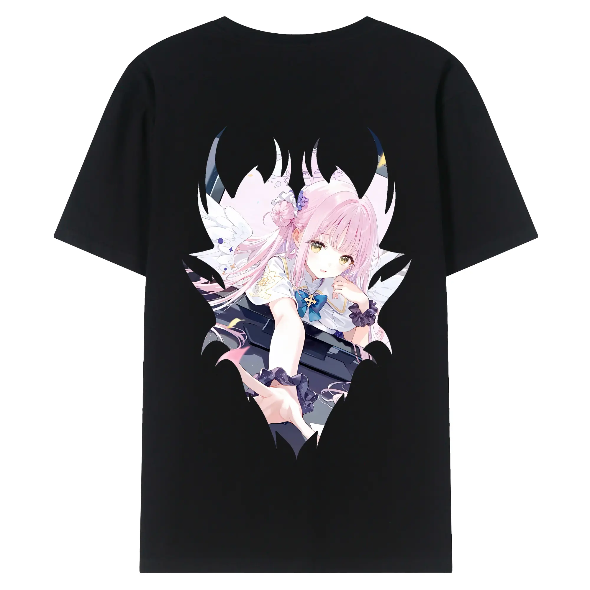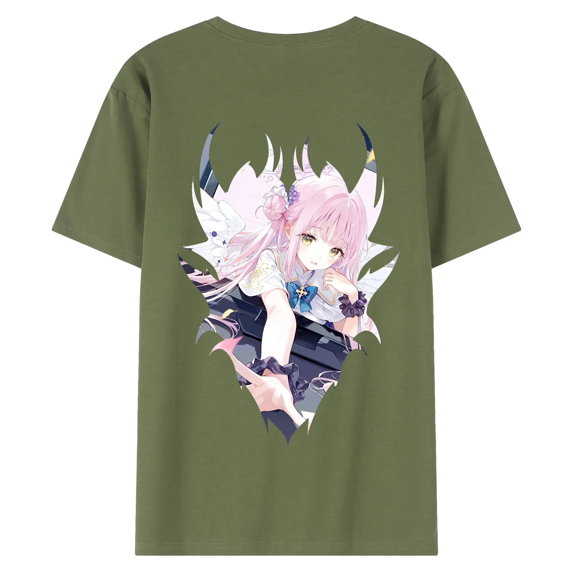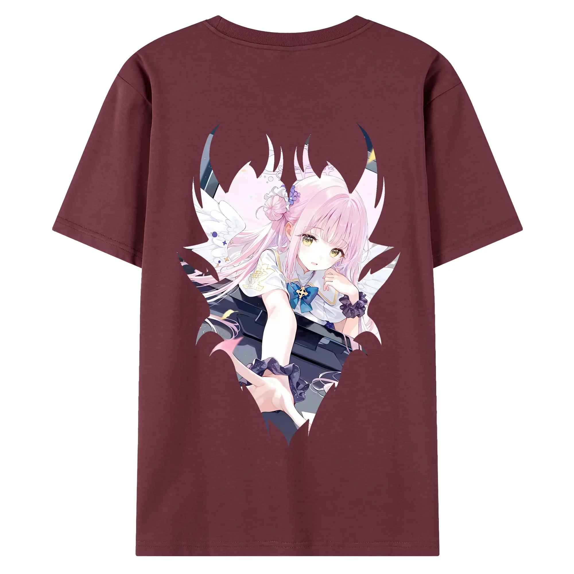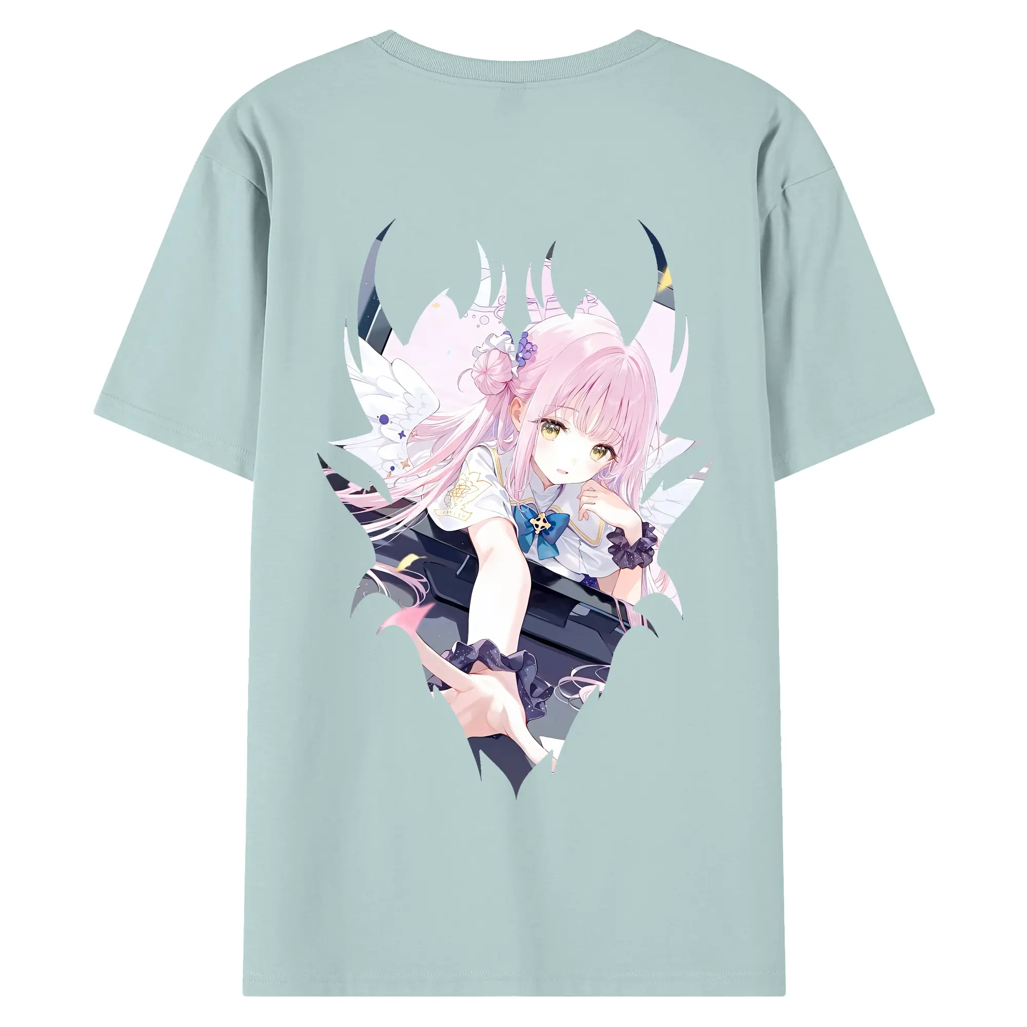 ブルーアーカイブ グッズ 聖園ミカ - 綿100% ヴィンテージ風 半袖Tシャツ ・ 背面プリント ・ 柔らか肌触り ・ 通気性 快適 ・ スポーツ カジュアル 外出用