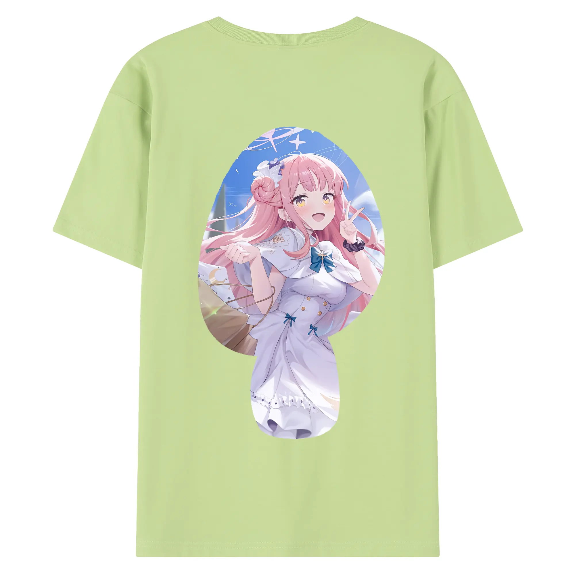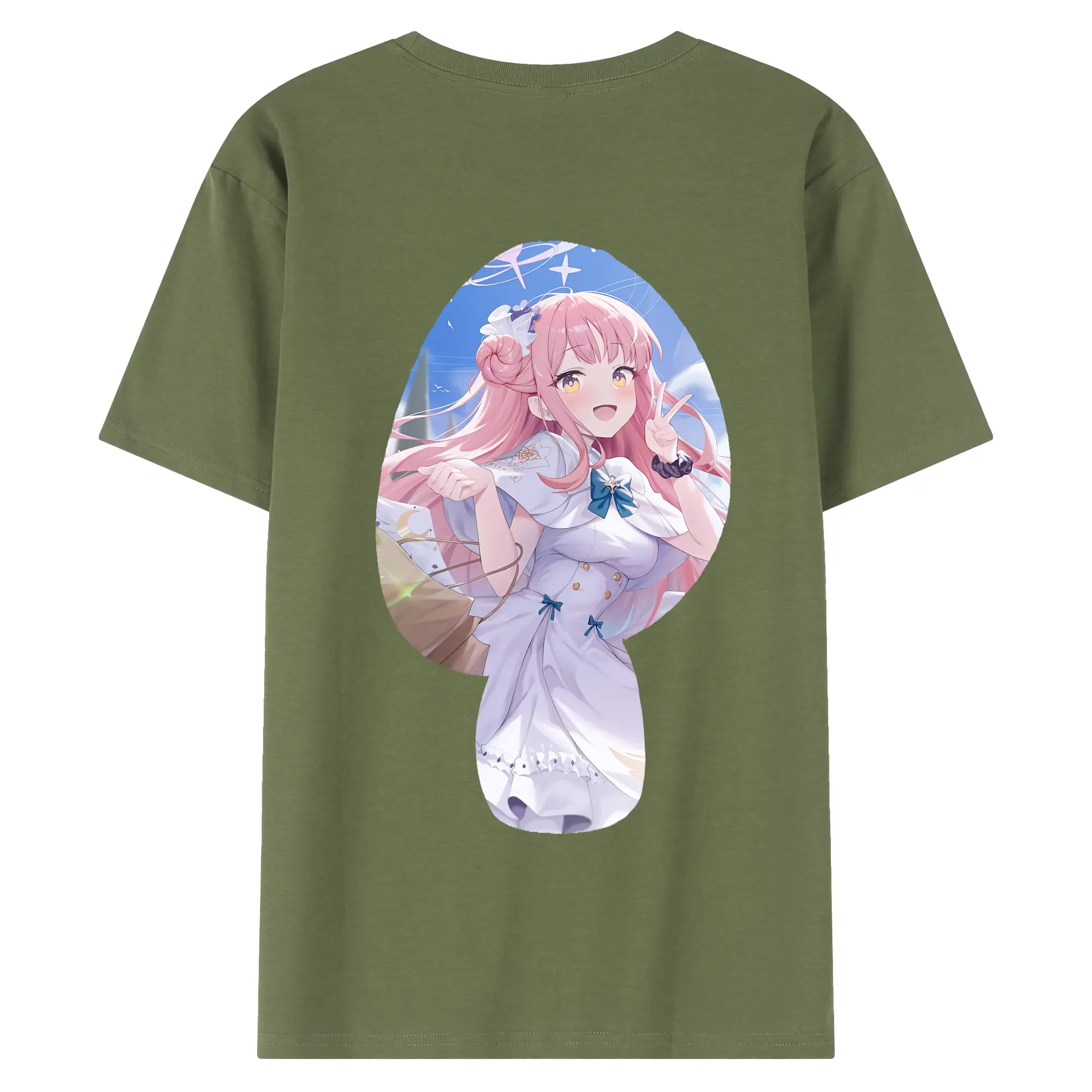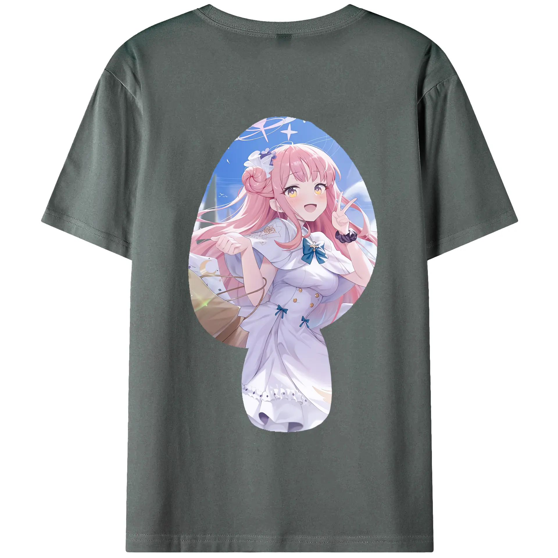 ブルーアーカイブ グッズ 聖園ミカ - 綿100% ヴィンテージ風 半袖Tシャツ ・ 背面プリント ・ 柔らか肌触り ・ 通気性 快適 ・ スポーツ カジュアル 外出用