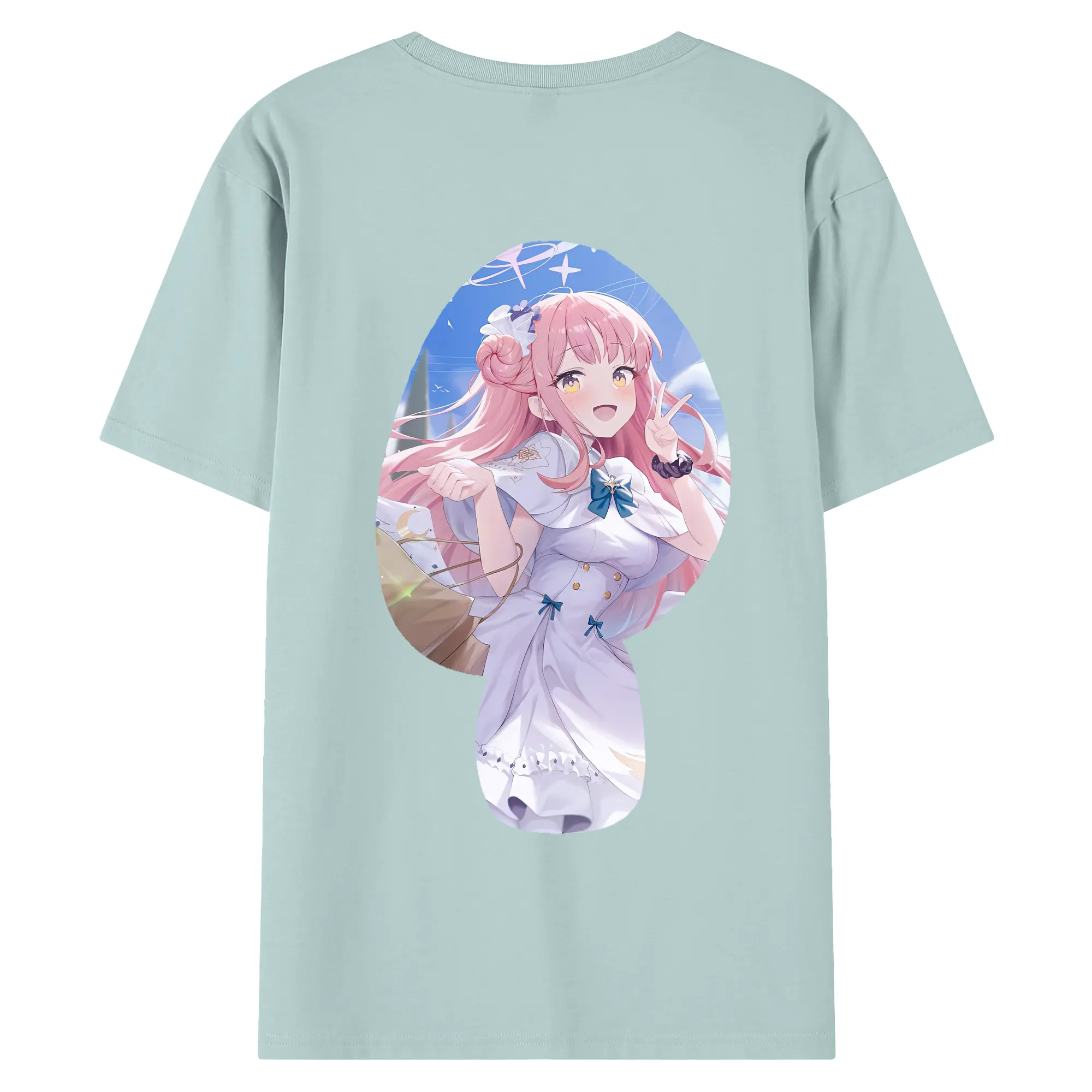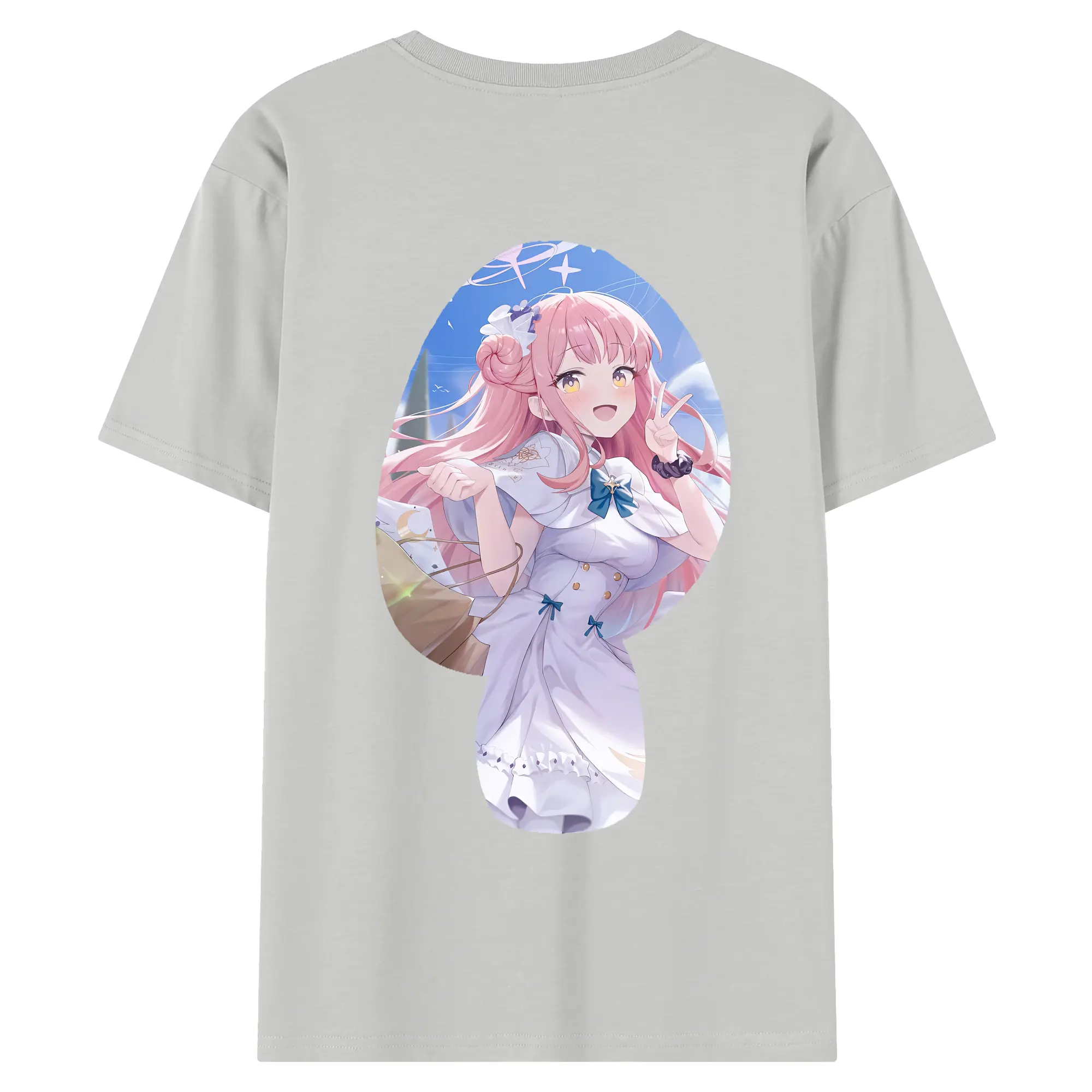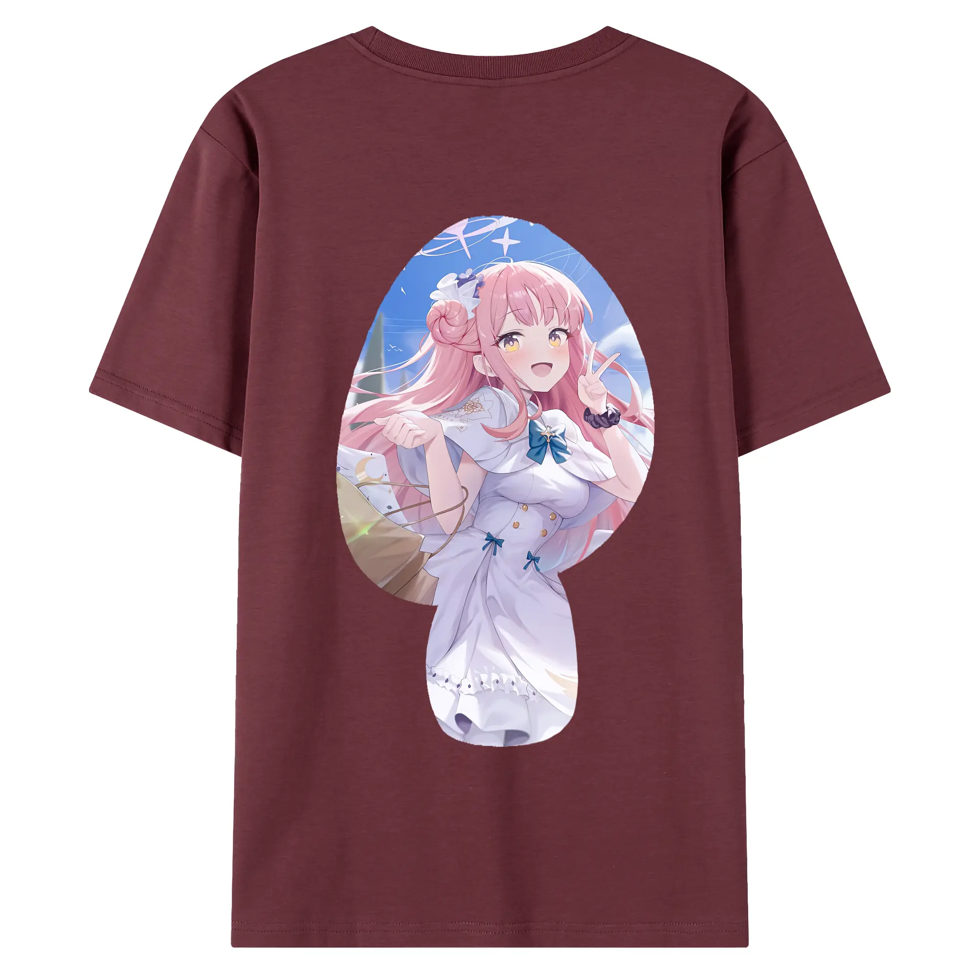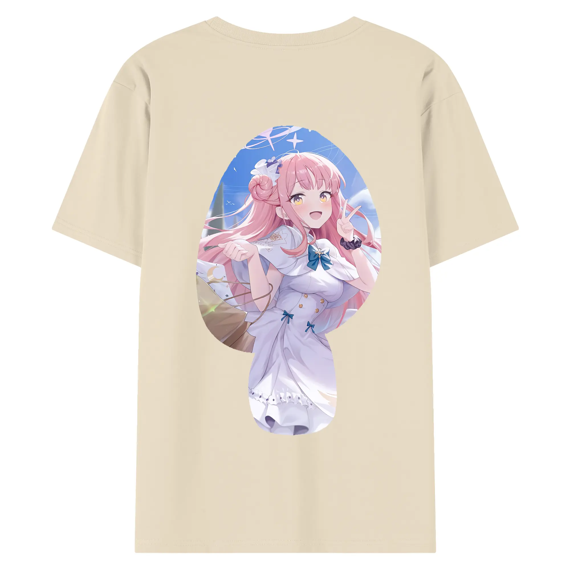 ブルーアーカイブ グッズ 聖園ミカ - 綿100% ヴィンテージ風 半袖Tシャツ ・ 背面プリント ・ 柔らか肌触り ・ 通気性 快適 ・ スポーツ カジュアル 外出用