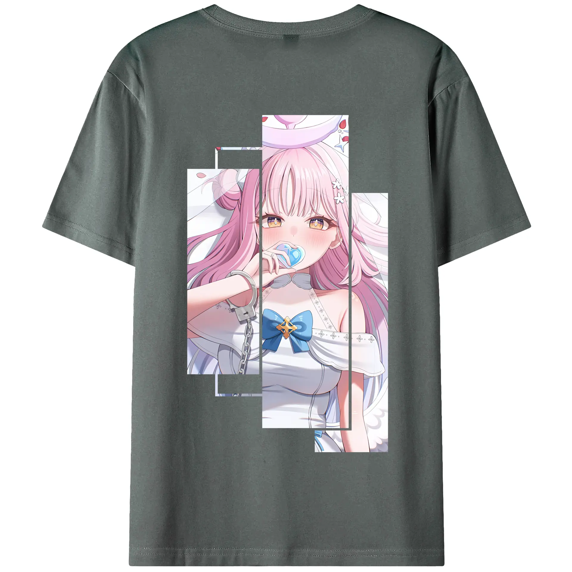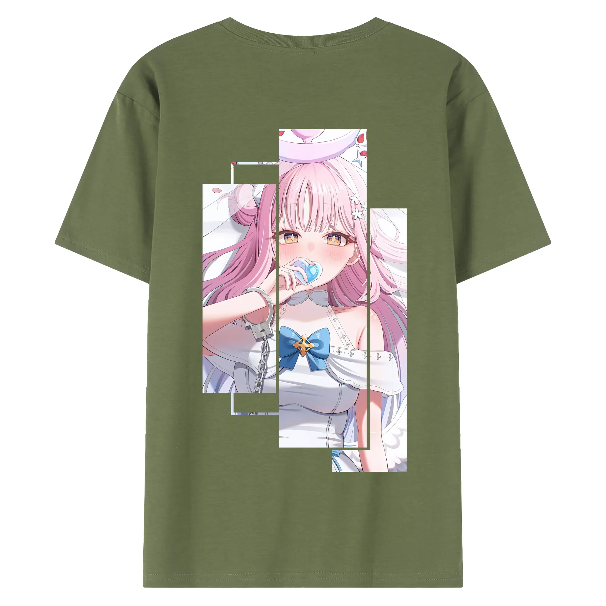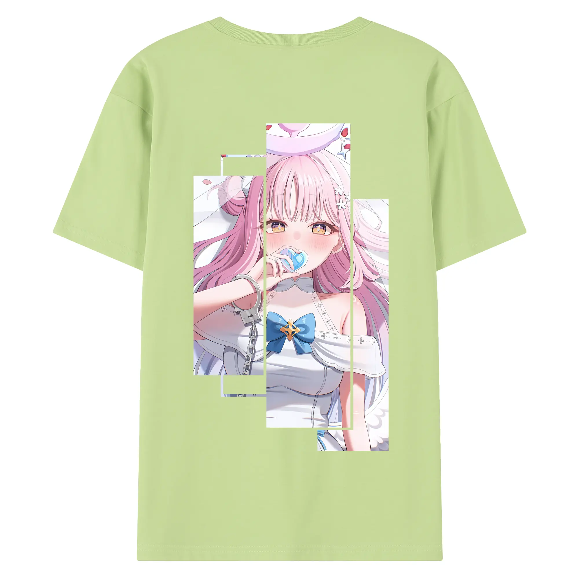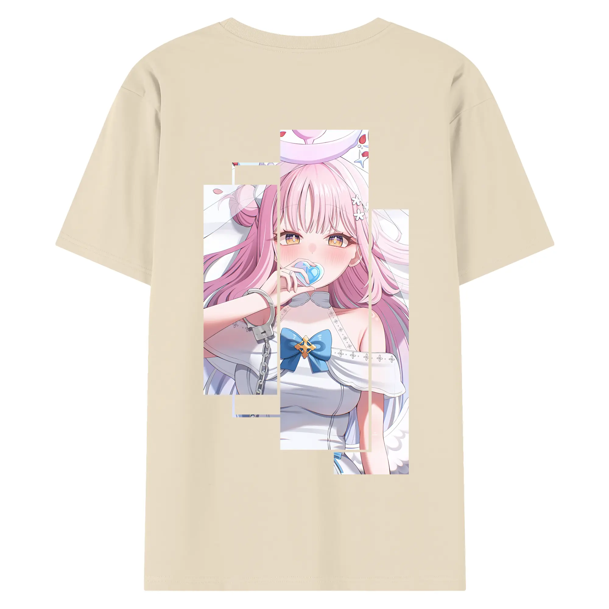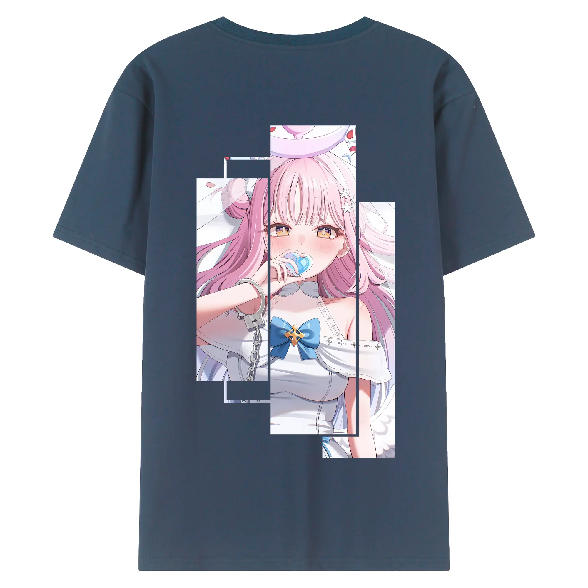 ブルーアーカイブ グッズ 聖園ミカ - 綿100% ヴィンテージ風 半袖Tシャツ ・ フロントプリント ・ 柔らか肌触り ・ 通気性 快適 ・ スポーツ カジュアル 外出用