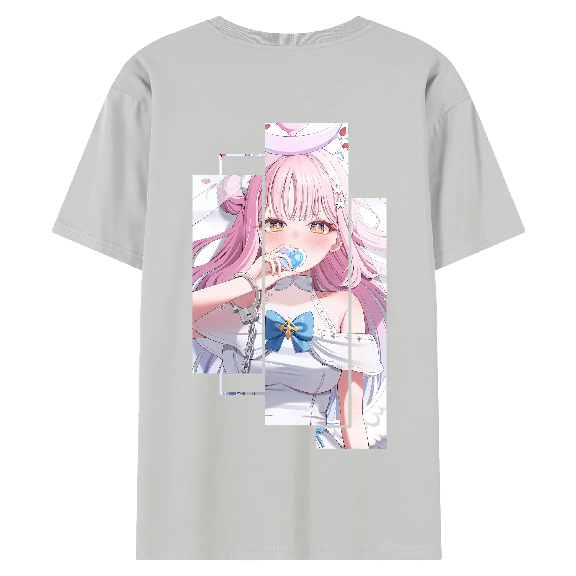 ブルーアーカイブ グッズ 聖園ミカ - 綿100% ヴィンテージ風 半袖Tシャツ ・ 背面プリント ・ 柔らか肌触り ・ 通気性 快適 ・ スポーツ カジュアル 外出用