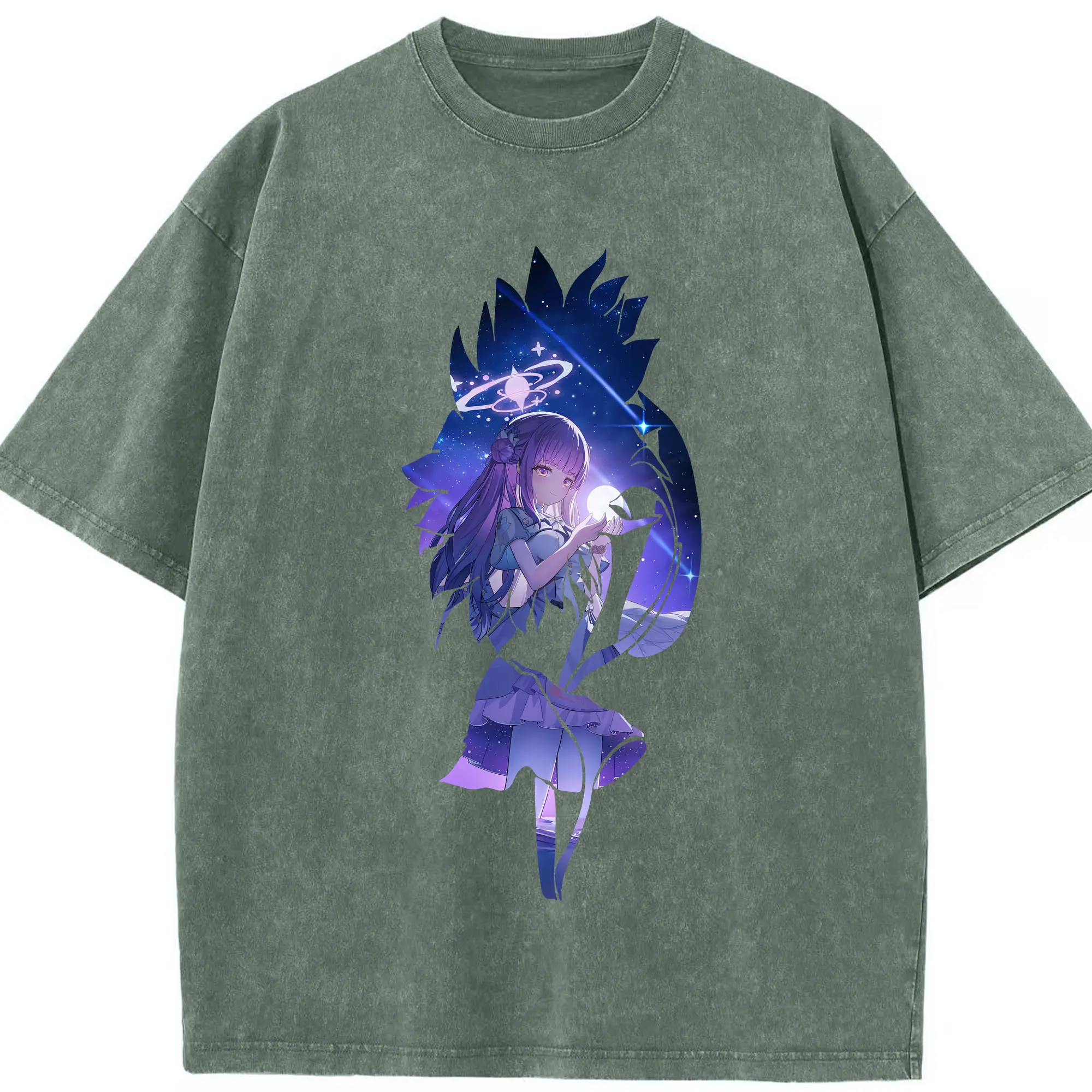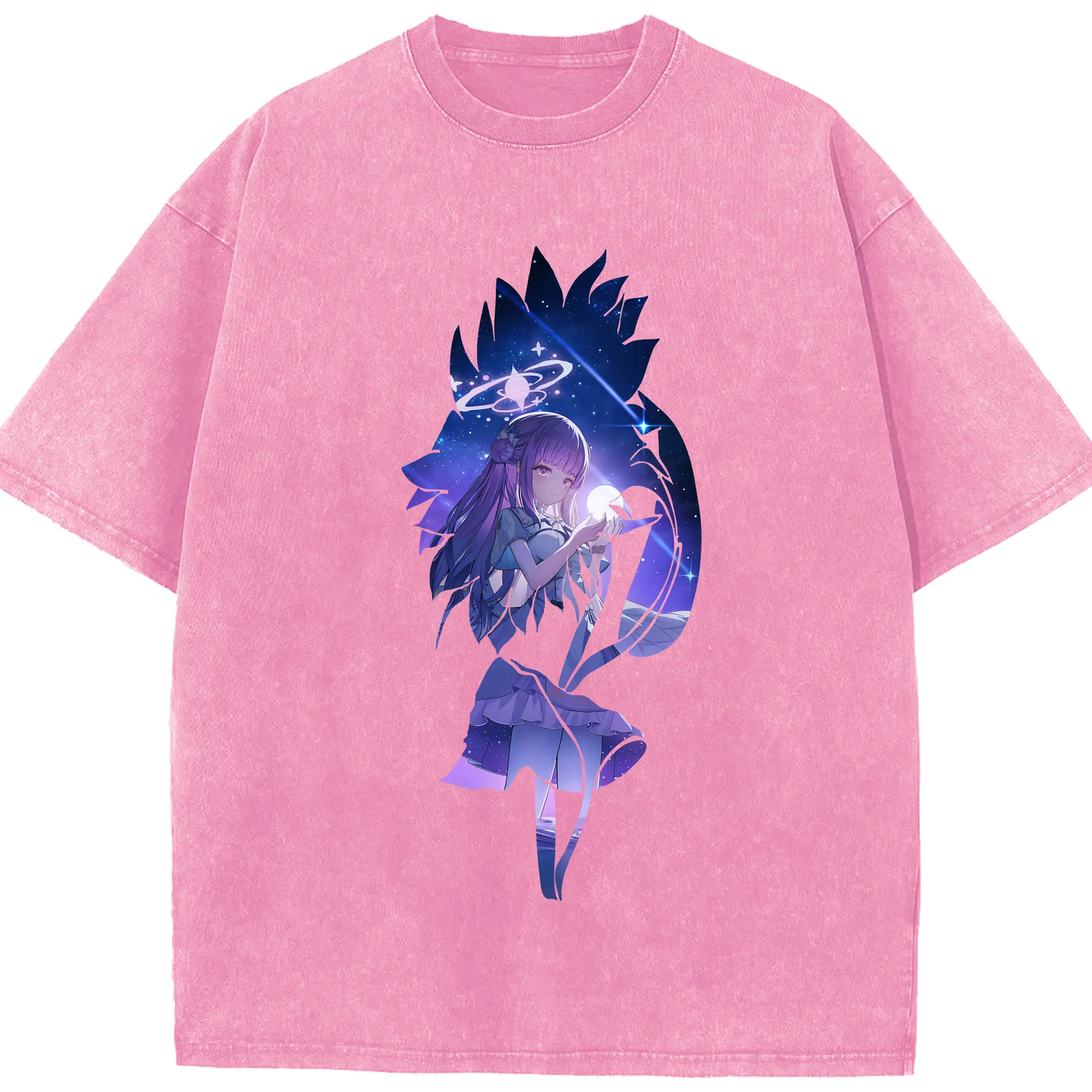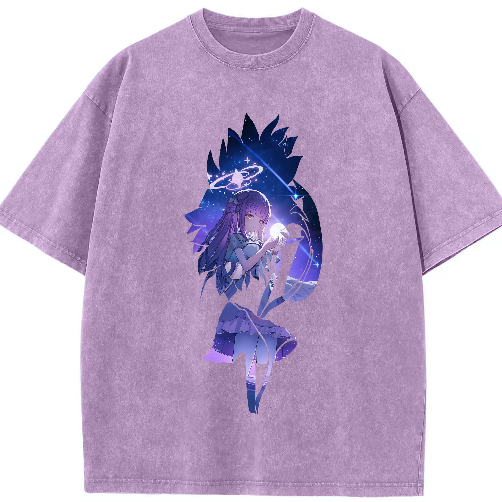 ブルーアーカイブ グッズ 聖園ミカ - 綿100% ヴィンテージ風 半袖Tシャツ ・ 背面プリント ・ 柔らか肌触り ・ 通気性 快適 ・ スポーツ カジュアル 外出用