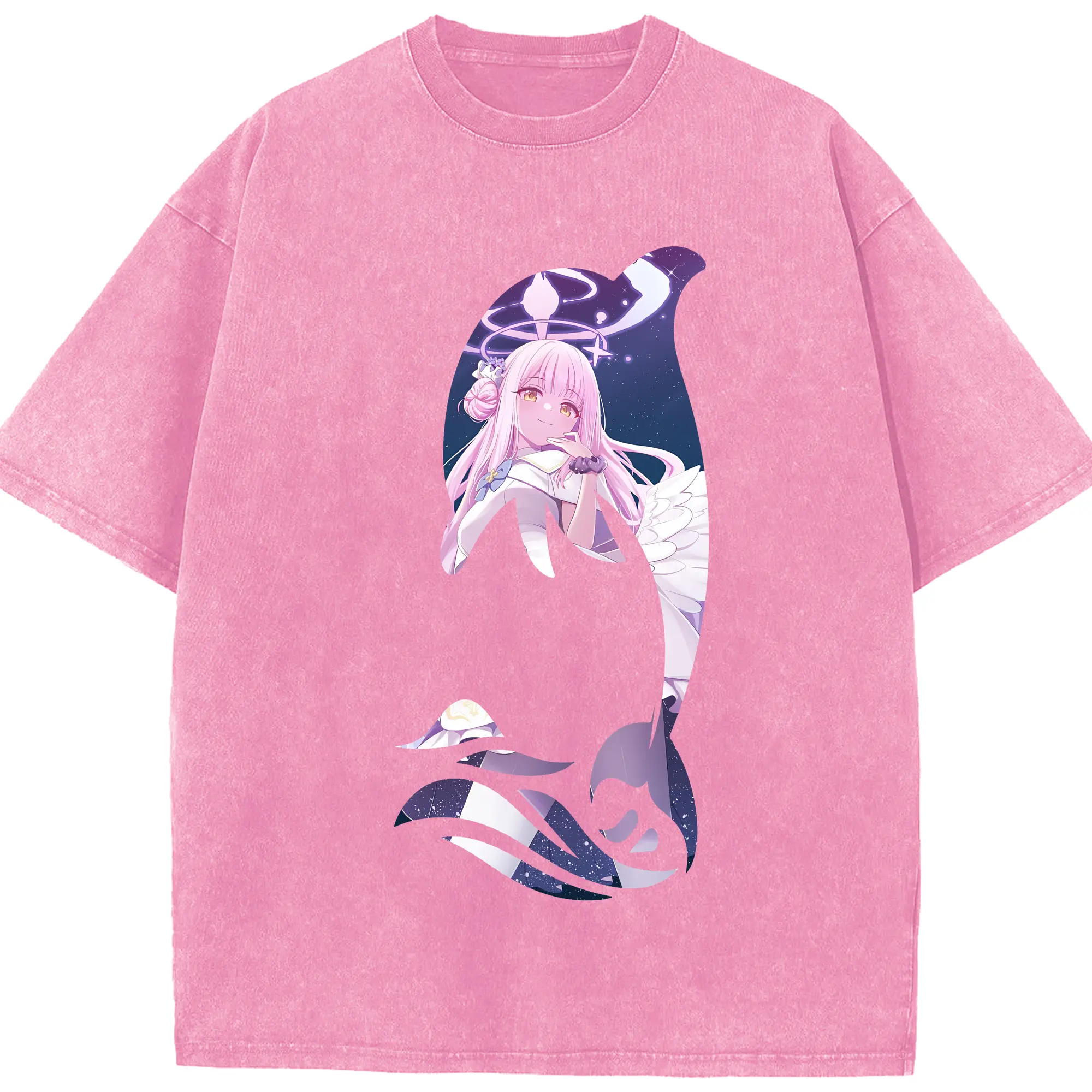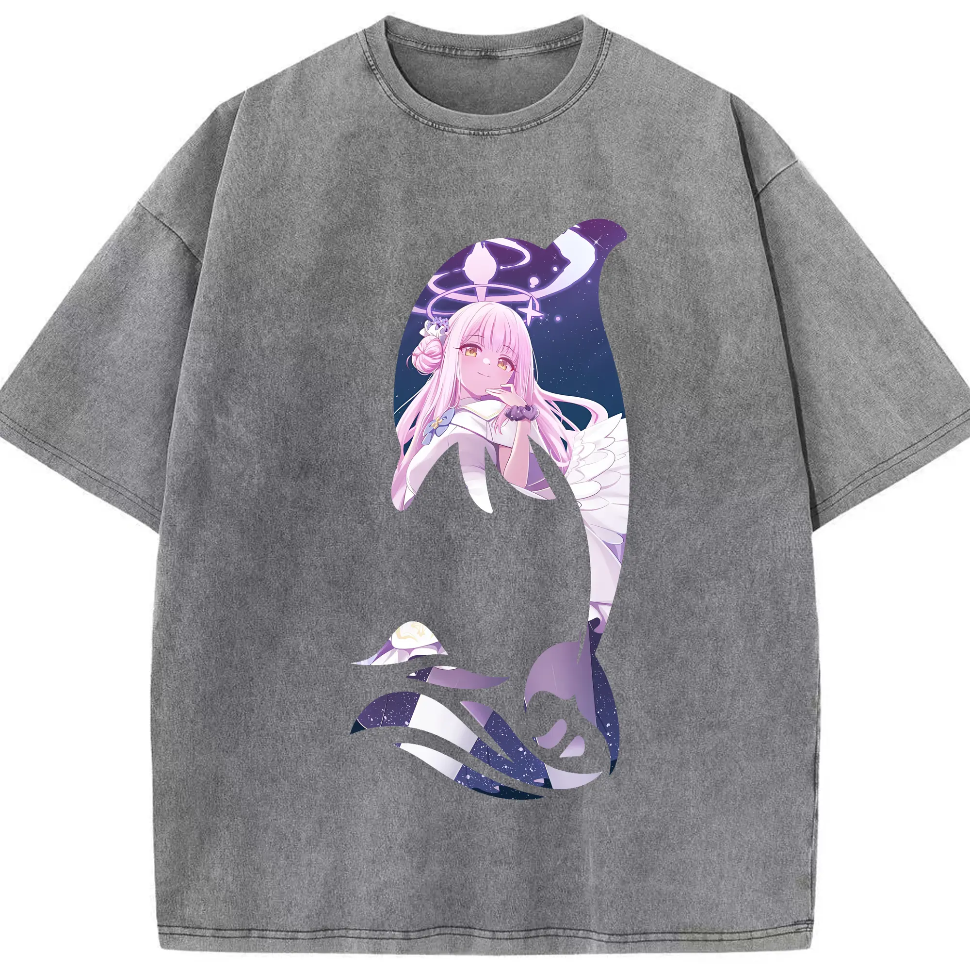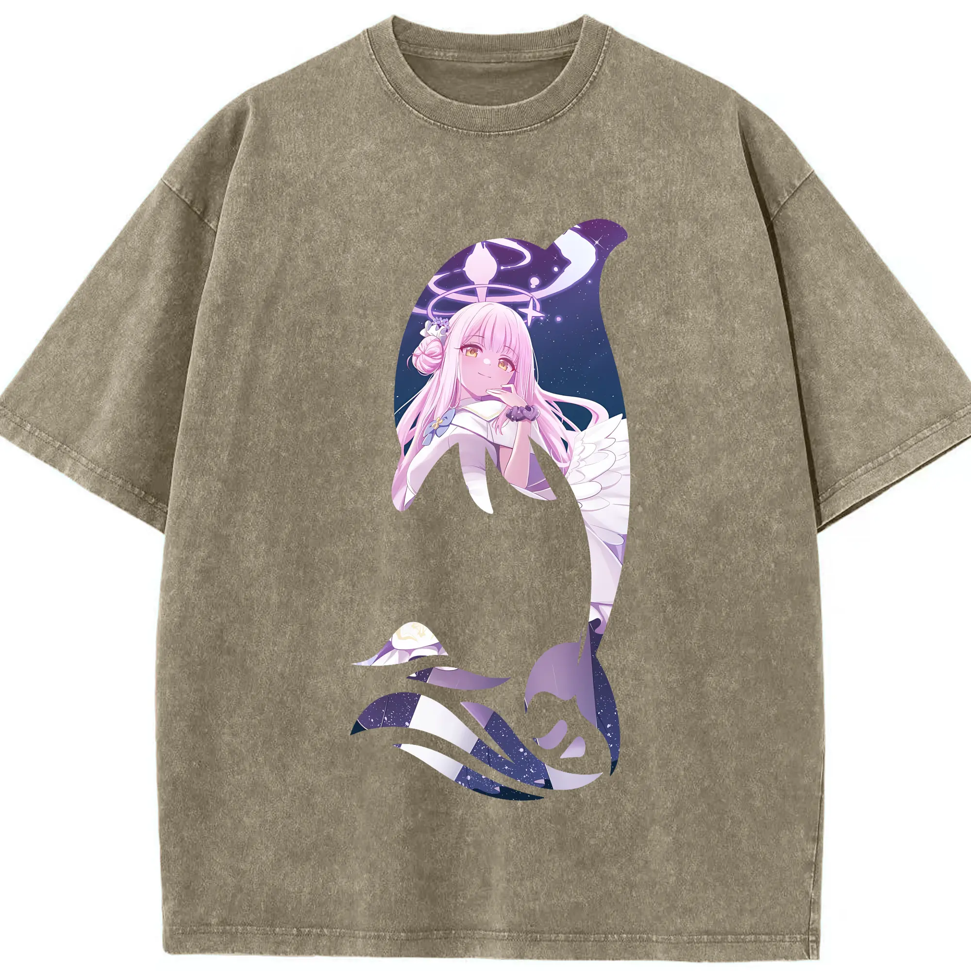 ブルーアーカイブ グッズ 聖園ミカ - 綿100% ヴィンテージ風 半袖Tシャツ ・ 背面プリント ・ 柔らか肌触り ・ 通気性 快適 ・ スポーツ カジュアル 外出用