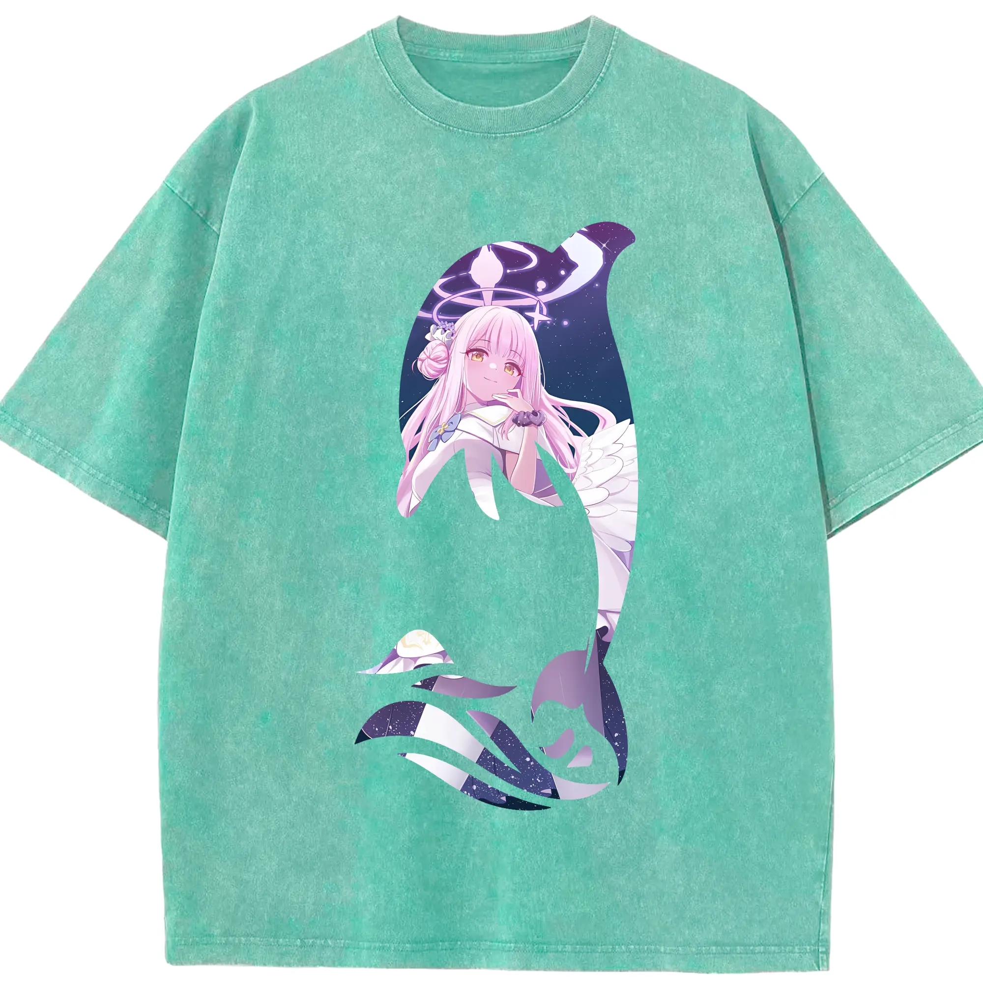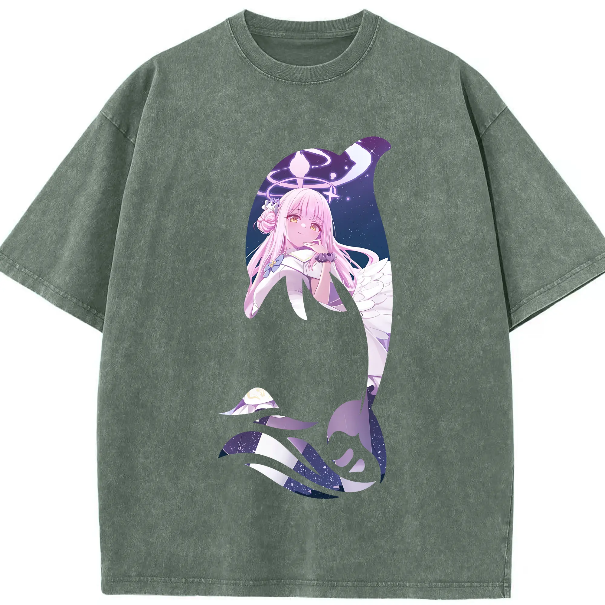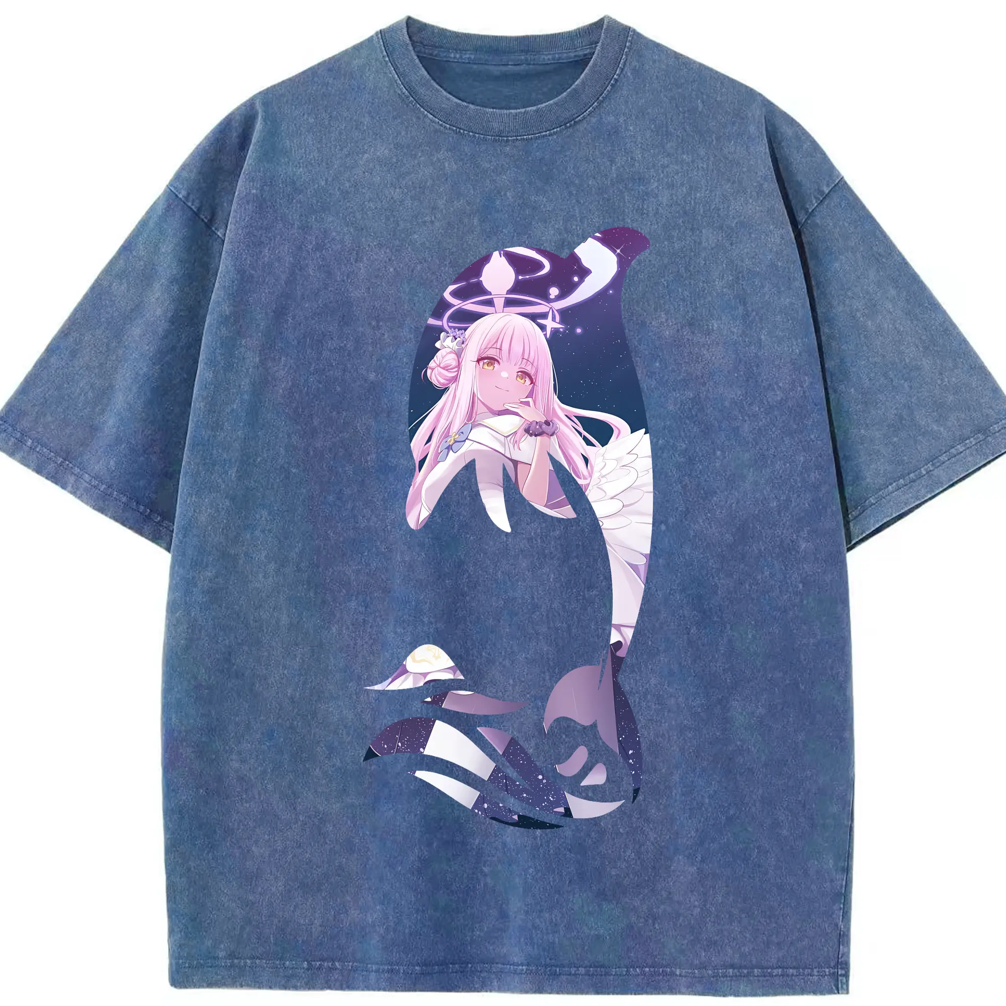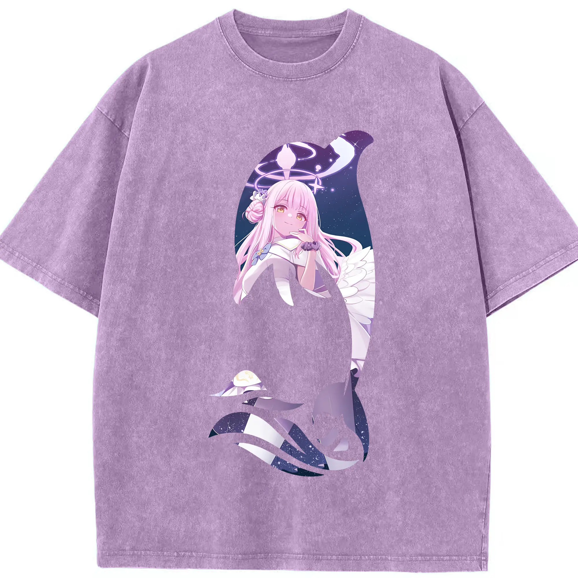 ブルーアーカイブ グッズ 聖園ミカ - 綿100% ヴィンテージ風 半袖Tシャツ ・ 背面プリント ・ 柔らか肌触り ・ 通気性 快適 ・ スポーツ カジュアル 外出用