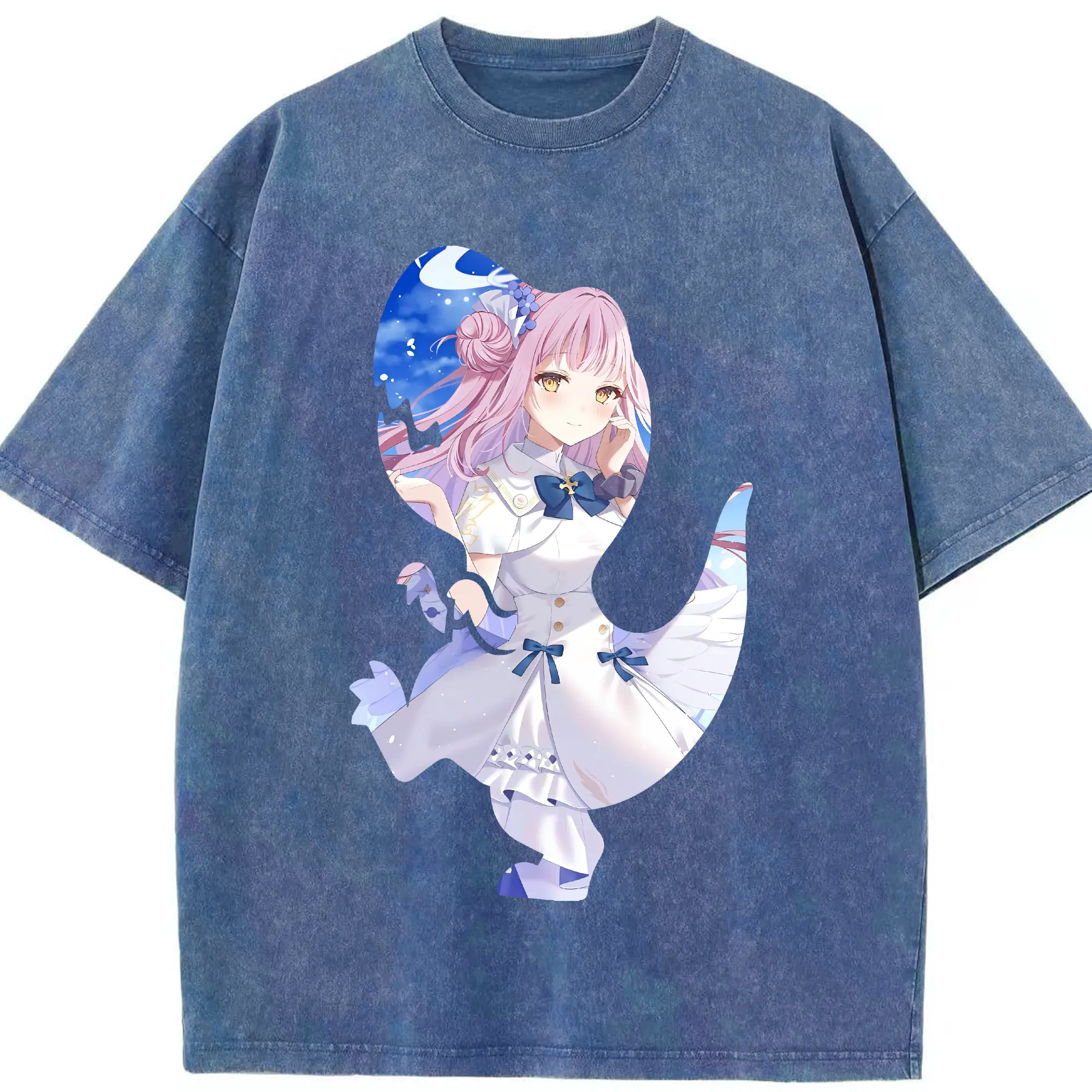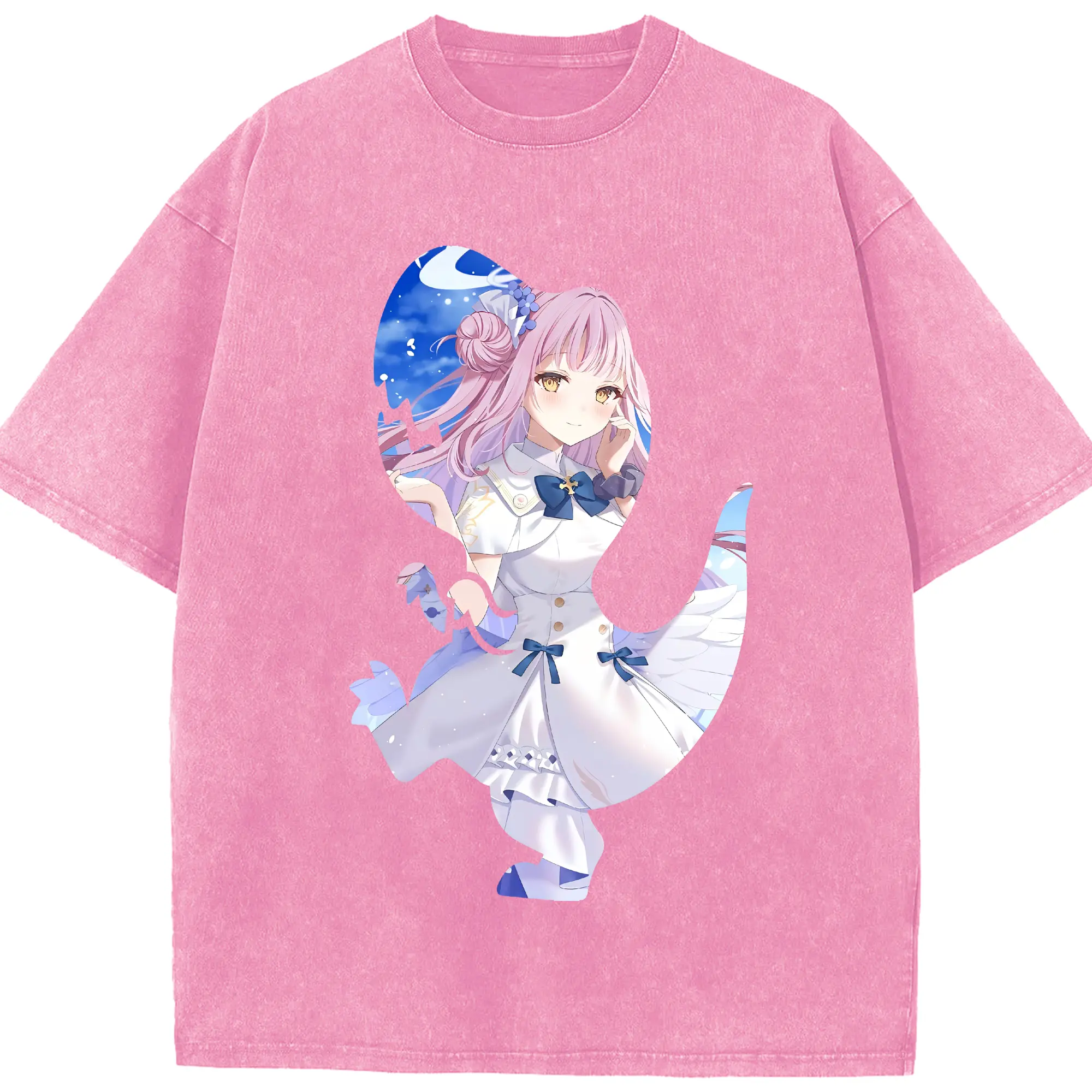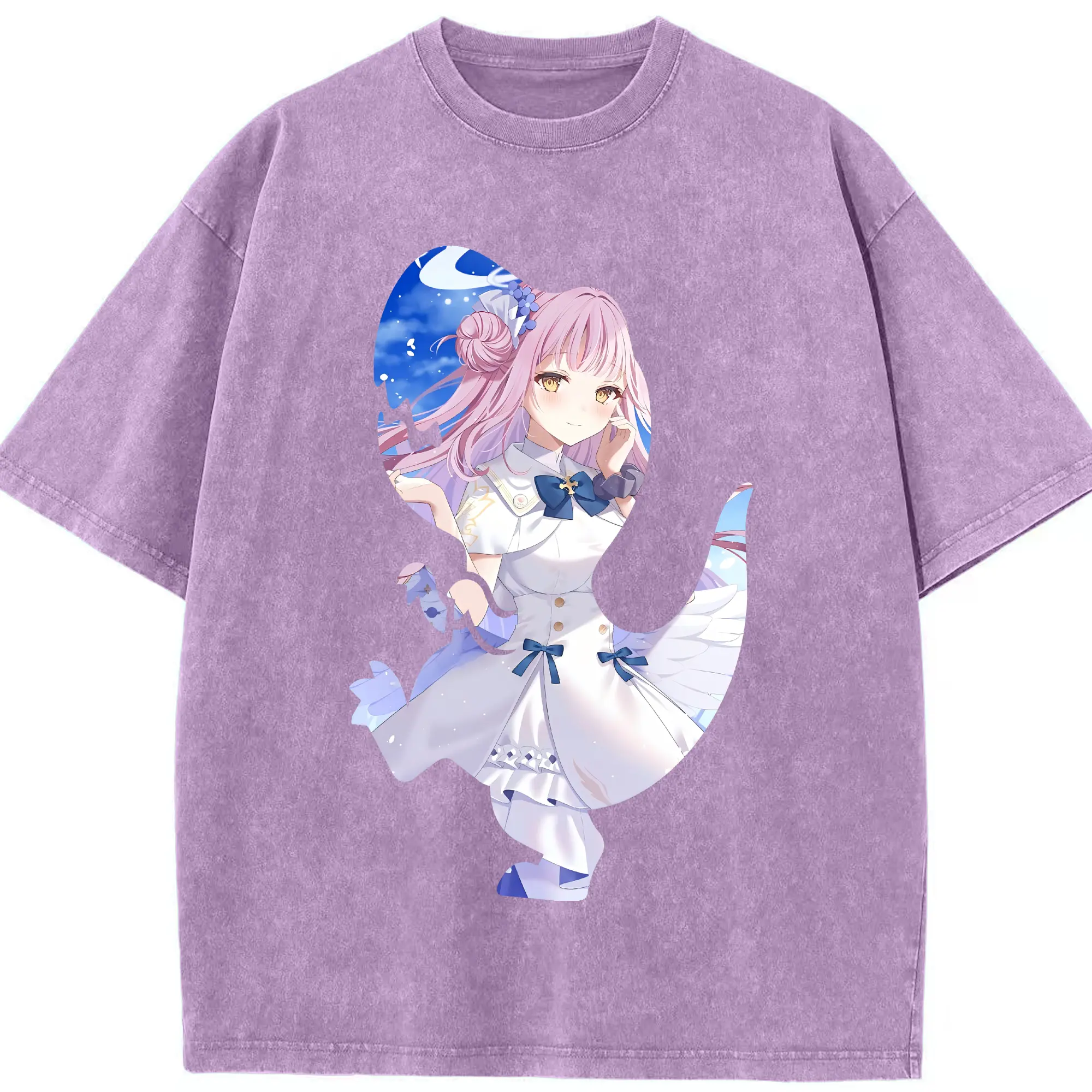 ブルーアーカイブ グッズ 聖園ミカ - 綿100% ヴィンテージ風 半袖Tシャツ ・ 背面プリント ・ 柔らか肌触り ・ 通気性 快適 ・ スポーツ カジュアル 外出用
