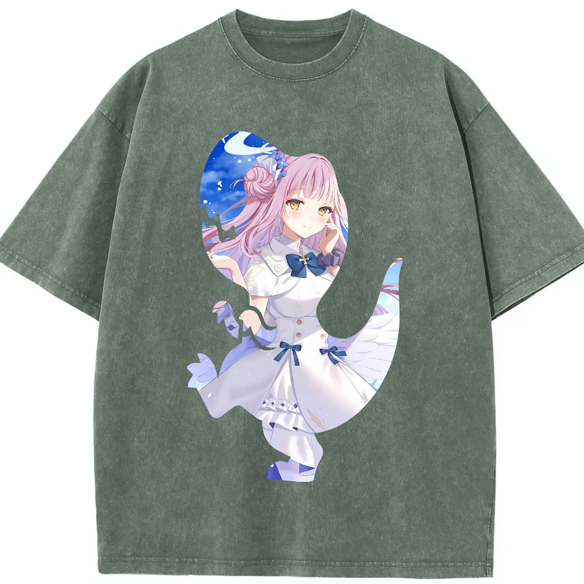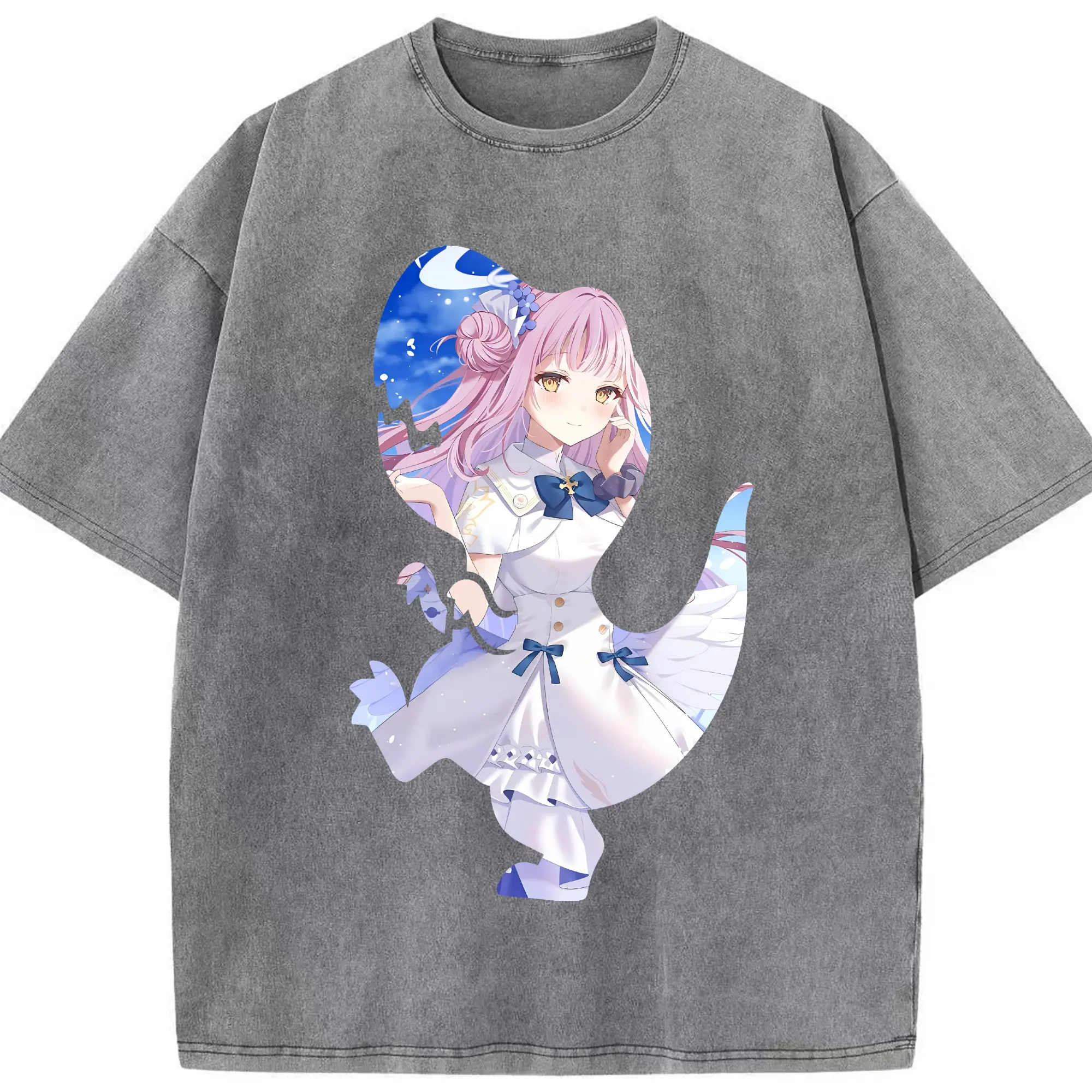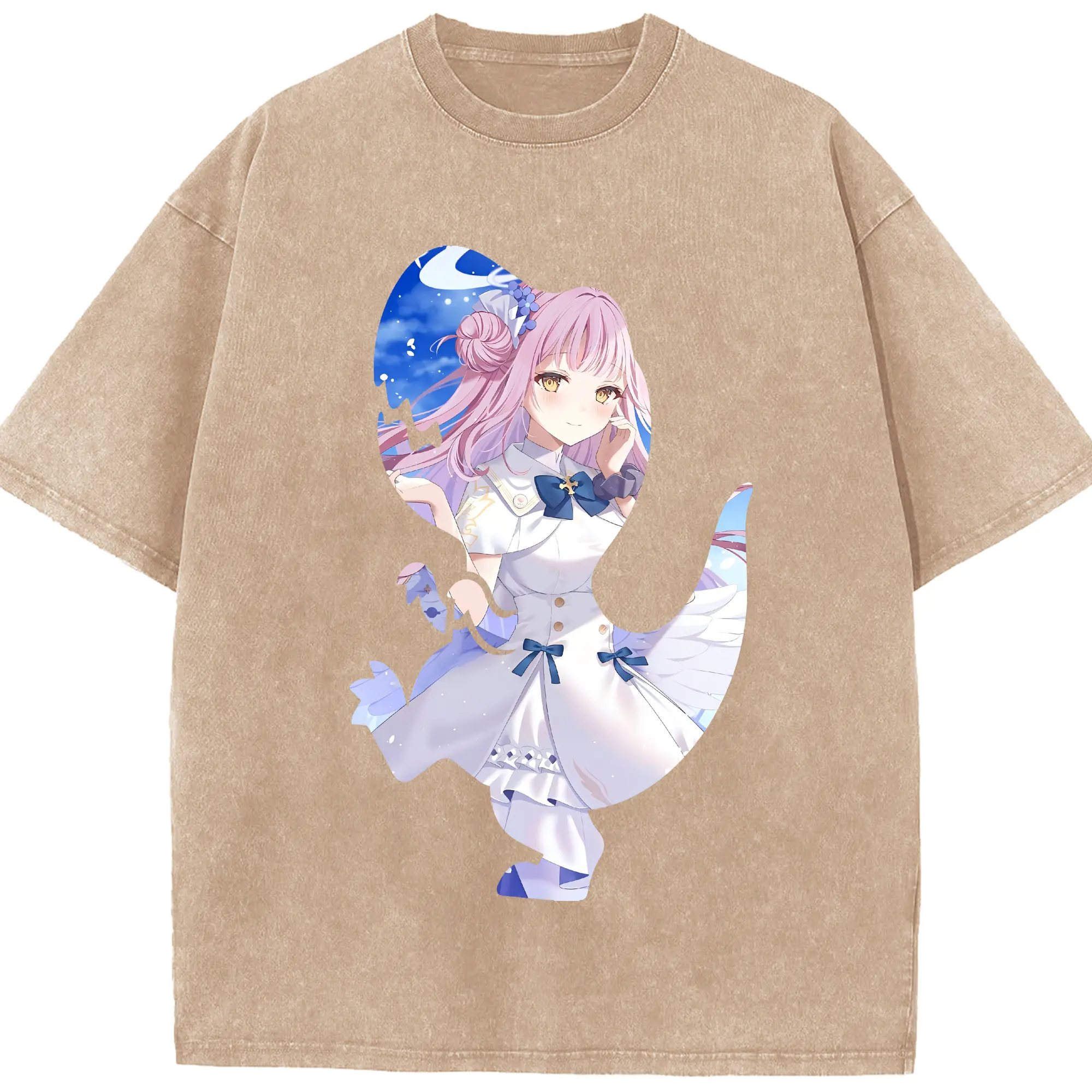 ブルーアーカイブ グッズ 聖園ミカ - 綿100% ヴィンテージ風 半袖Tシャツ ・ 背面プリント ・ 柔らか肌触り ・ 通気性 快適 ・ スポーツ カジュアル 外出用