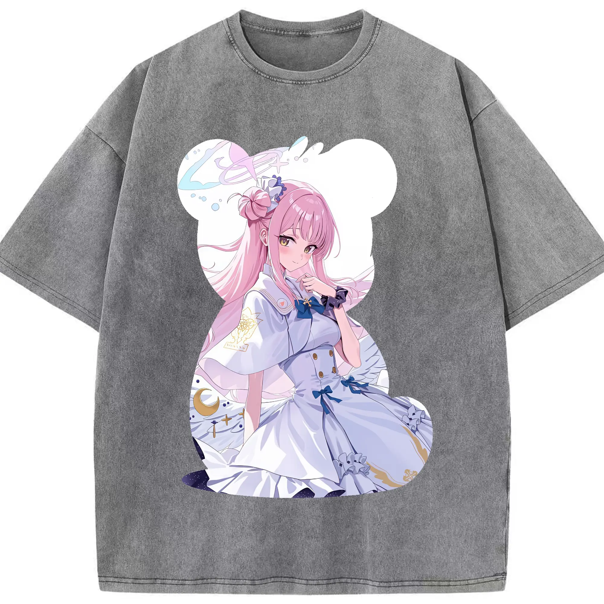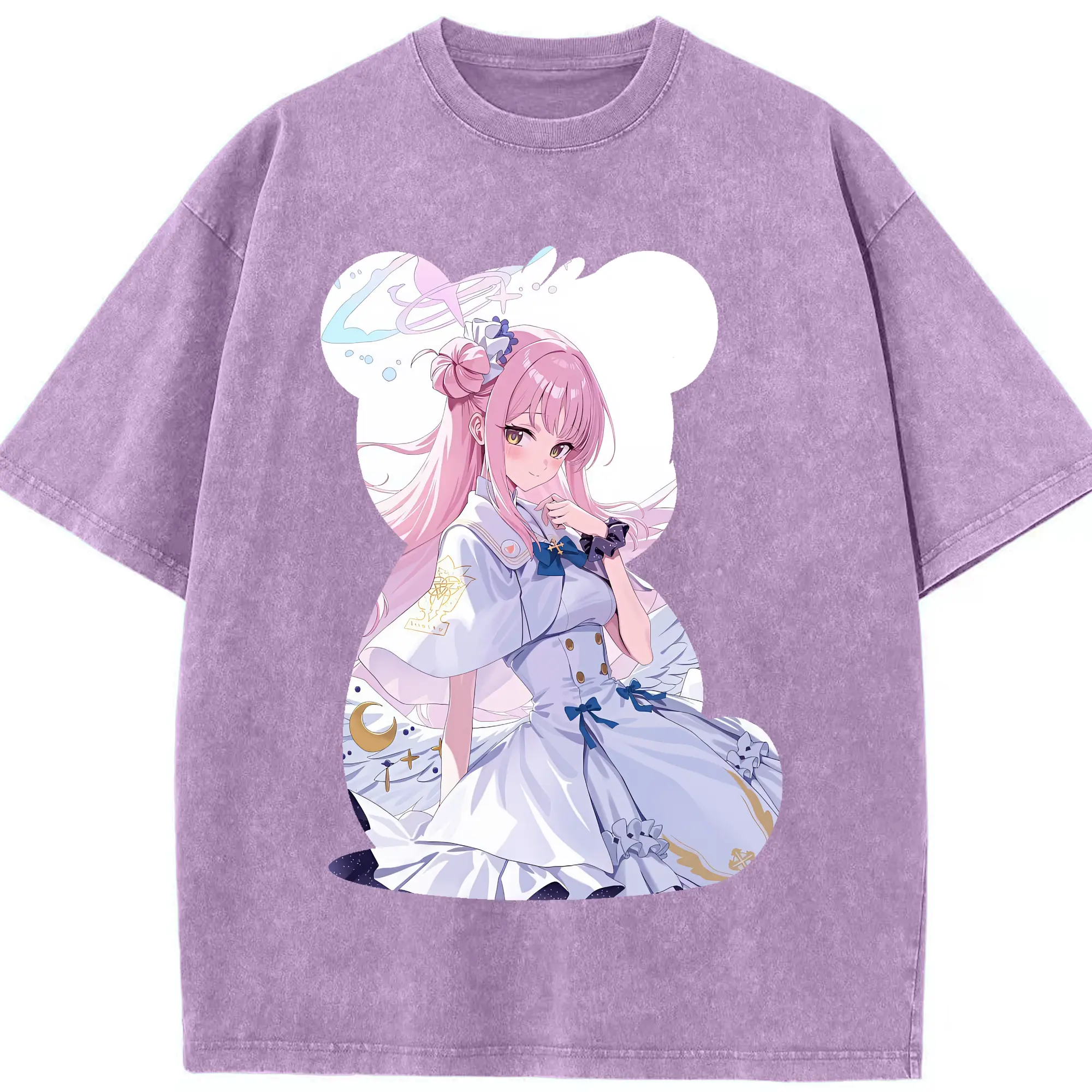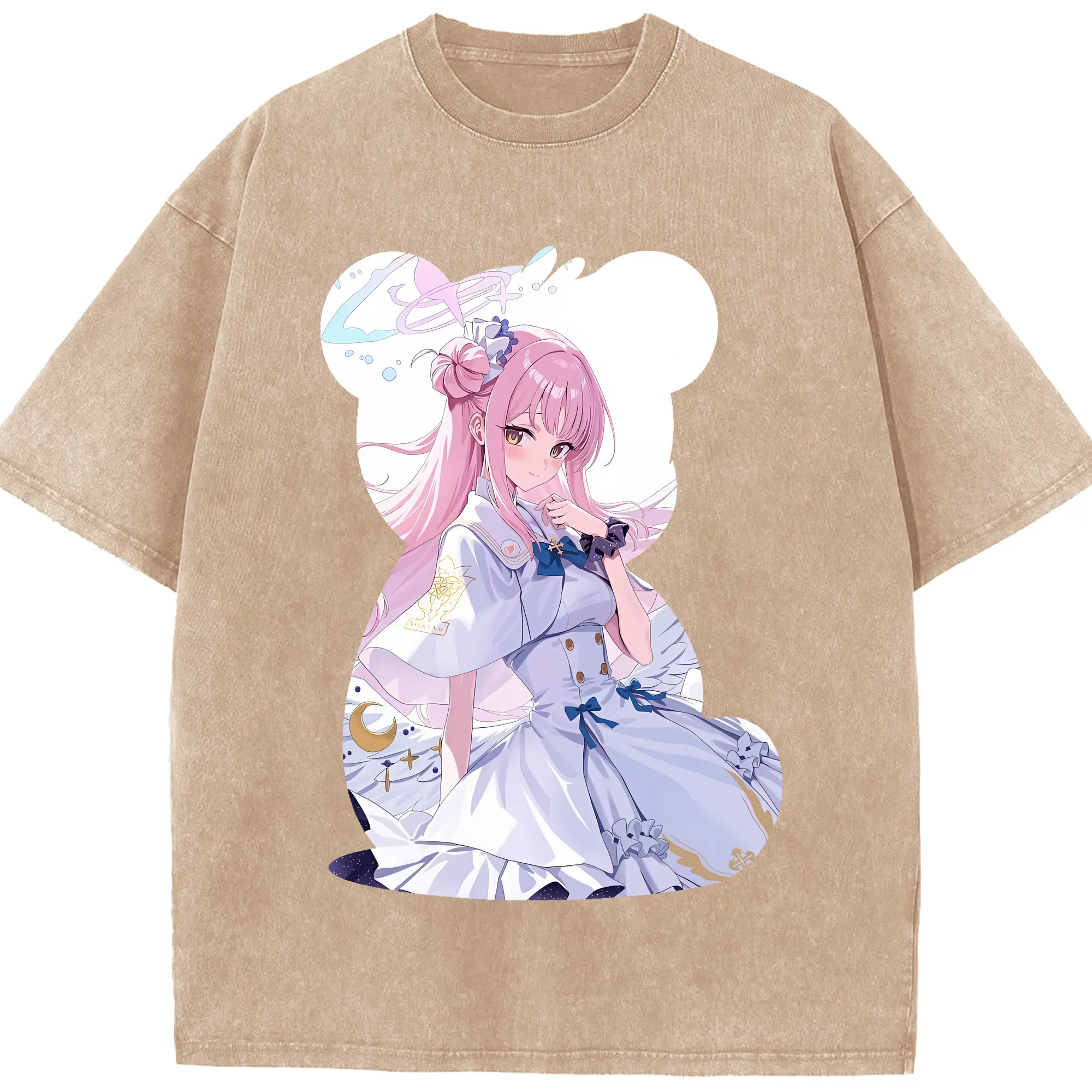 ブルーアーカイブ グッズ 聖園ミカ - 綿100% ヴィンテージ風 半袖Tシャツ ・ 背面プリント ・ 柔らか肌触り ・ 通気性 快適 ・ スポーツ カジュアル 外出用